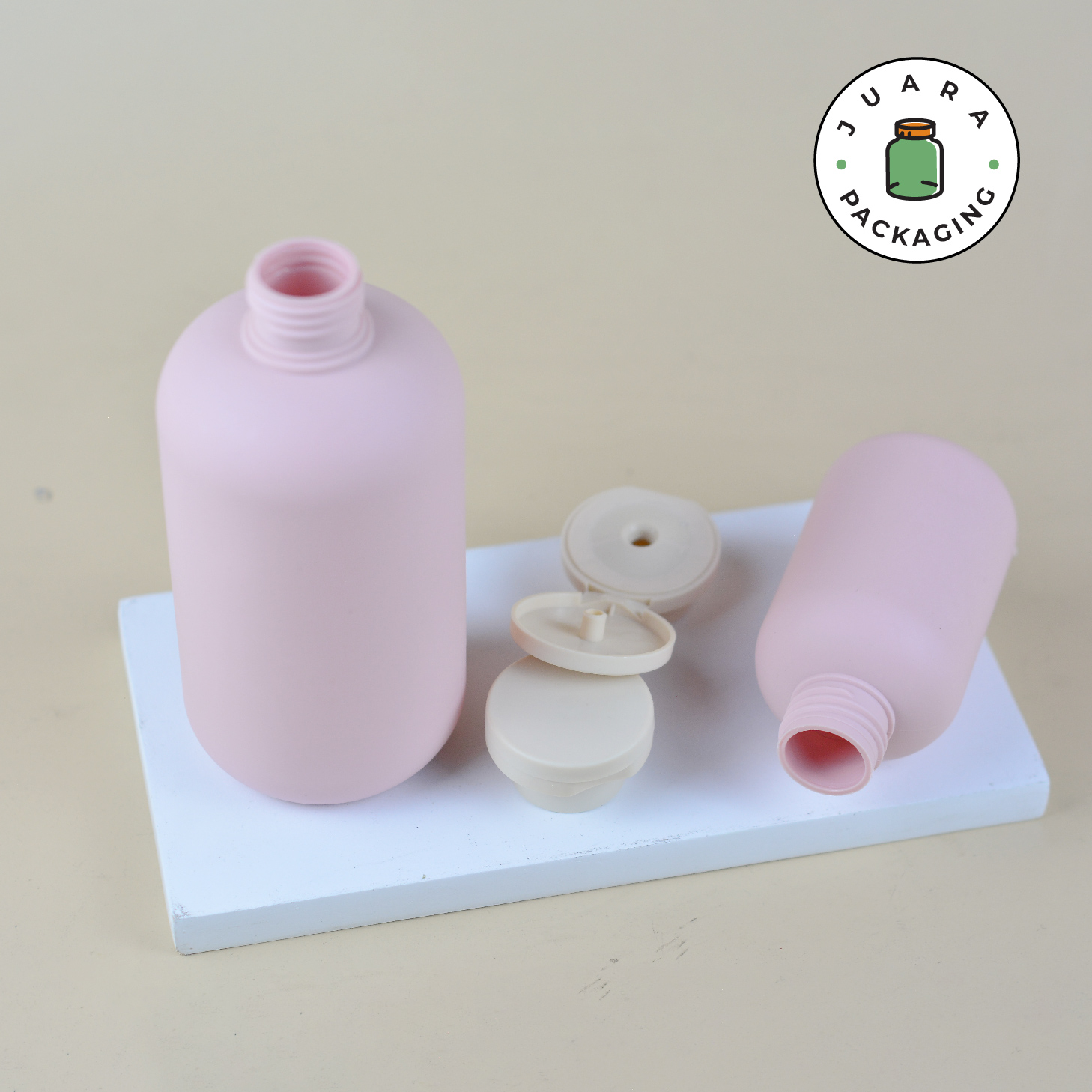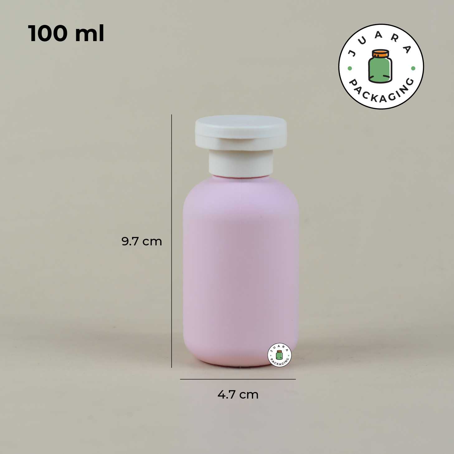 Botol Fliptop Plastik tersedia dalam ukuran 100ml dan 300ml dengan warna pink pastel dan tutup fliptop coklat. Botol plastik ini ideal untuk menyimpan cairan seperti sabun atau lotion. Kemasan produk yang ringan dan praktis ini cocok untuk penggunaan sehari-hari, serta mudah dibawa saat bepergian.