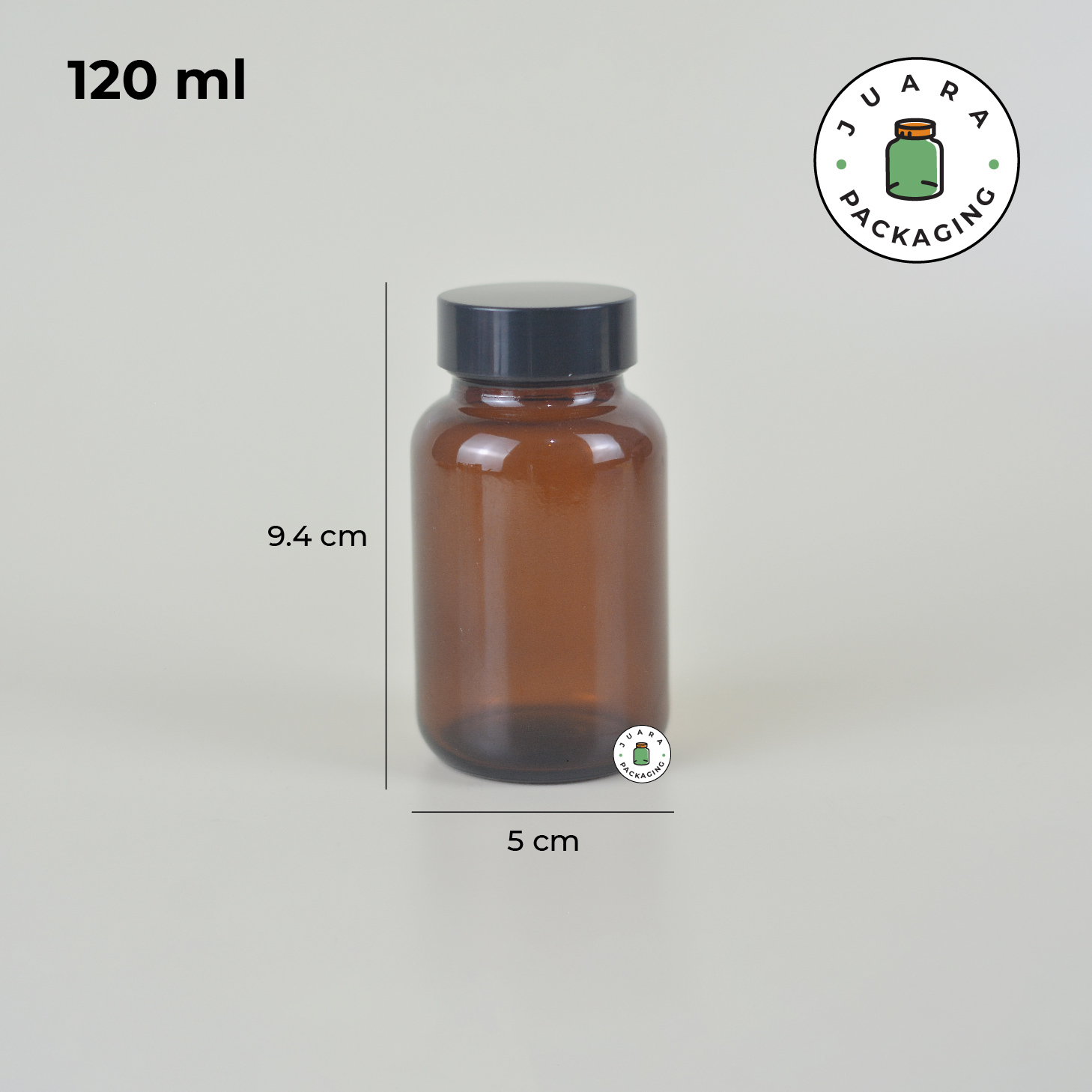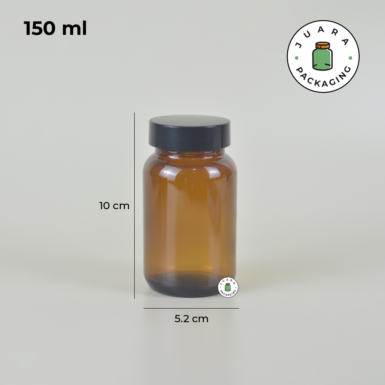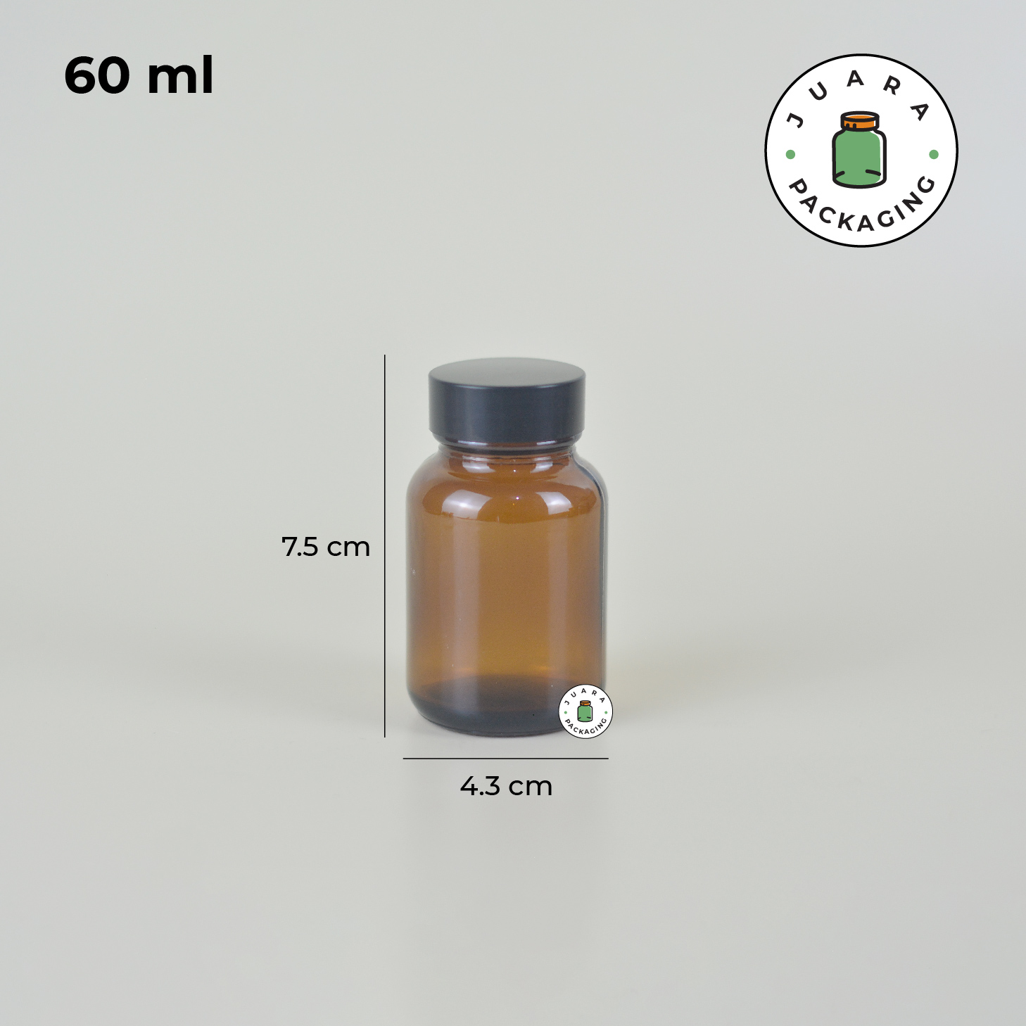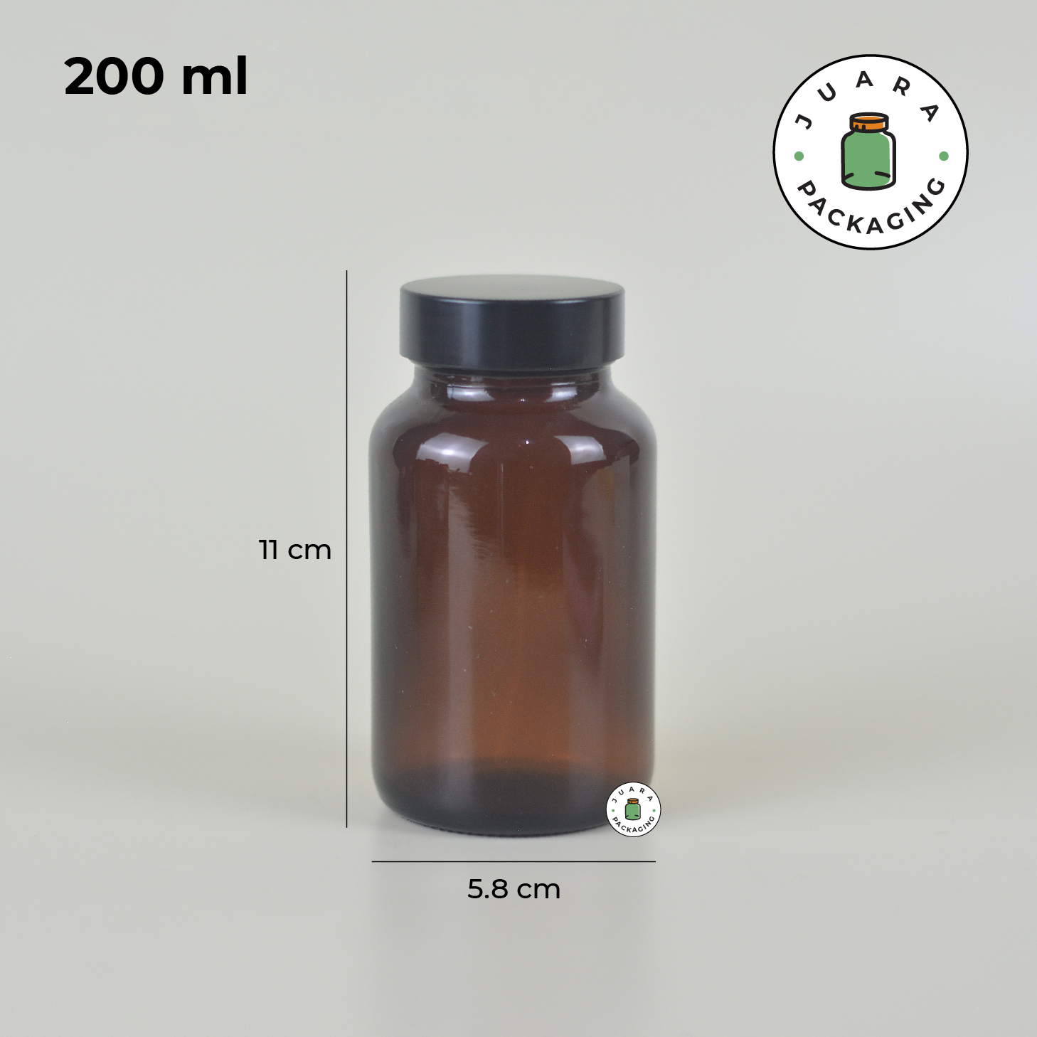 Botol Kaca Amber 60 ml 75 ml 100 ml 120 ml 150 ml 200 ml – Jar Kaca Coklat Tebal dengan Tutup Hitam + Inner Seal untuk Kapsul Vitamin Obat Suplemen Herbal Kemasan Aman Anti Bocor