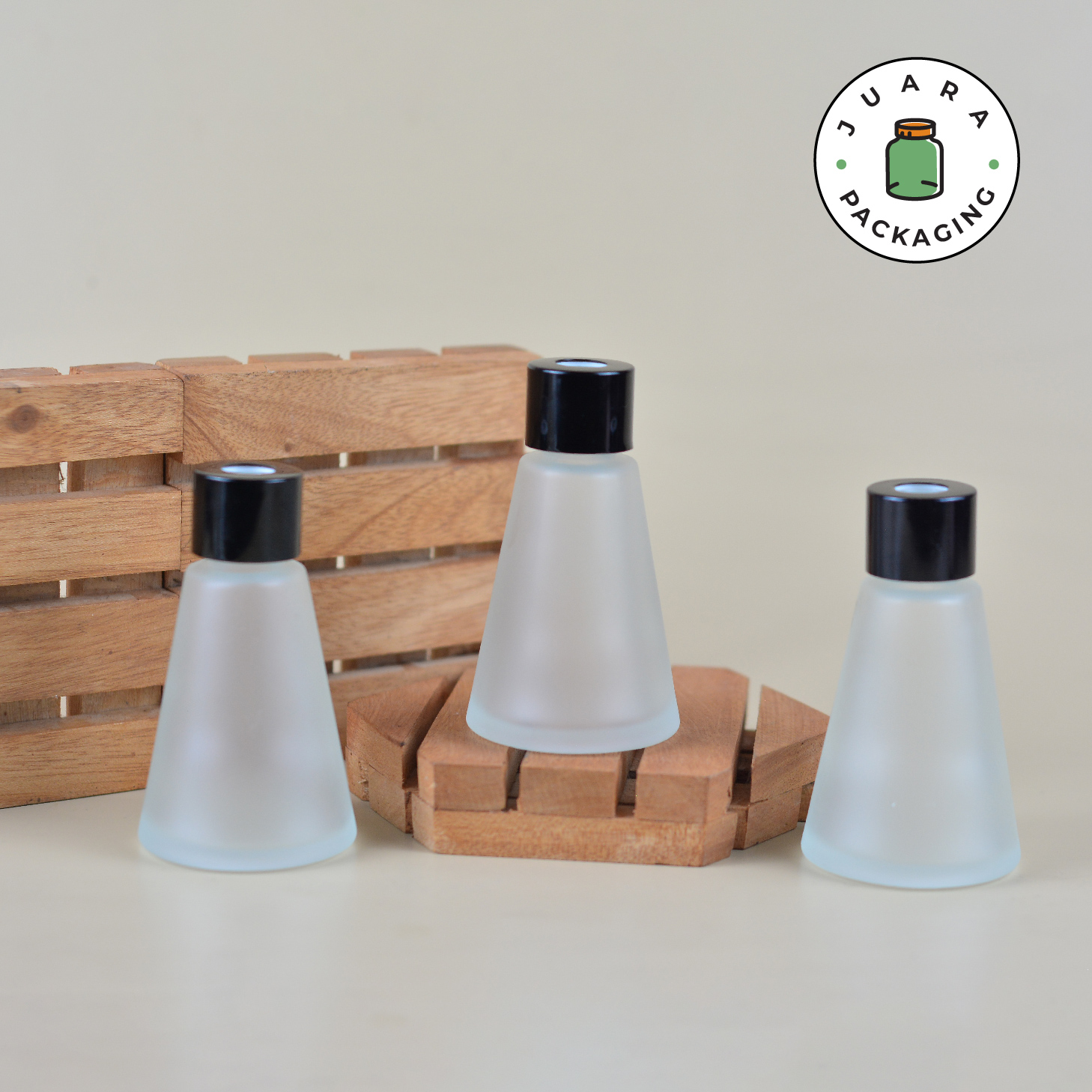 Botol Kaca Frosted untuk Diffuser Aromaterapi – Botol Kaca Buram Unik dengan Tutup Hitam, Wadah Refill Parfum Ruangan, Kemasan Elegan untuk Reed Diffuser Skincare Dekoratif