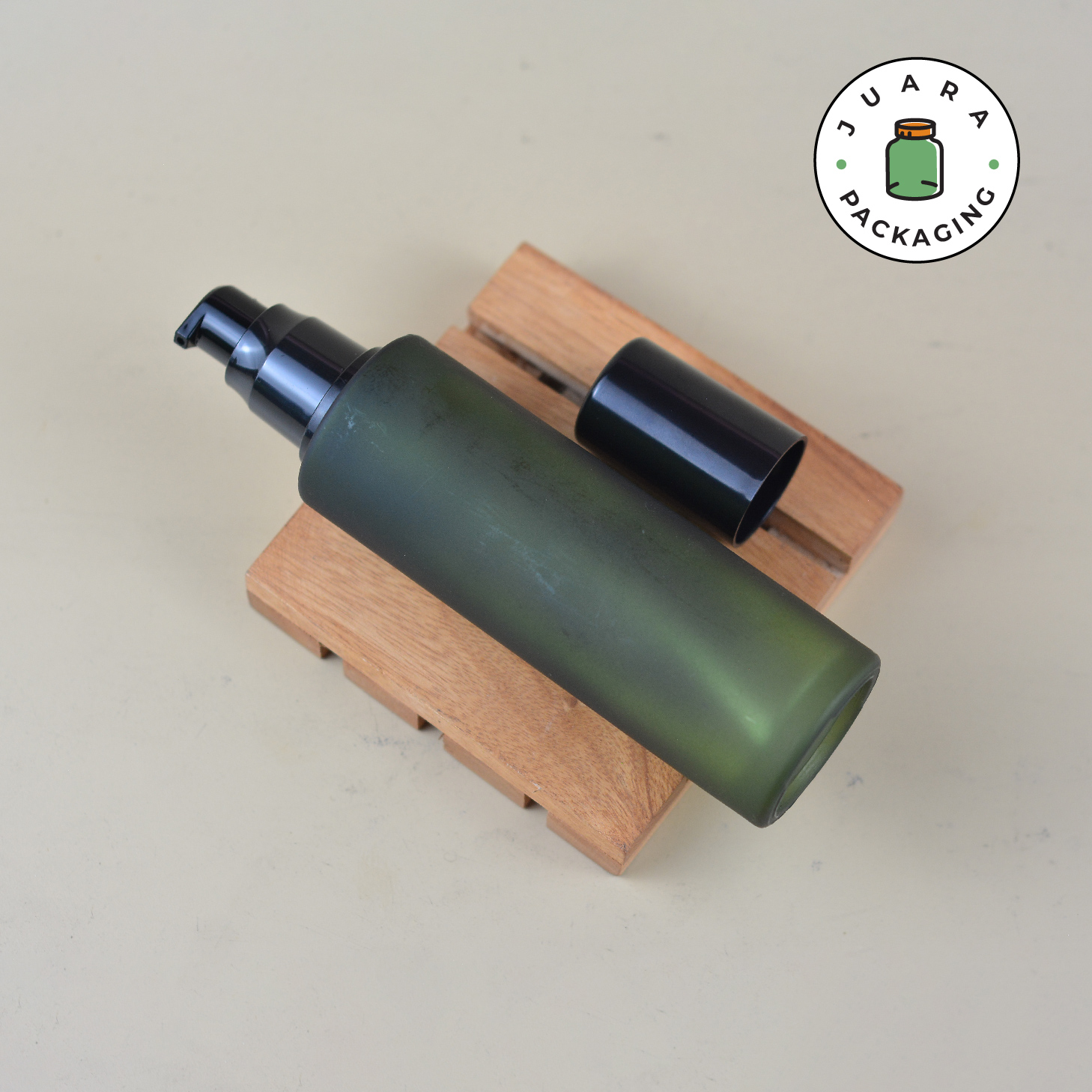 Botol Pump Kaca 100ml – Botol Kaca Tebal Warna Hijau Buram Tutup Pump Hitam untuk Skincare, Lotion, Aromaterapi, Kosmetik, Refill Botol Isi Ulang 100 ml