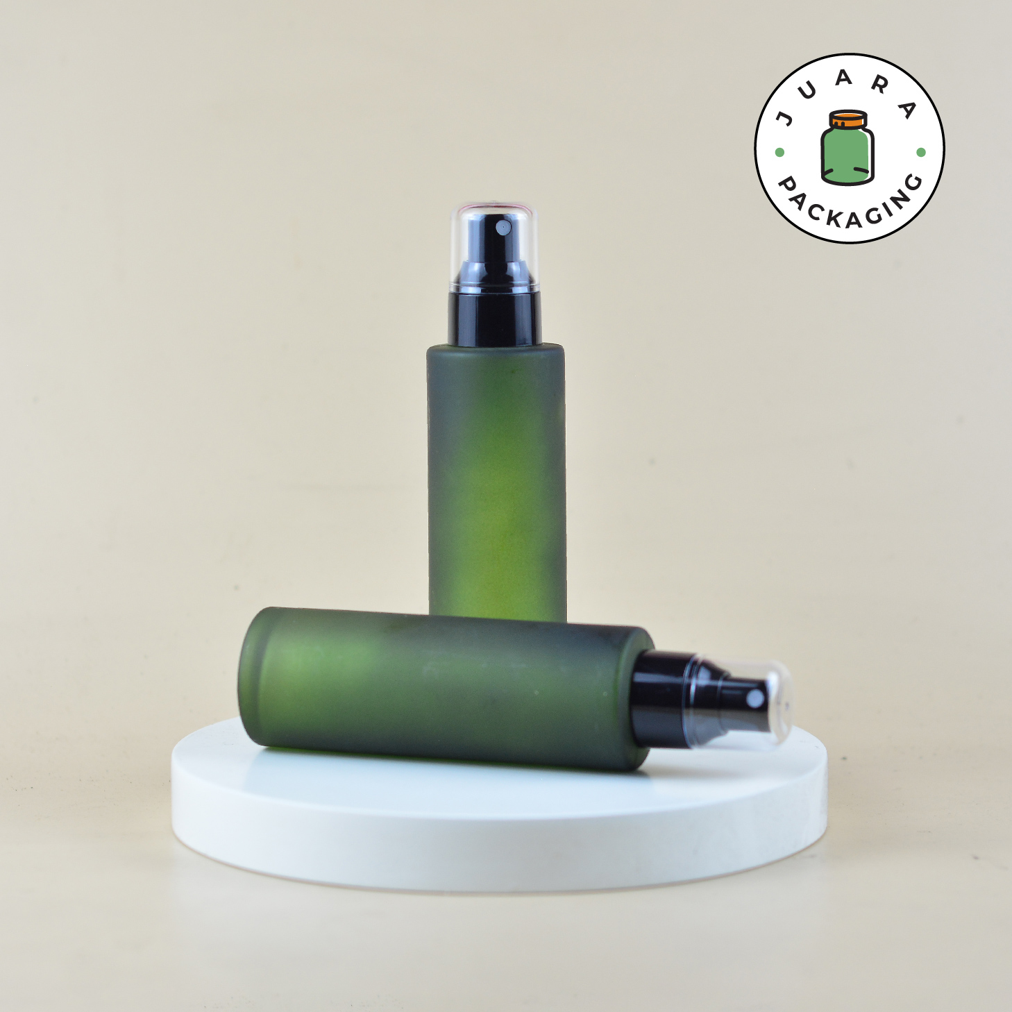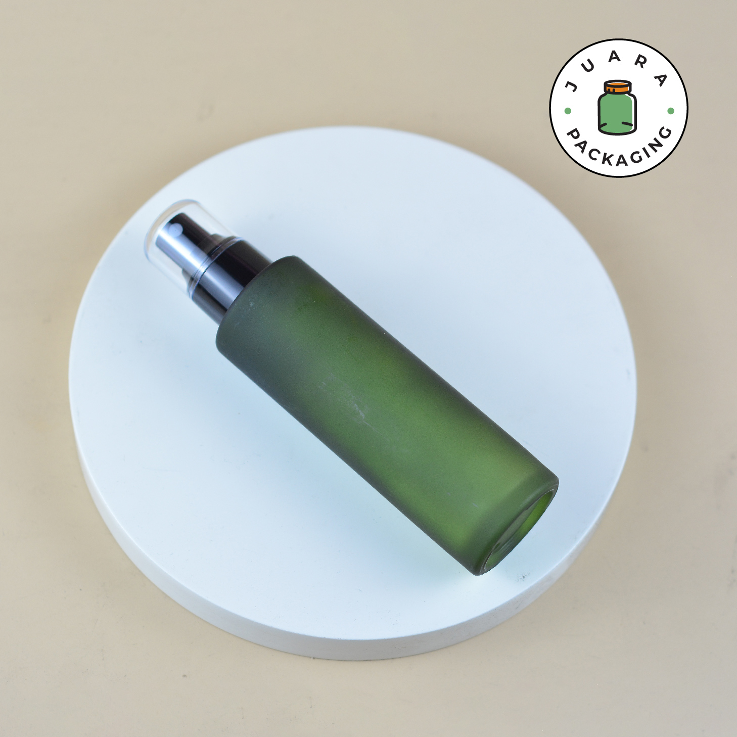 Botol Spray Kaca 100ml Warna Hijau Buram Tebal dengan Tutup Spray Hitam Transparan – Wadah Refill Skincare, Toner, Face Mist, Parfum, Cairan Herbal Natural 100 ml