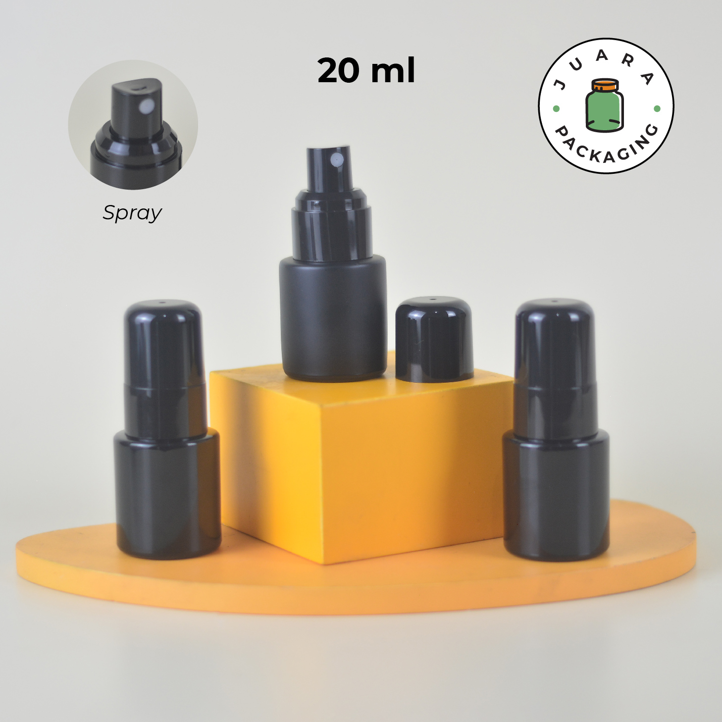 Botol pump dan spray kaca 20ml dengan warna hitam elegan tersedia dalam dua pilihan finishing, glossy dan doff, dilengkapi tutup transparan silinder yang kuat dan estetik. Terbuat dari kaca tebal berkualitas tinggi, botol ini ideal untuk berbagai kebutuhan skincare dan kosmetik seperti serum, lotion, toner, foundation, dan essence.