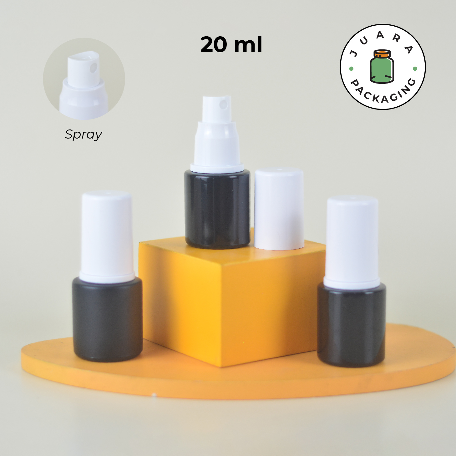 Botol Kaca Hitam Tutup Spray Putih Silinder – 20ml