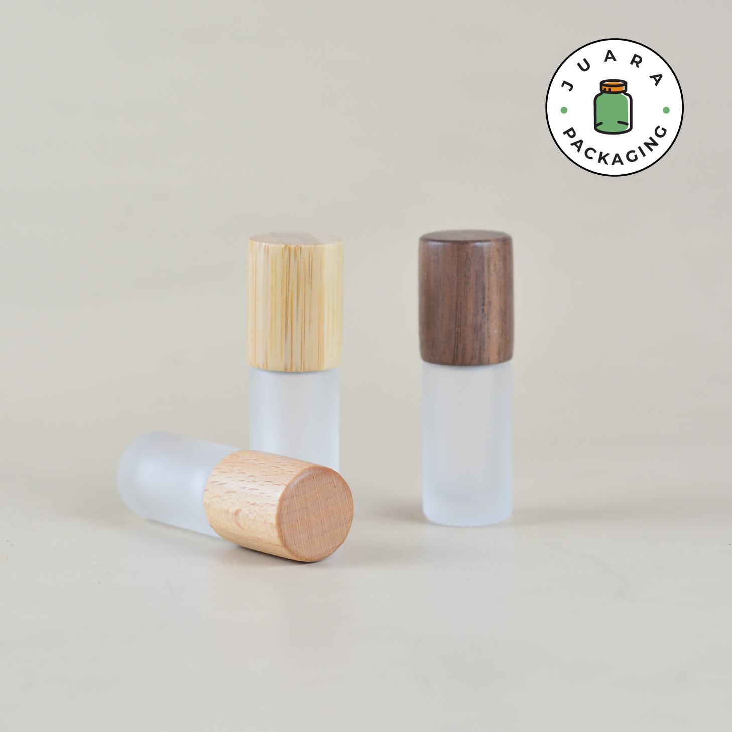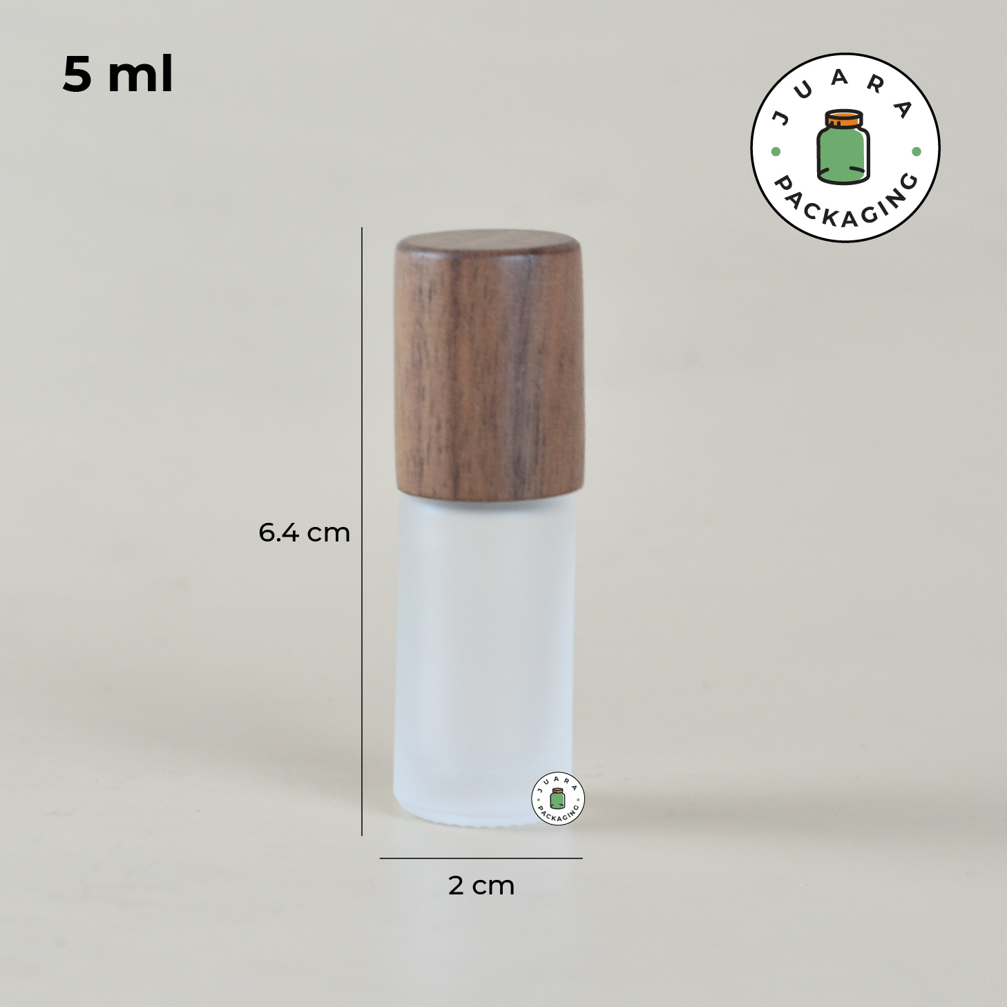 Botol Kaca Roll On 5ml – Botol Parfum Mini Kaca Buram Matte Doff dengan Roller Stainless dan Tutup Aksen Kayu 3 Warna | Wadah Minyak Angin Parfum Rollon 5 ml