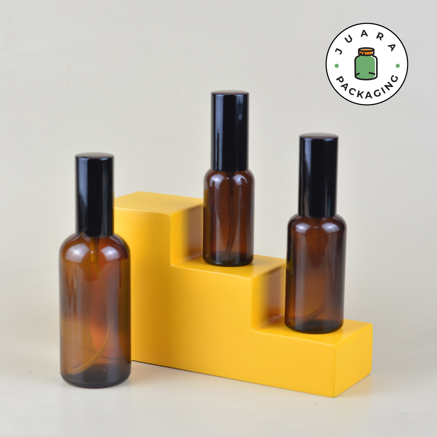Botol Spray Kaca tersedia dalam ukuran 30ml, 50ml, dan 100ml, terbuat dari kaca tebal berkualitas dengan warna amber elegan. Dilengkapi dengan spray hitam dan tutup plastik, botol ini cocok untuk parfum, essential oil, atau cairan aromaterapi. Kemasan produk praktis dan premium untuk penggunaan sehari-hari.