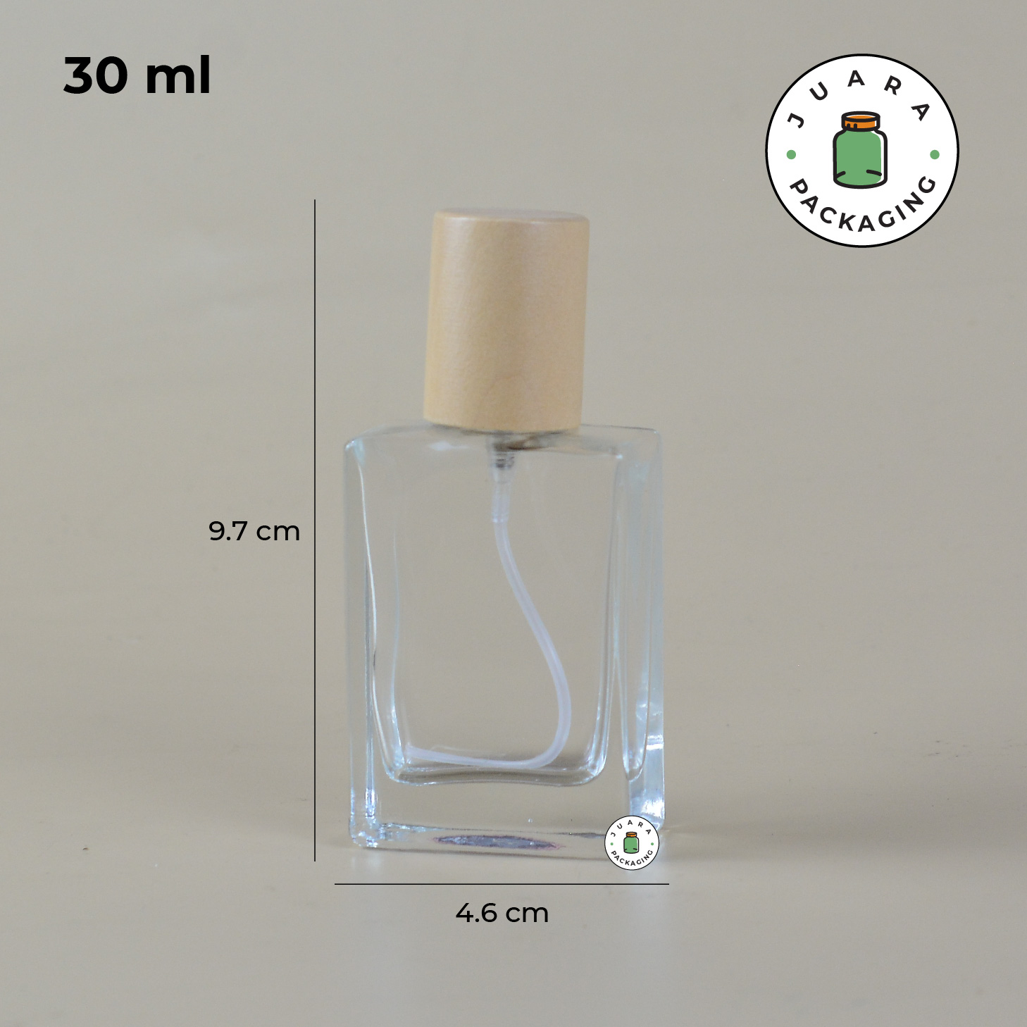 Botol Parfum Spray 30ml ini hadir dengan desain kaca tebal kotak dan spray berwarna gold. Kemasan produk yang mewah ini dilengkapi dengan tutup kayu, menambah kesan elegan. Ukuran 30 ml ideal untuk dibawa kemana saja, memastikan parfum favorit Anda selalu siap digunakan.