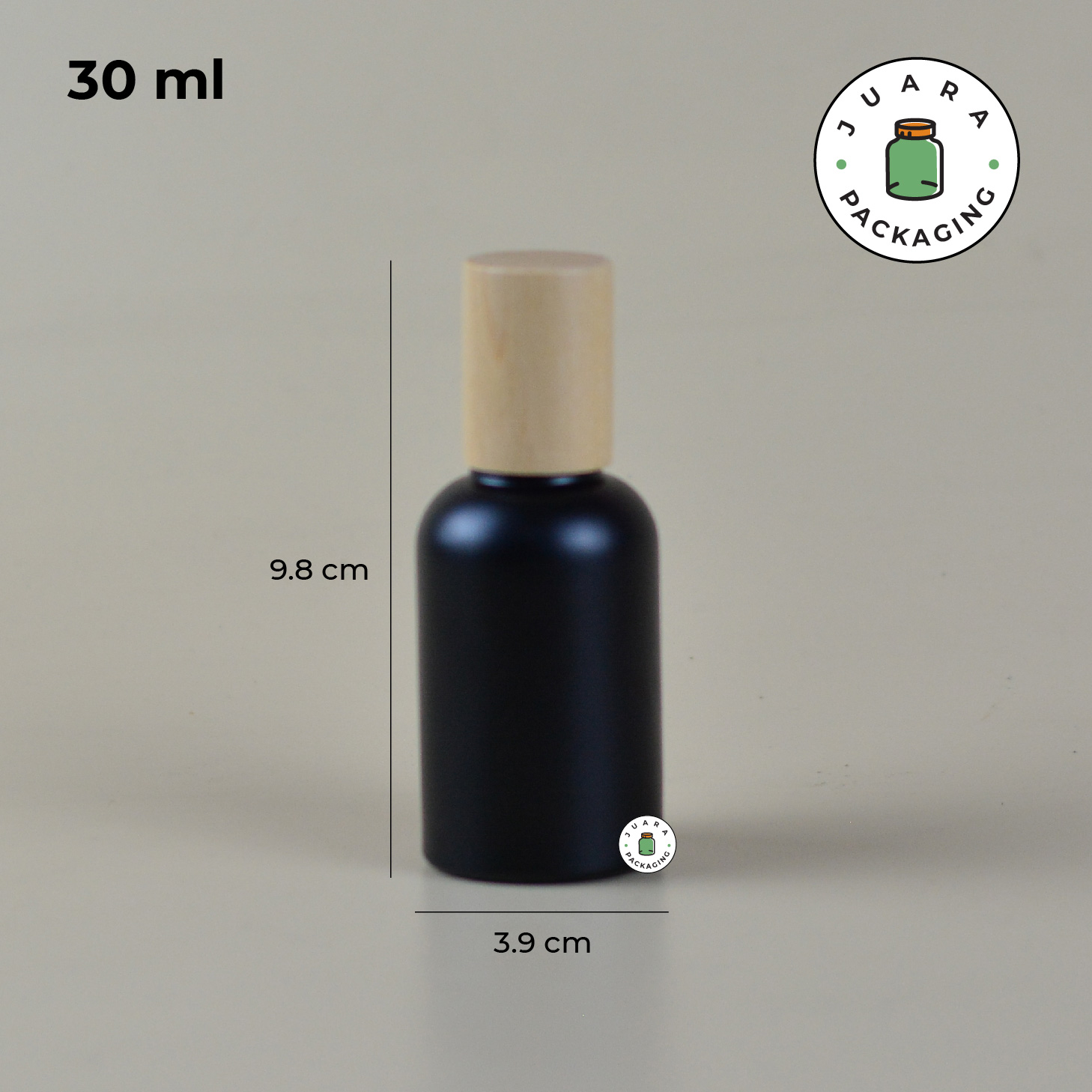 Botol parfum kaca 30ml dengan desain yang elegan dan eksklusif. Terbuat dari kaca hitam doff berkualitas tinggi dengan tutup kayu dan spray Gold yang menawan. Cocok sebagai kemasan produk parfum isi ulang yang praktis dan menarik perhatian. Ideal untuk menampilkan aroma favorit Anda dengan gaya yang memikat.