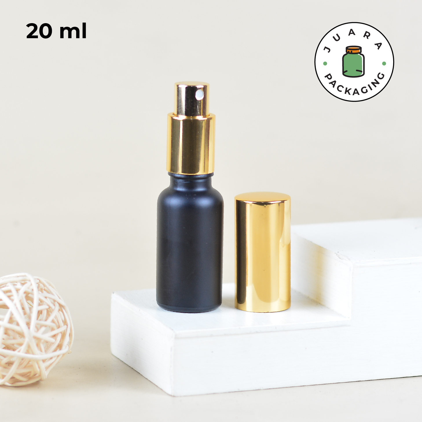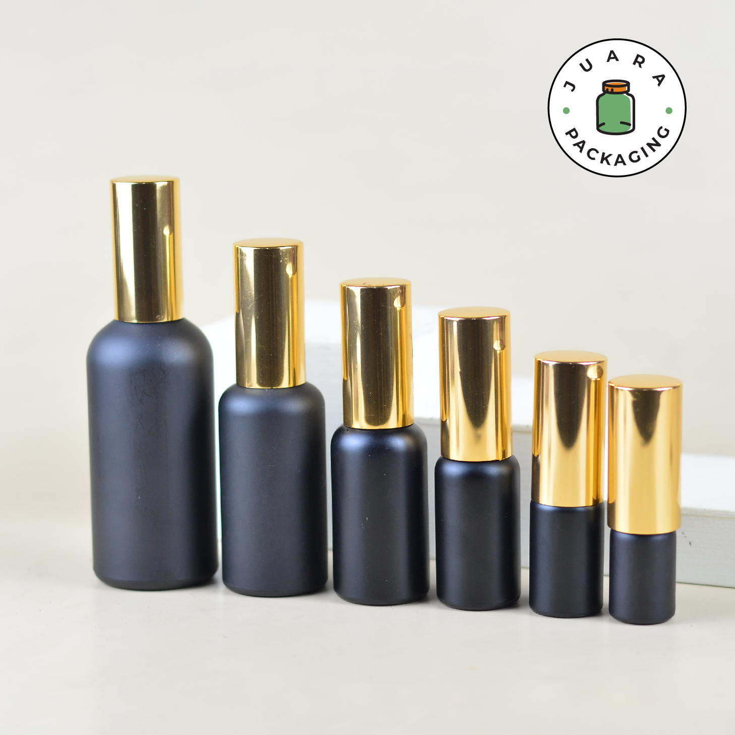 Botol Kaca Spray tersedia dalam ukuran 5ml, 10ml, 20ml, 30ml, 50ml, dan 100ml. Dengan desain hitam doff matte dan tutup spray gold, kemasan produk ini tampak elegan dan eksklusif. Cocok untuk parfum, face mist, atau cairan lainnya, memberikan perlindungan maksimal dari paparan cahaya.