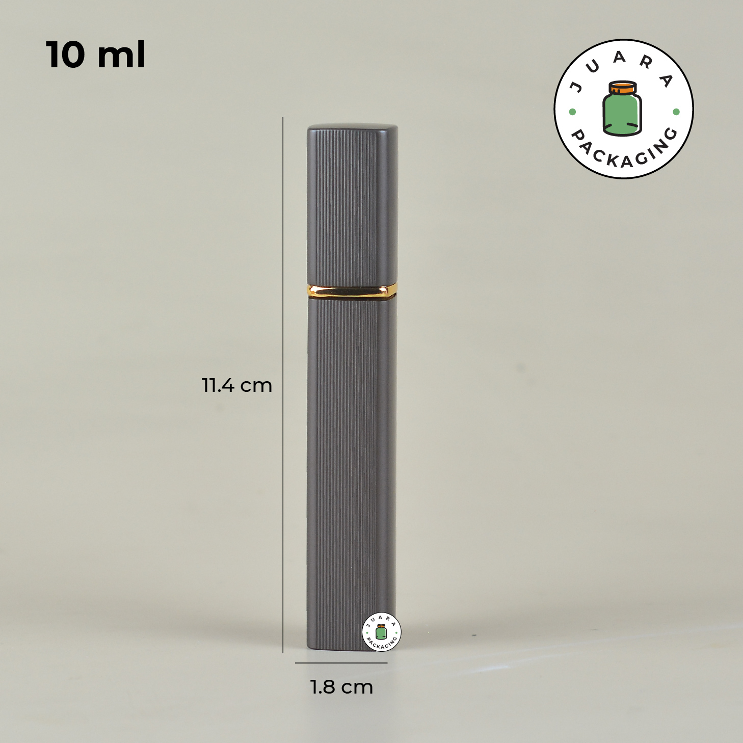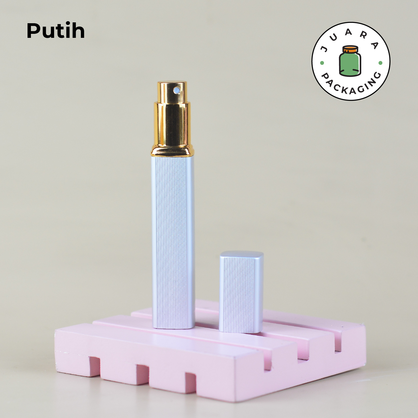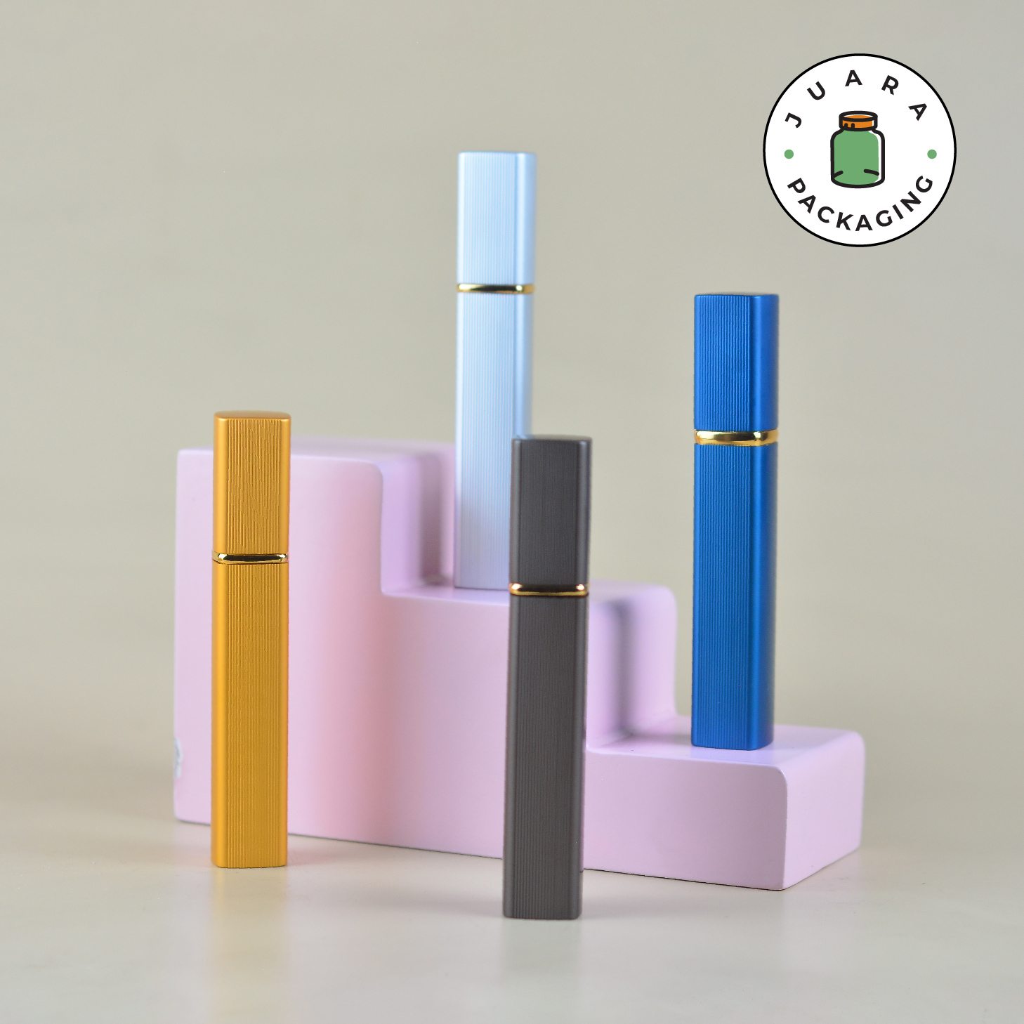 Botol Parfum Spray 10ml dengan botol kaca berkualitas, dilengkapi spray gold yang halus. Wadah aluminium warna-warni dengan motif garis memberikan tampilan stylish. Cocok untuk isi ulang parfum, praktis dibawa saat bepergian. Ukuran mini 10 ml memudahkan penggunaan harian. Desain elegan dan tahan lama.