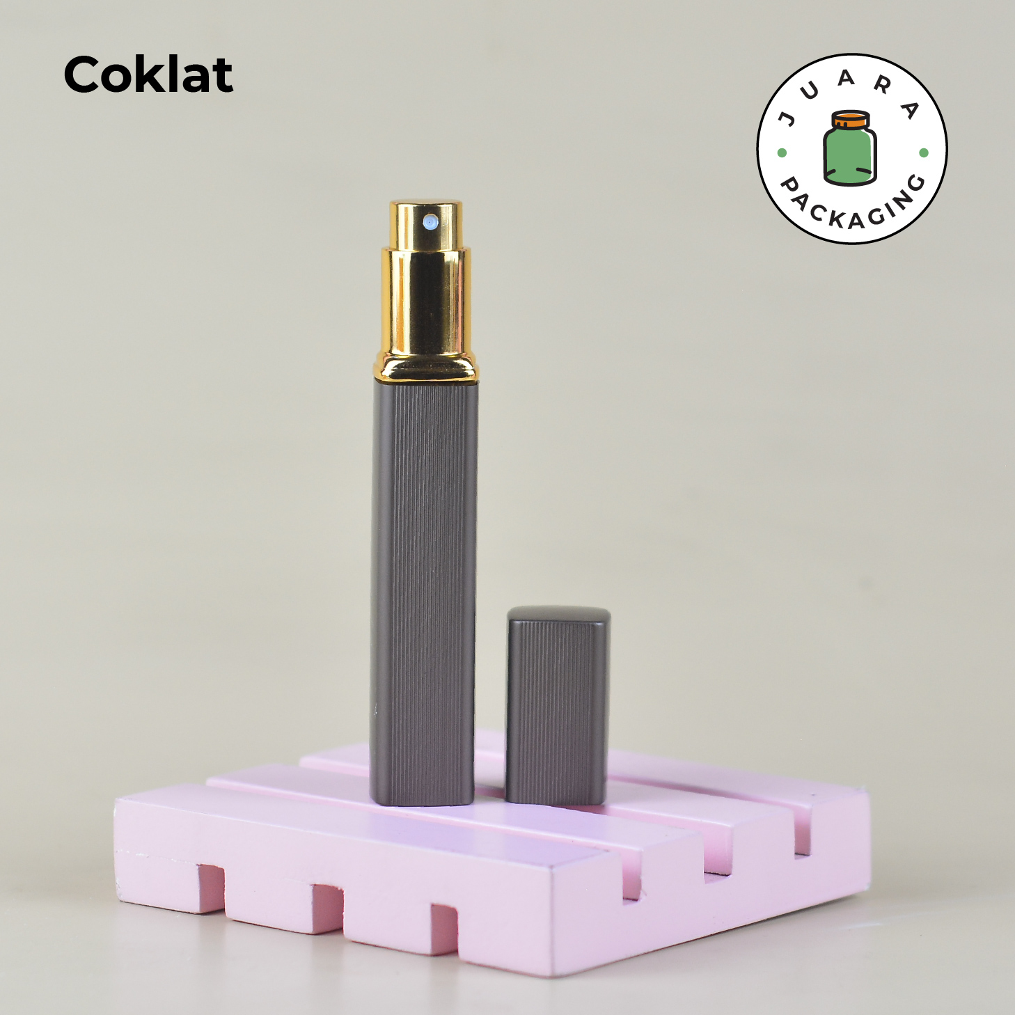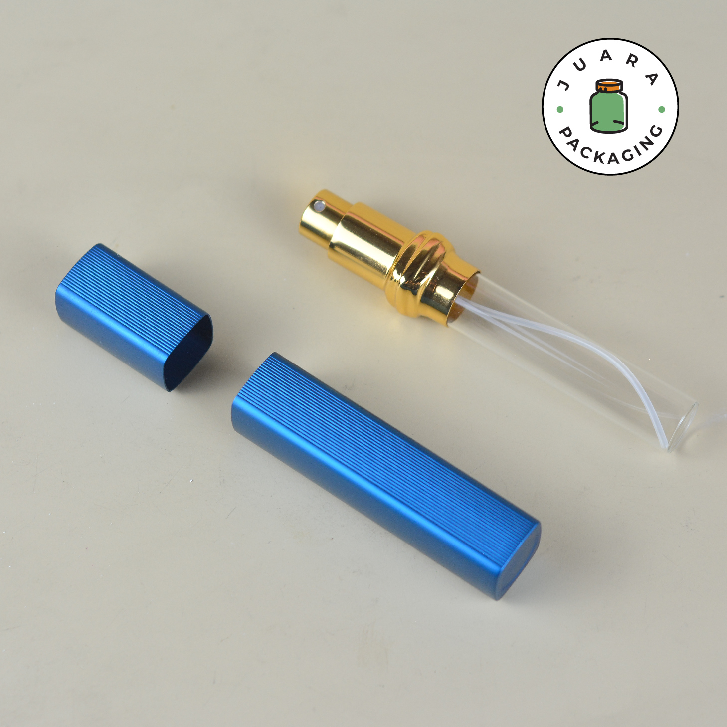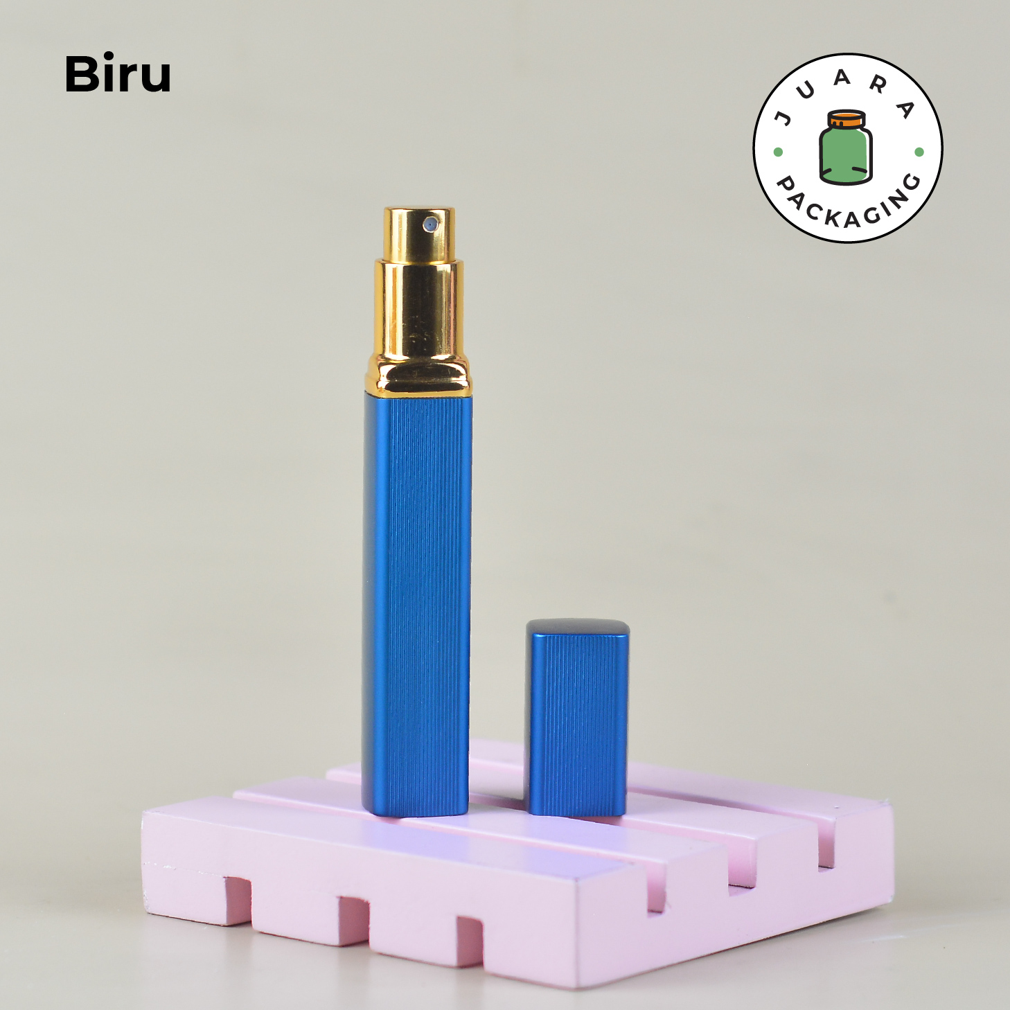 Botol Parfum Spray 10ml dengan botol kaca berkualitas, dilengkapi spray gold yang halus. Wadah aluminium warna-warni dengan motif garis memberikan tampilan stylish. Cocok untuk isi ulang parfum, praktis dibawa saat bepergian. Ukuran mini 10 ml memudahkan penggunaan harian. Desain elegan dan tahan lama.