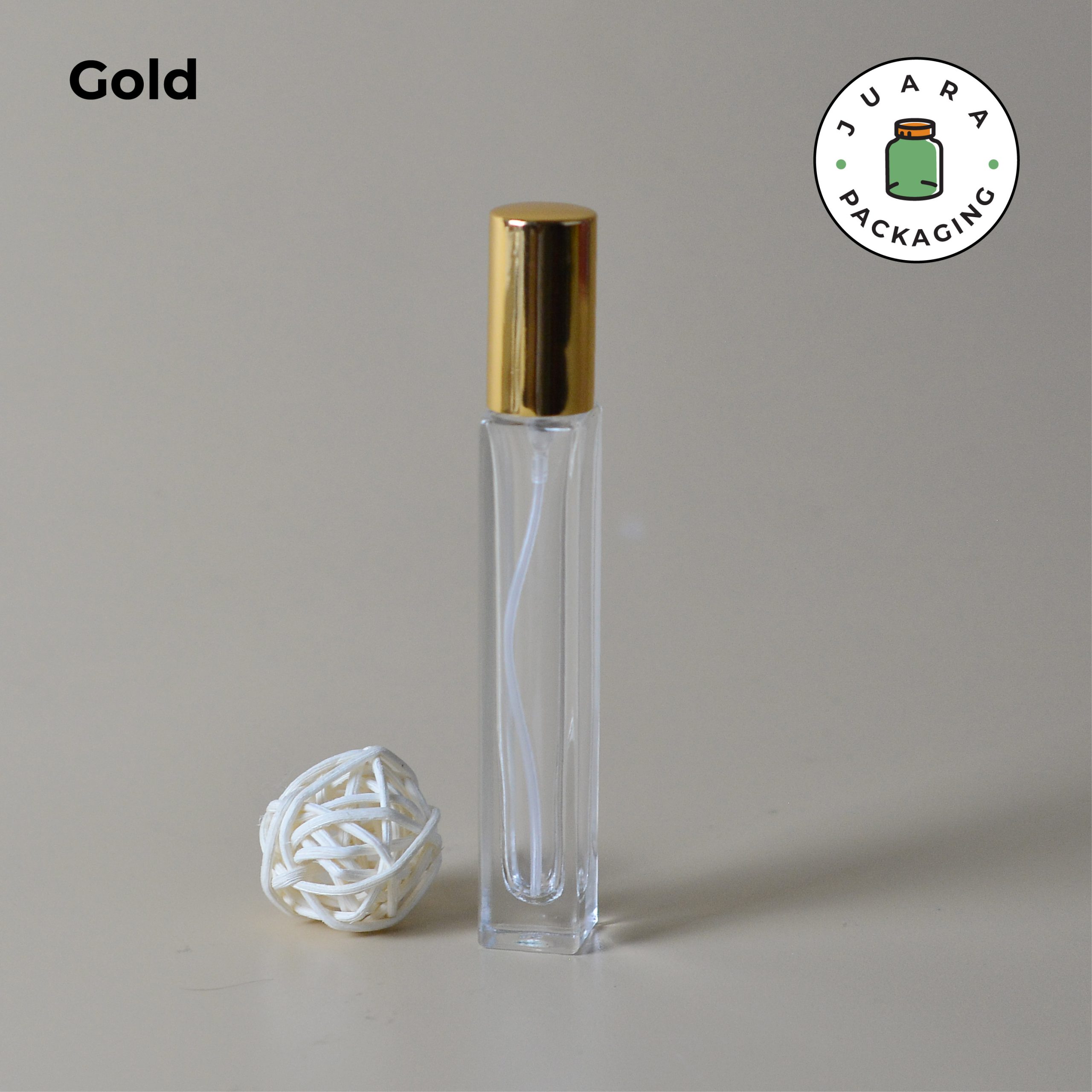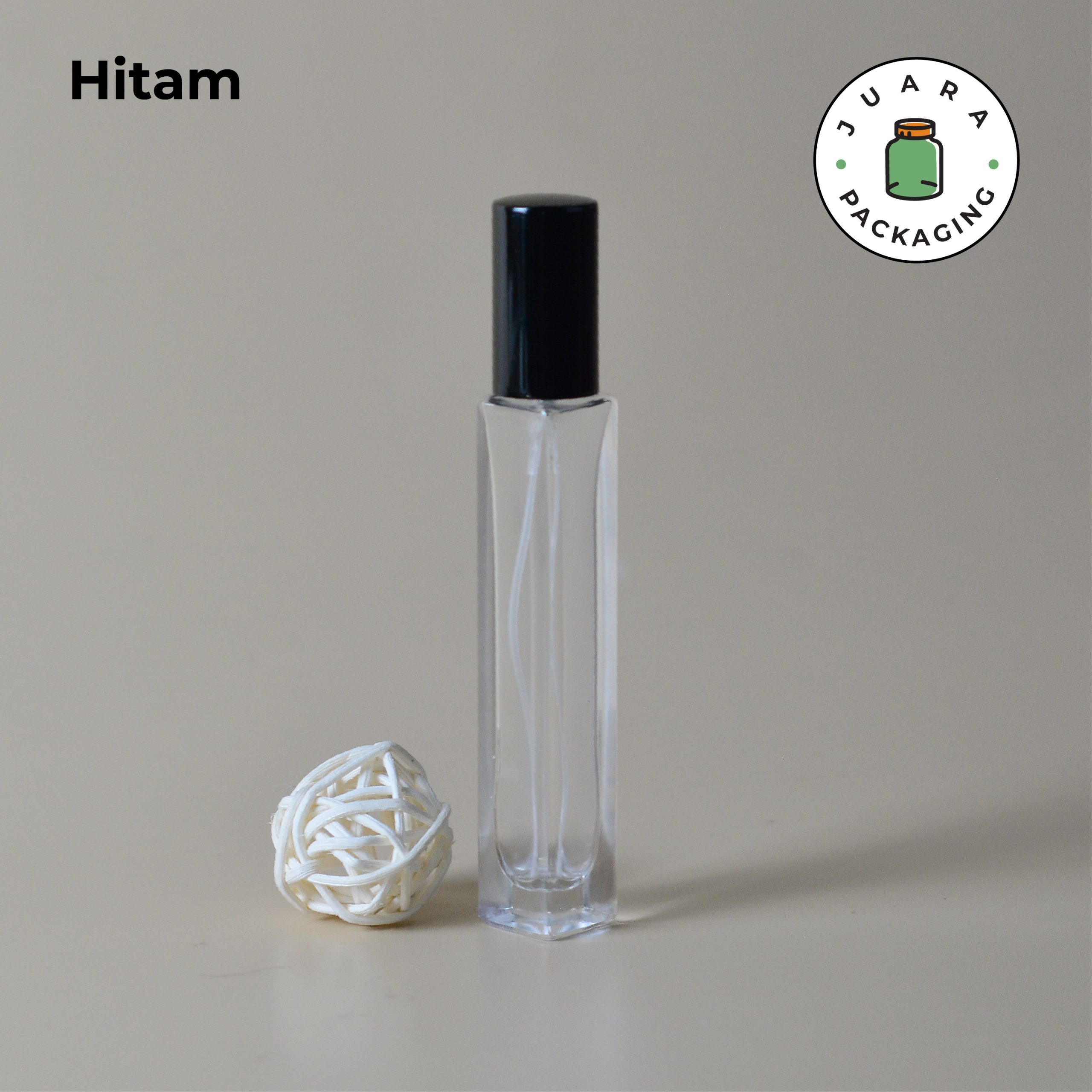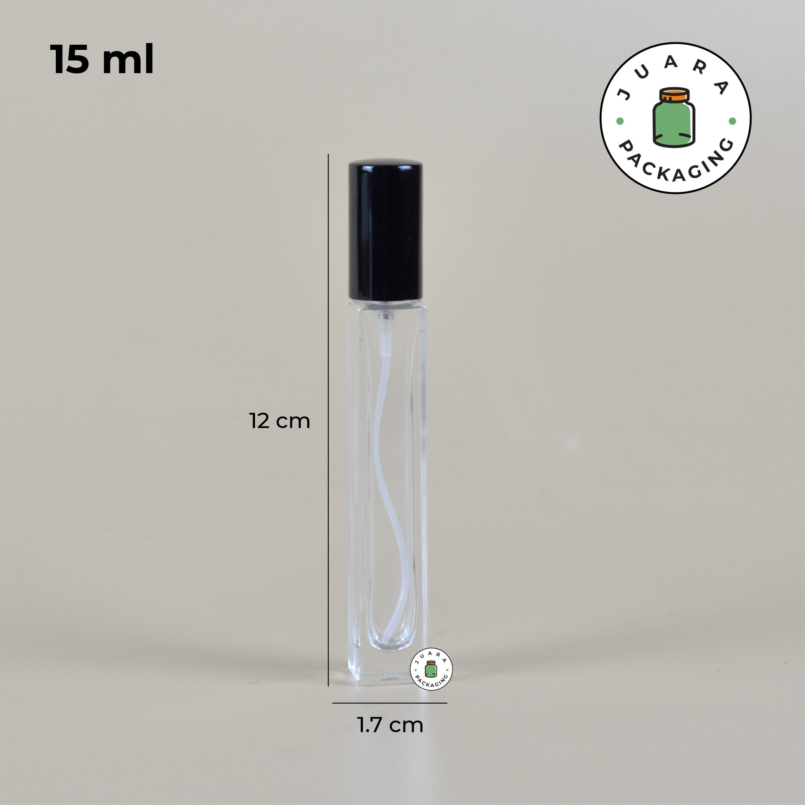 Botol Spray Kaca 15ml dengan tutup aluminium hitam dan gold ini adalah kemasan produk yang elegan dan praktis. Ukurannya yang mini membuatnya mudah dibawa saat bepergian. Desainnya yang mewah menjadikan botol ini pilihan tepat untuk parfum Anda, memberikan sentuhan kelas pada kemasan produk Anda.