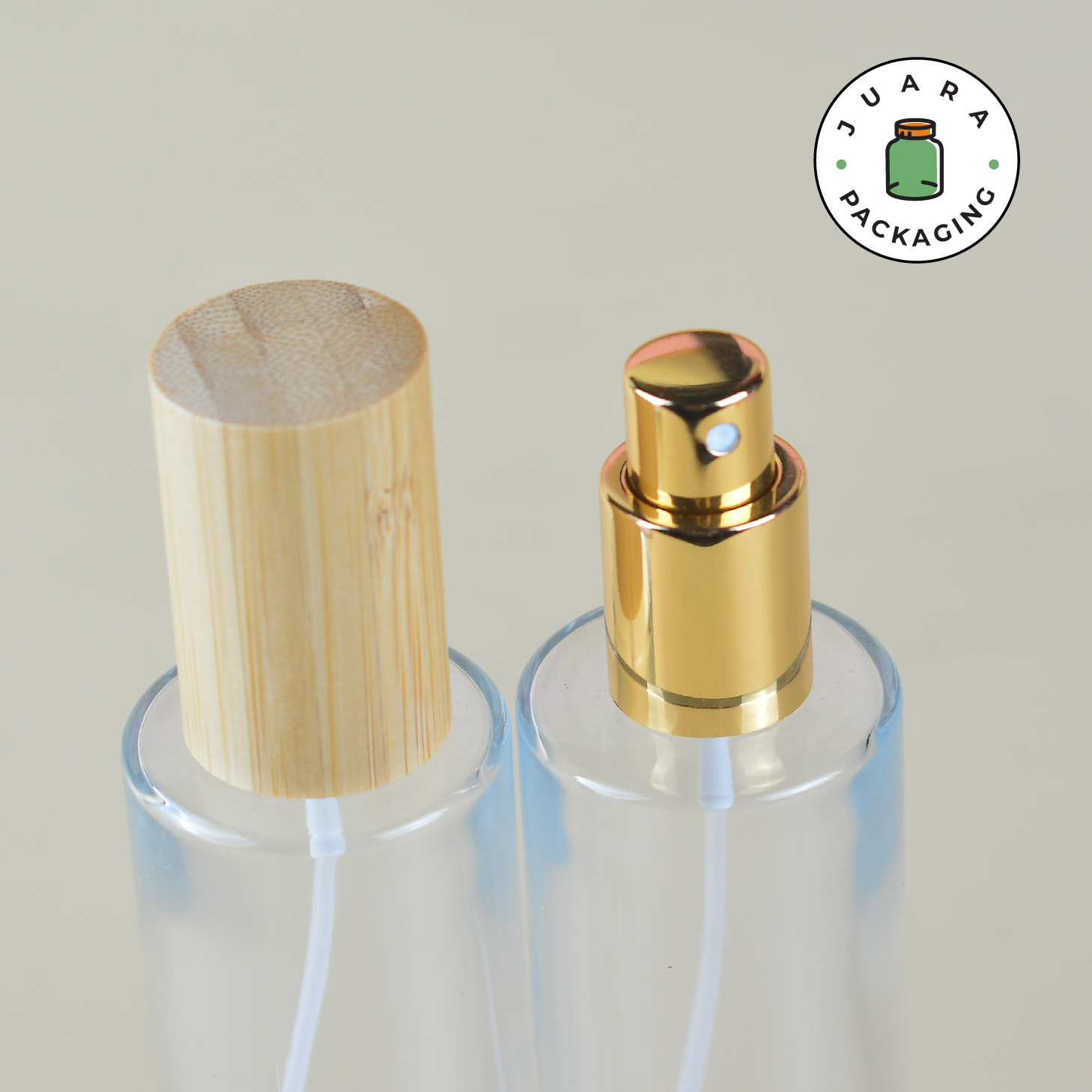 Botol Spray Kaca 150ml terbuat dari kaca tebal bening berkualitas tinggi, dirancang dengan spray gold dan drat ulir yang praktis. Tutup kayu menambah sentuhan elegan dan alami, menjadikannya pilihan sempurna untuk parfum atau produk perfume Anda. Kemasan produk ini menghadirkan tampilan mewah sekaligus fungsional.