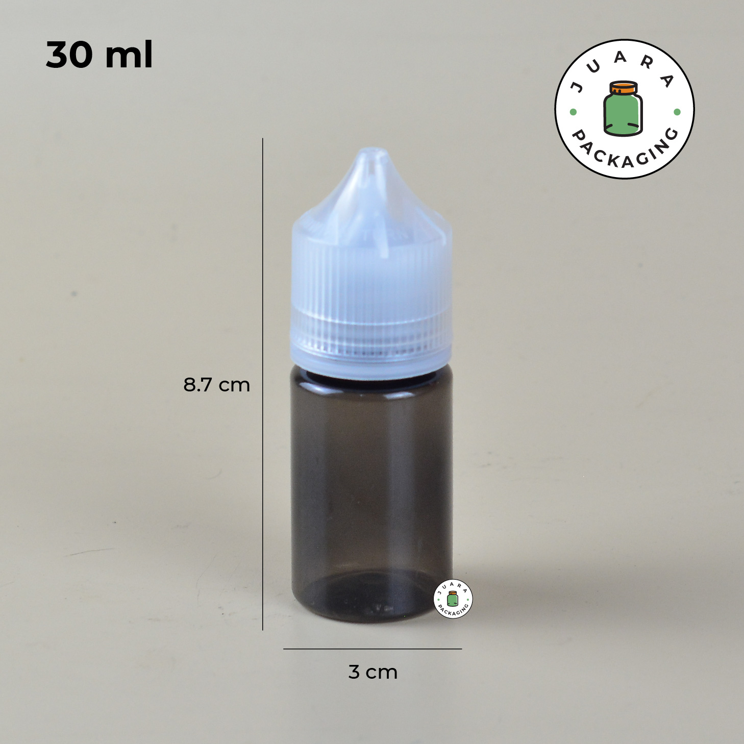 Botol plastik 30ml berwarna hitam ini adalah kemasan produk ideal untuk liquid vaporizer Anda. Dengan tutup hitam yang praktis, botol ini menjaga cairan tetap aman dan higienis. Desainnya yang simpel namun elegan membuatnya cocok untuk penggunaan sehari-hari, memastikan produk Anda tampil modern dan profesional.