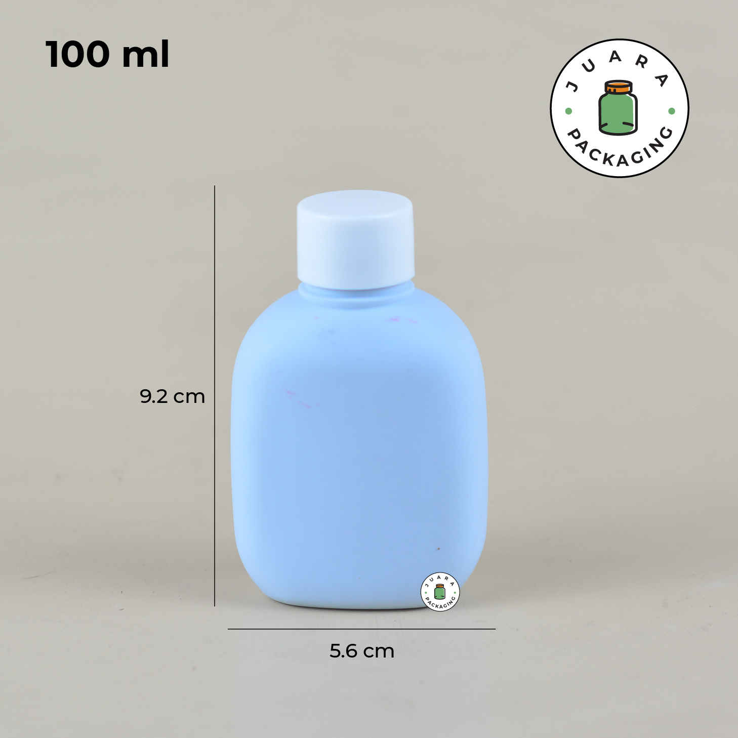 Botol Plastik Pastel 100ml dengan desain gepeng tersedia dalam warna biru dan hijau. Terbuat dari bahan PET berkualitas, dilengkapi tutup dropper dan tutup plastik untuk kemasan produk yang aman. Cocok untuk botol isi ulang skincare, minyak, atau serum dengan desain praktis, ringan, dan elegan.