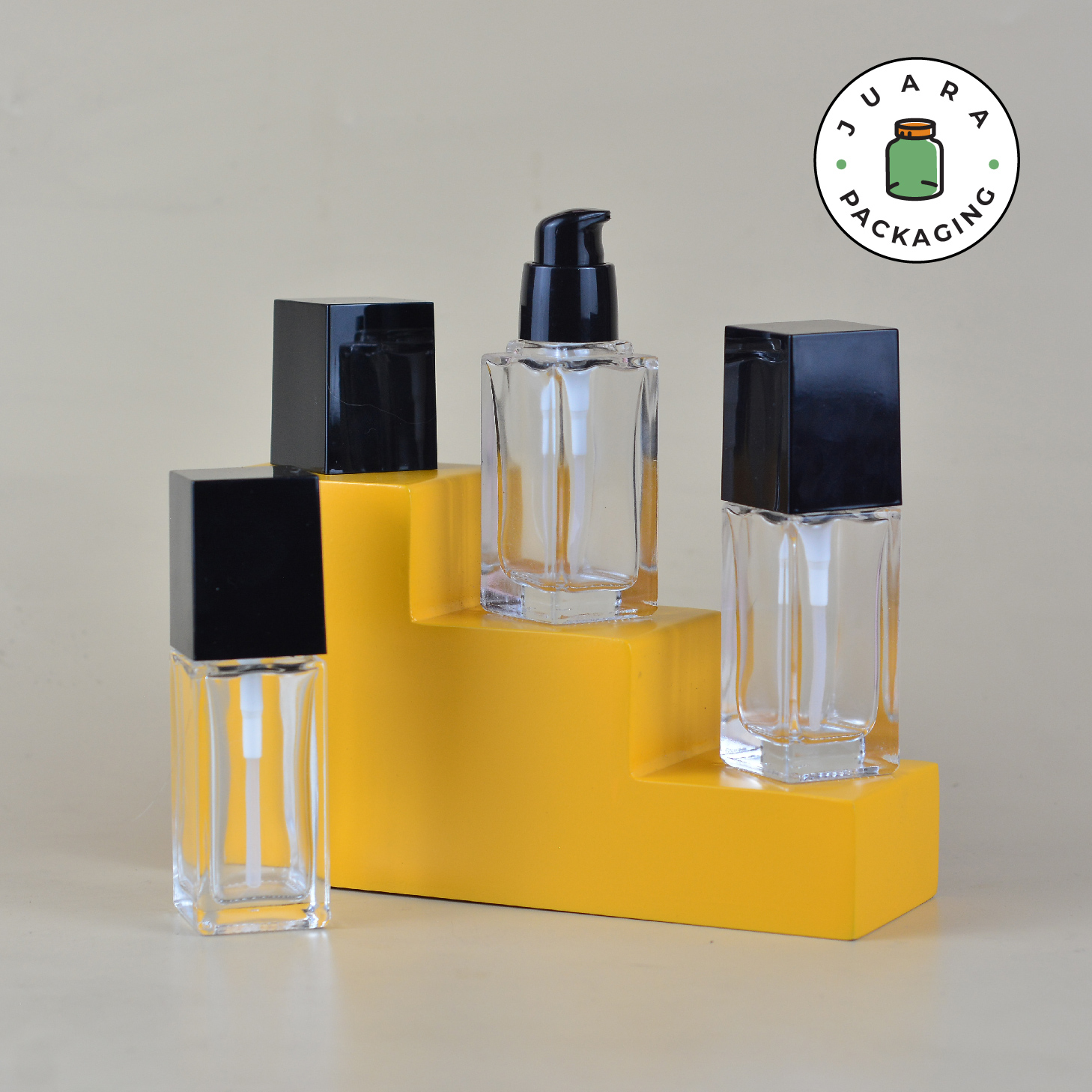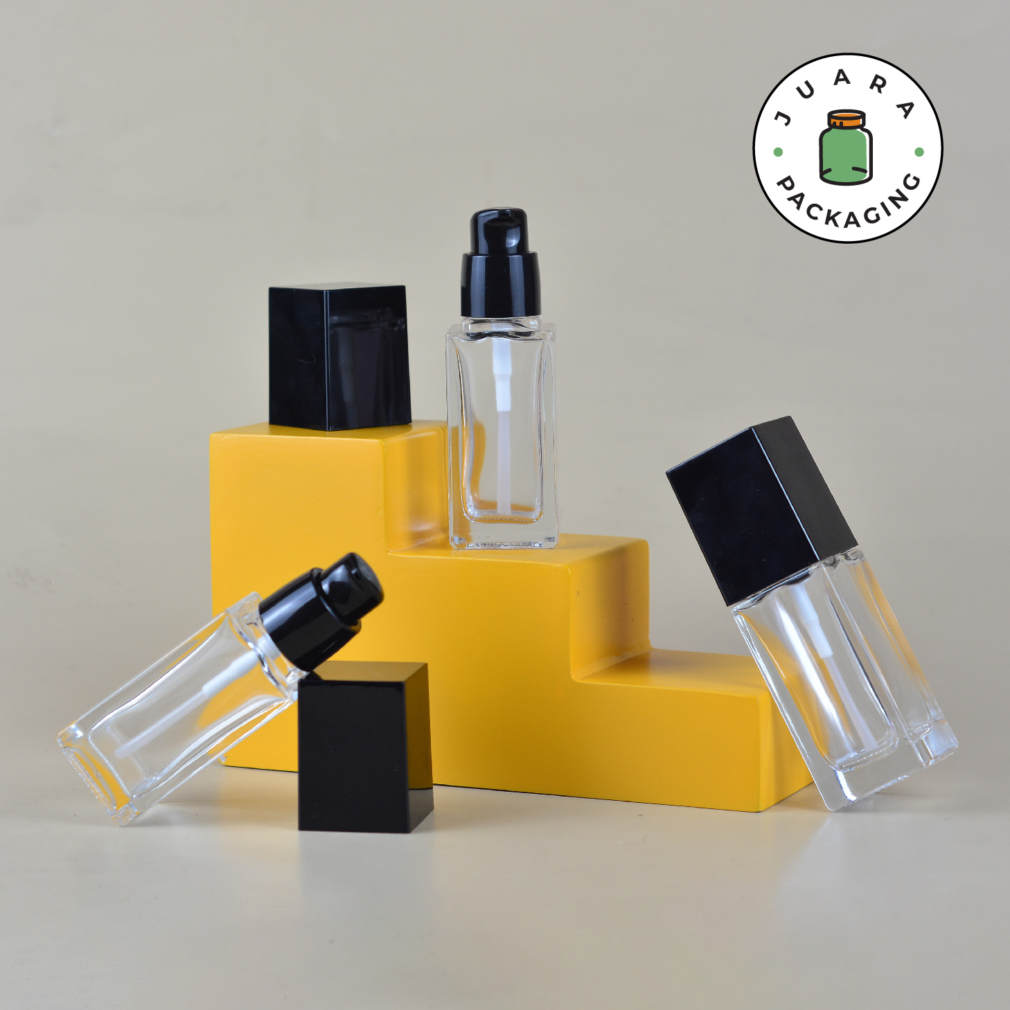 Botol Pump Kaca 30ml ini hadir dengan desain kotak elegan dari kaca tebal berkualitas. Dilengkapi dengan pump hitam berbahan plastik, botol ini cocok untuk kemasan serum skincare. Kemasan produk yang praktis dan mewah, menjaga isi tetap higienis sekaligus memberikan tampilan profesional untuk perawatan kulit Anda.
