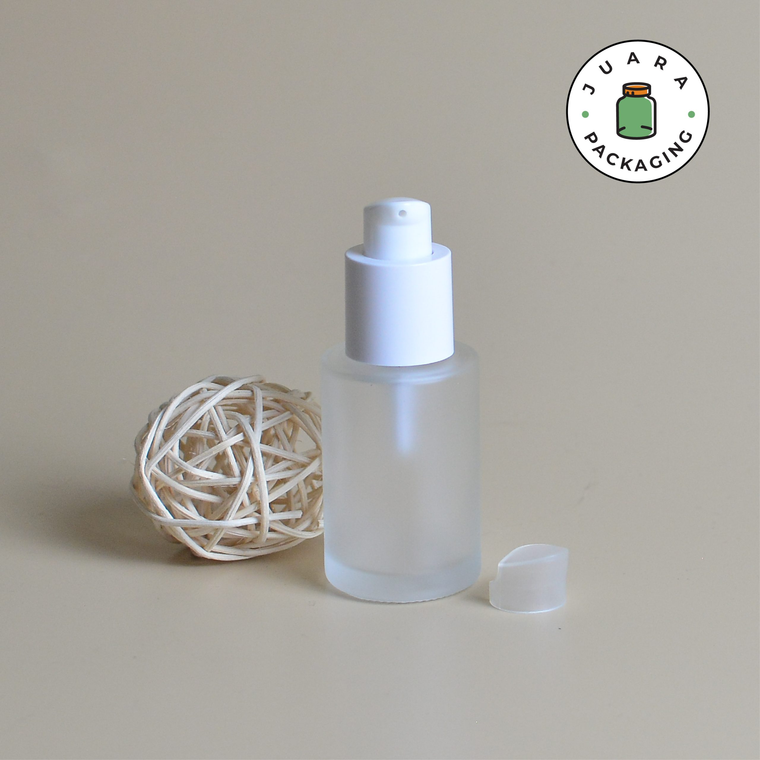 Botol kaca frosted berukuran 30ml dengan tampilan buram yang elegan dan tebal. Dilengkapi dengan spray pump dan berbagai pilihan tutup. Cocok untuk berbagai produk seperti parfum atau skincare. Kemasan produk yang modern dan estetis, memberikan kesan eksklusif dan ramah lingkungan.