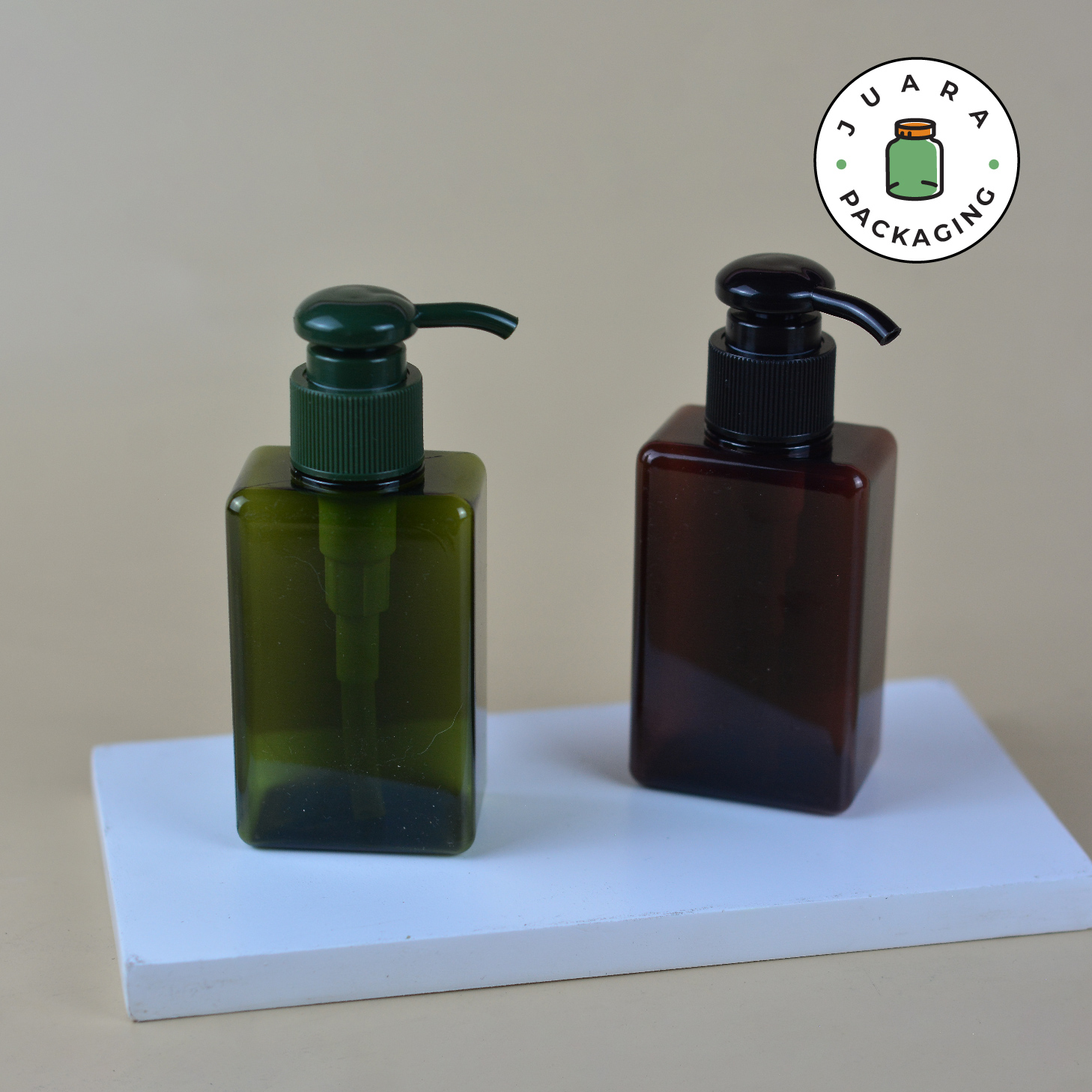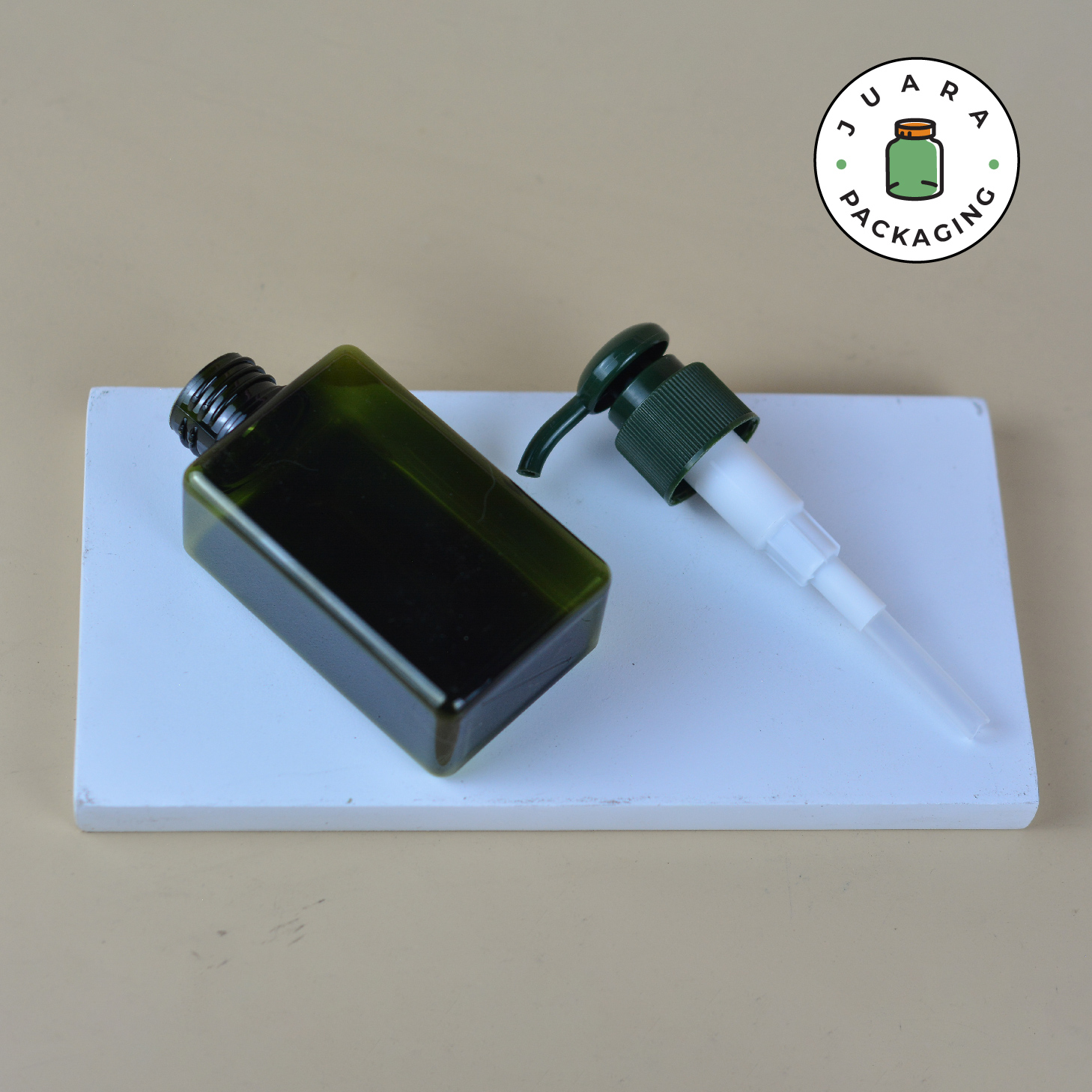 Botol Pump Plastik 100ml Kotak Warna Hijau Amber Tutup Pump Hijau Hitam – Wadah Sabun, Lotion, Cream Skincare Refill, Botol Kosmetik Isi Ulang Bahan Plastik Tebal 100 ml