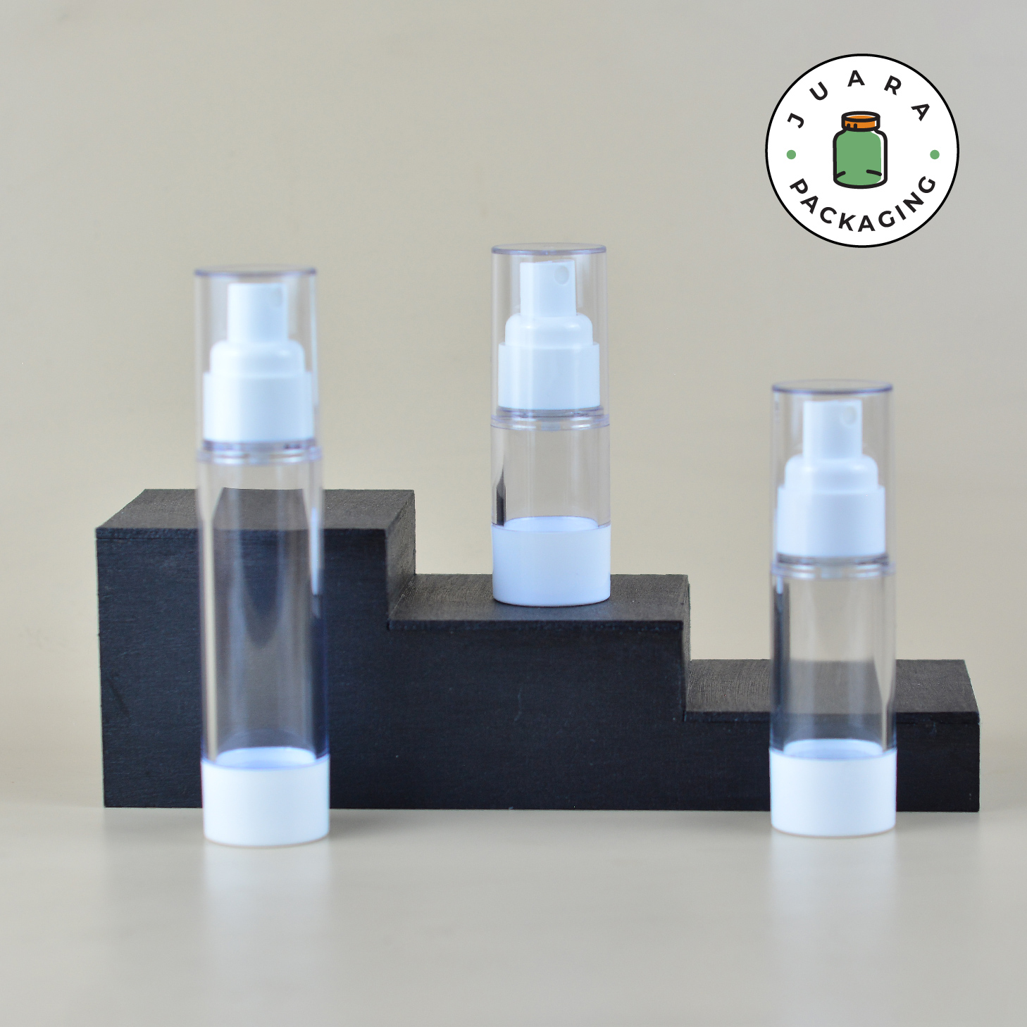 Botol airless spray kini hadir dalam berbagai ukuran, mulai dari 15ml, 30ml, hingga 50ml, memenuhi kebutuhan akan kemasan produk yang praktis dan higienis. Terbuat dari bahan akrilik berkualitas tinggi, botol ini dilengkapi dengan pompa airless yang putih, menjaga kestabilan dan kesegaran produk di dalamnya. Solusi modern untuk pengemasan yang efisien dan elegan.