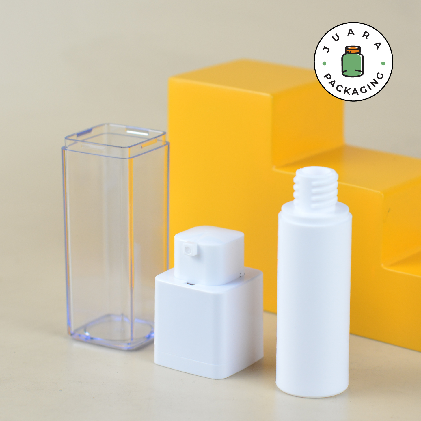 Botol Airless Spray Transparan 15ml 30ml 50ml Tanpa Selang – Model Twist Putar Warna Putih Bening Clear, Wadah Kosmetik Skincare Refill Serum Lotion Travel Size Nautica