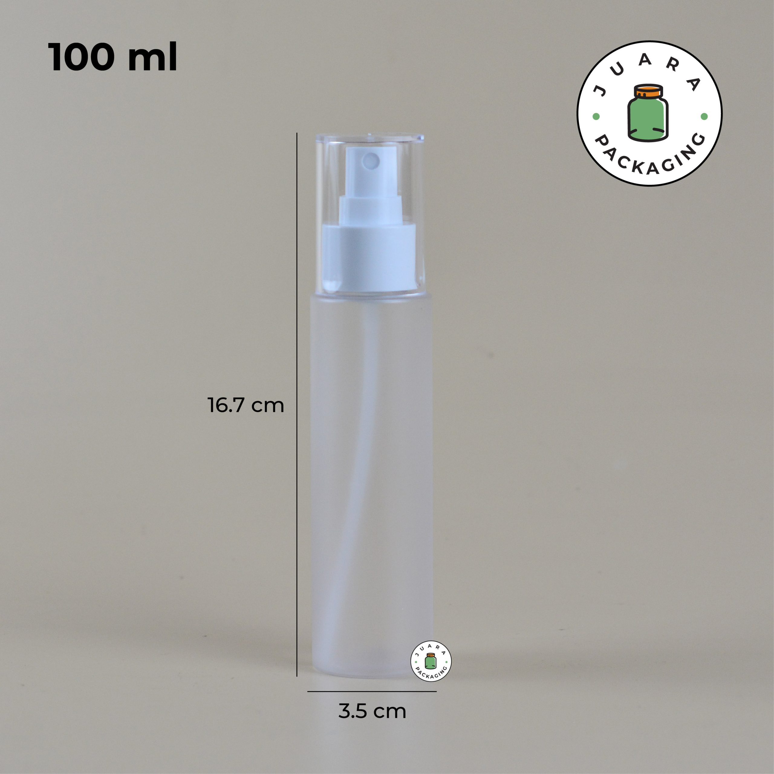 Botol spray plastik 100ml dengan desain buram frosted ini ideal untuk kemasan produk Anda. Dilengkapi dengan spray putih dan tutup transparan, botol ini praktis dan elegan. Kemasan produk ini memastikan isi tetap higienis dan mudah digunakan, sempurna untuk berbagai jenis cairan perawatan.
