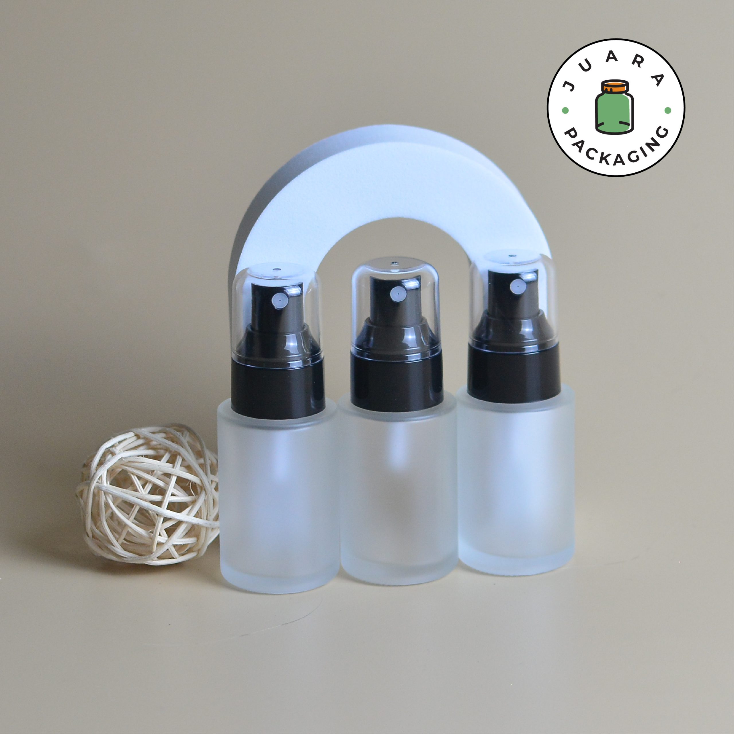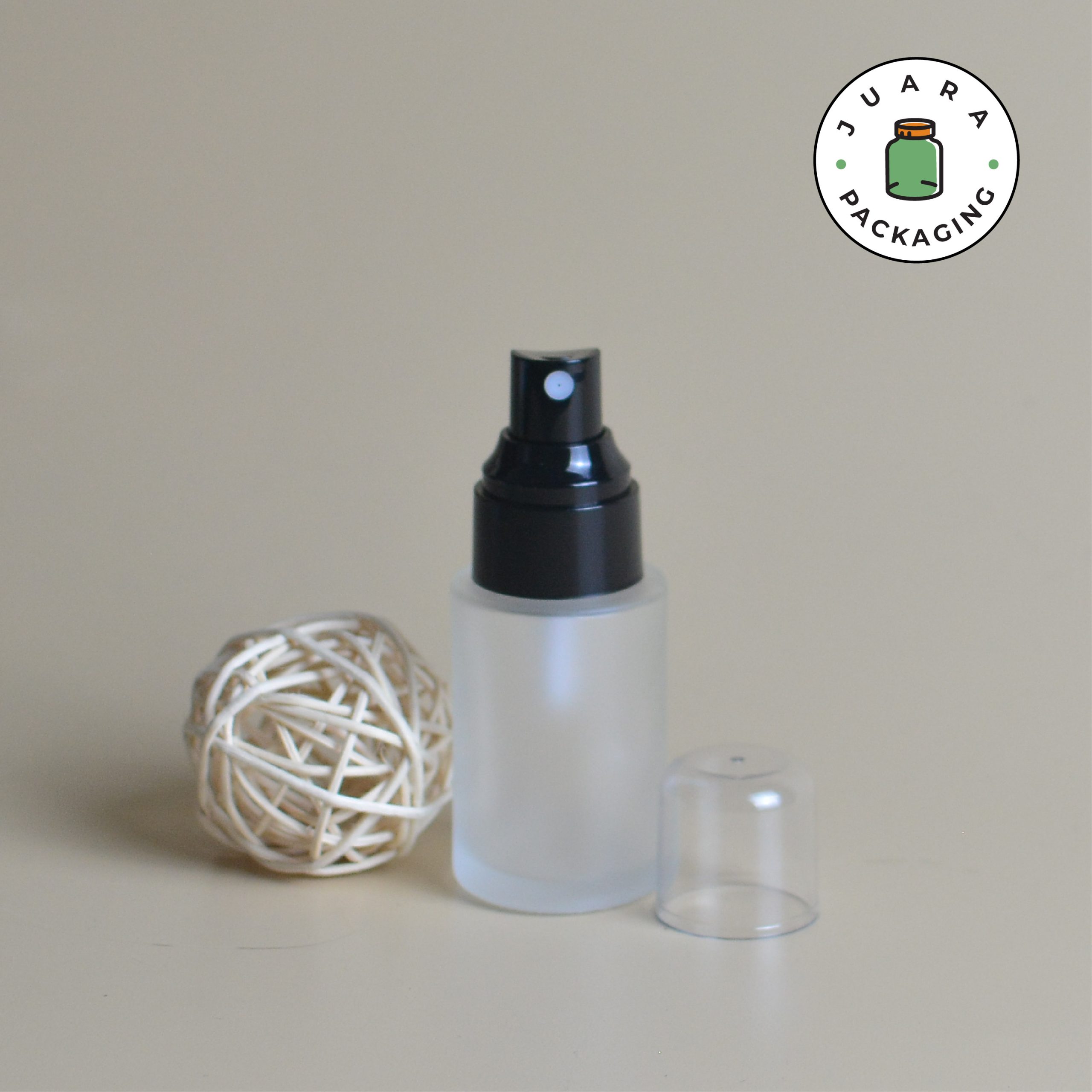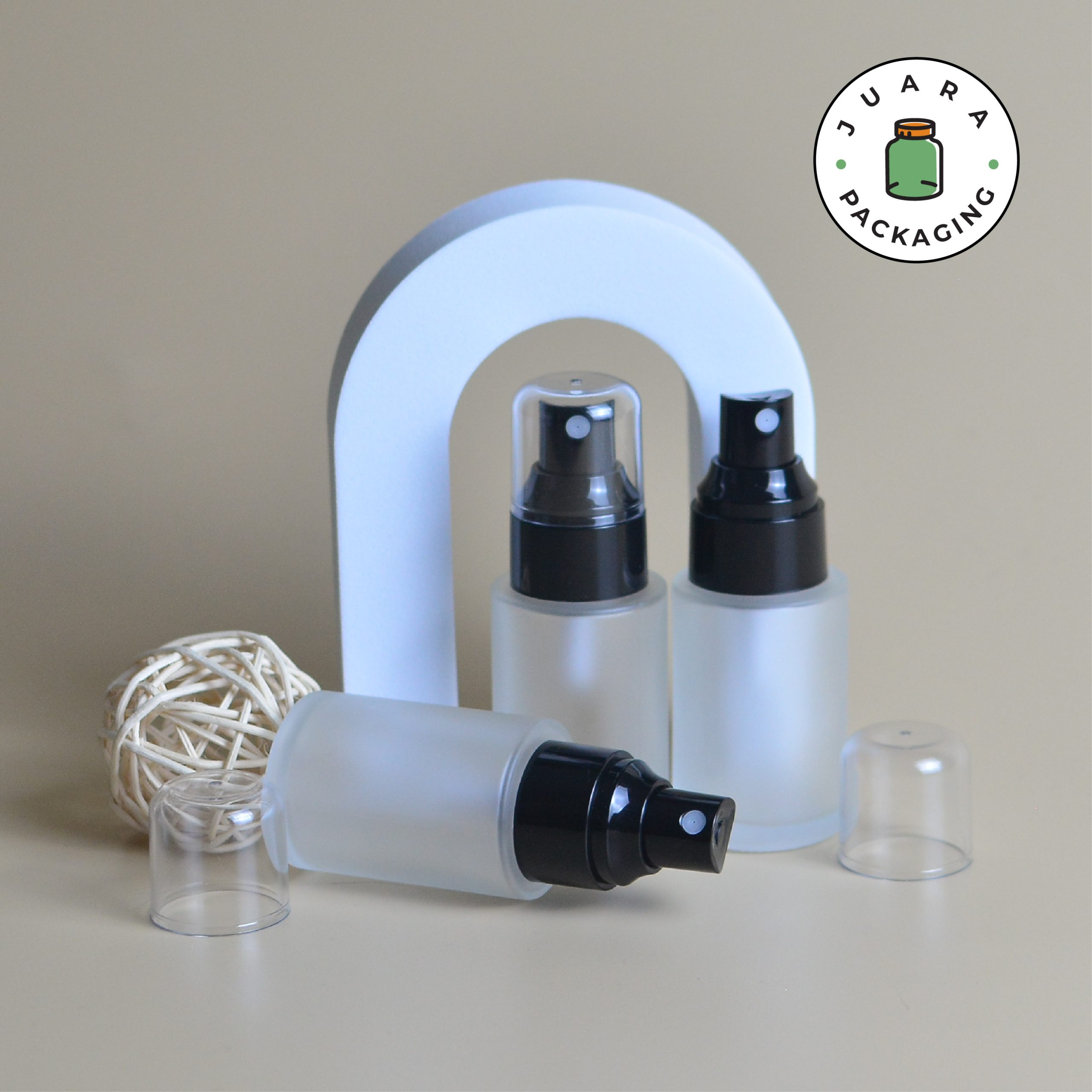 Botol kaca frosted berukuran 30ml dengan tampilan buram yang elegan dan tebal. Dilengkapi dengan spray pump dan berbagai pilihan tutup. Cocok untuk berbagai produk seperti parfum atau skincare. Kemasan produk yang modern dan estetis, memberikan kesan eksklusif dan ramah lingkungan.