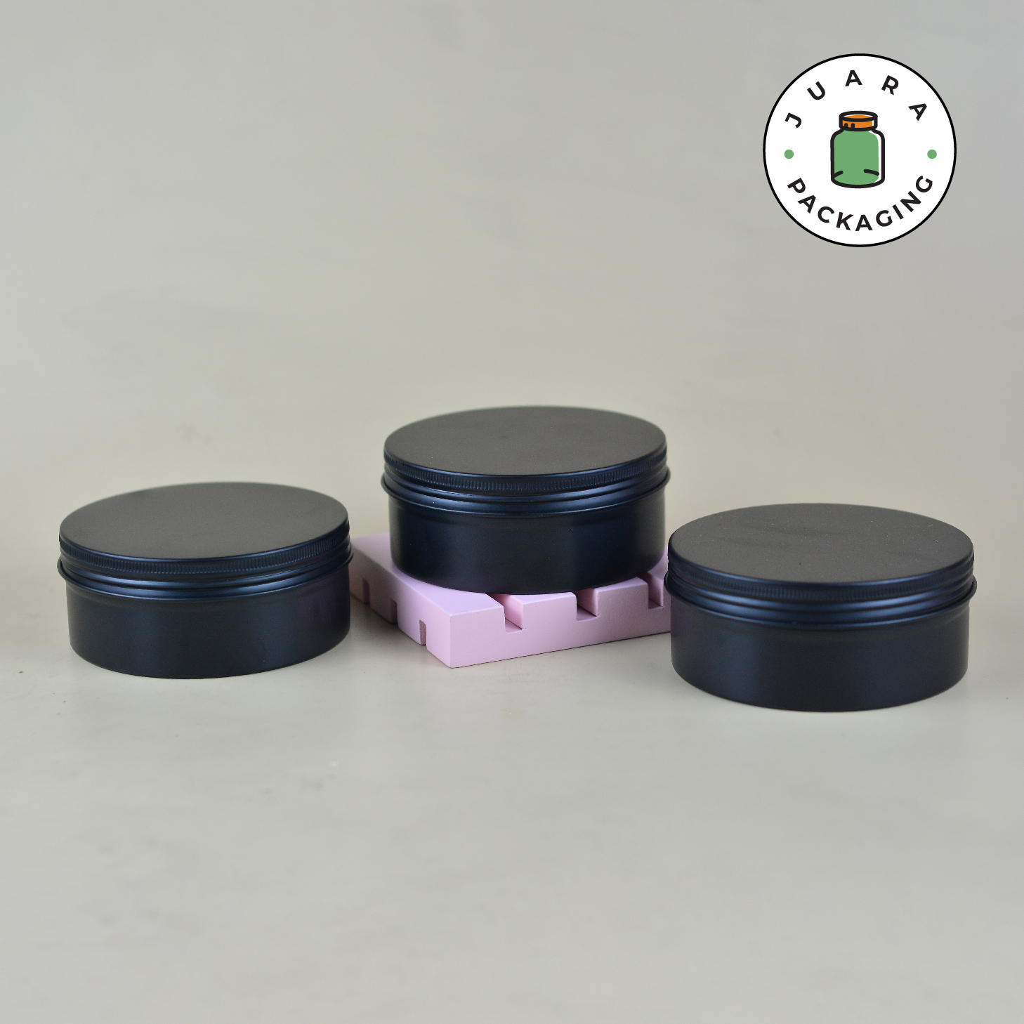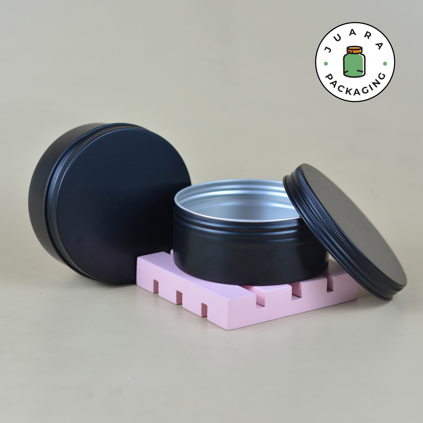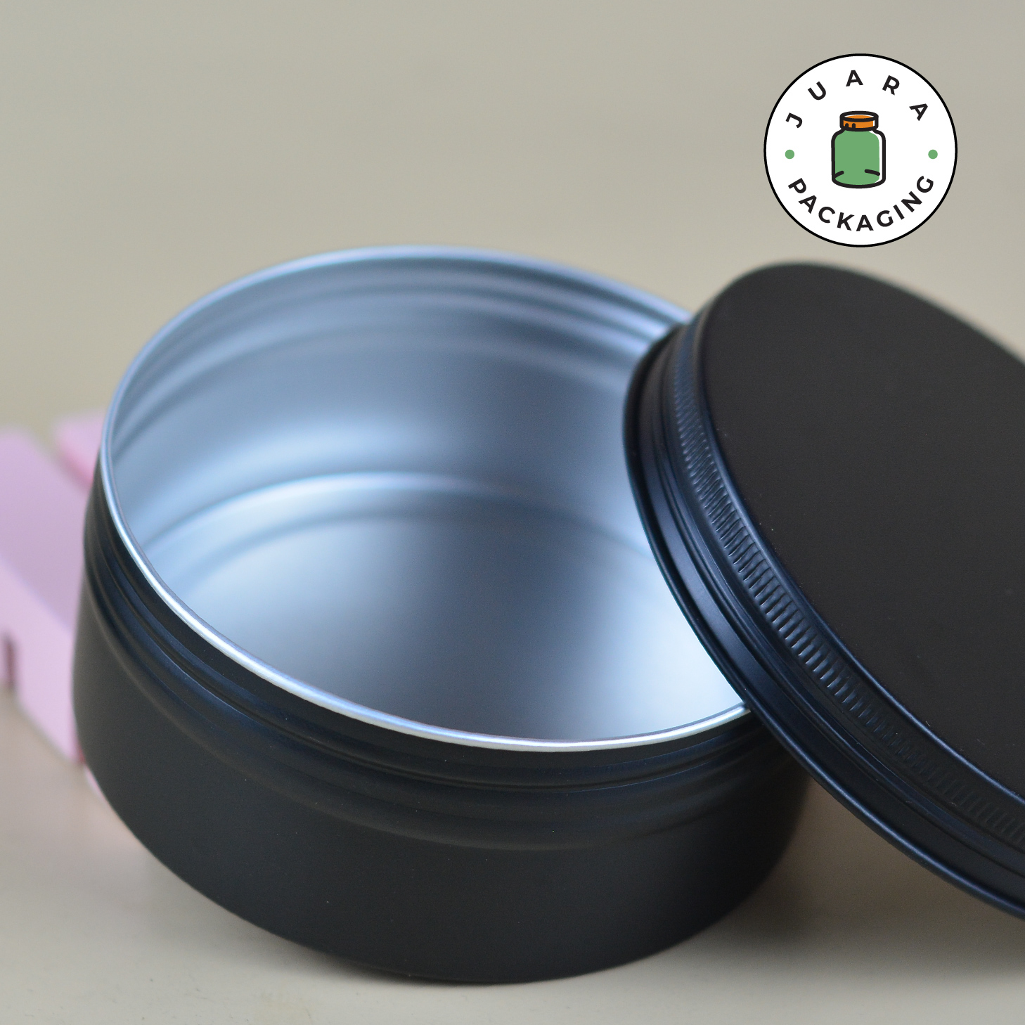 Jar Aluminium Hitam 250ml ini memiliki desain tin jar hitam doff yang elegan dengan tutup ulir praktis. Kemasan produk ini serbaguna, cocok untuk menyimpan berbagai bahan seperti salep, lilin, bumbu, atau produk DIY. Terbuat dari material berkualitas tinggi, wadah ini ringan, tahan lama, dan anti karat.