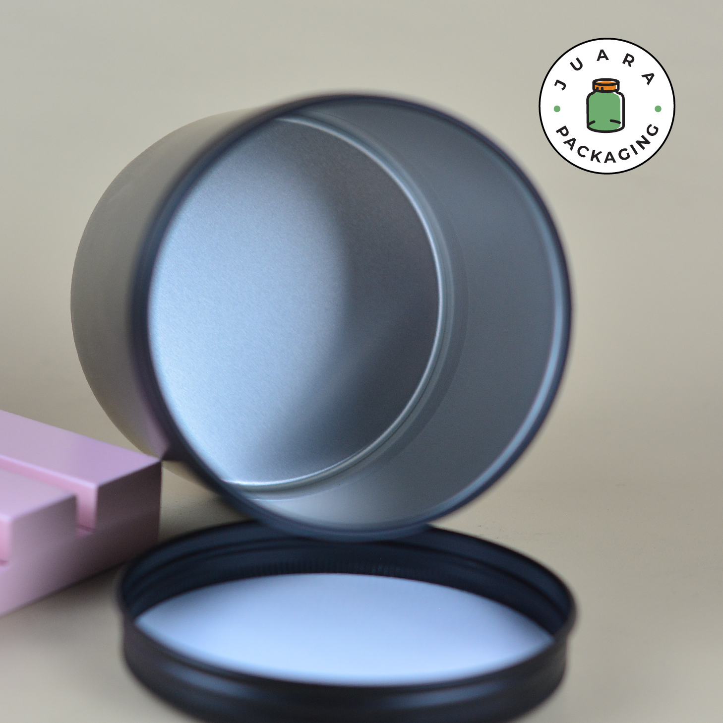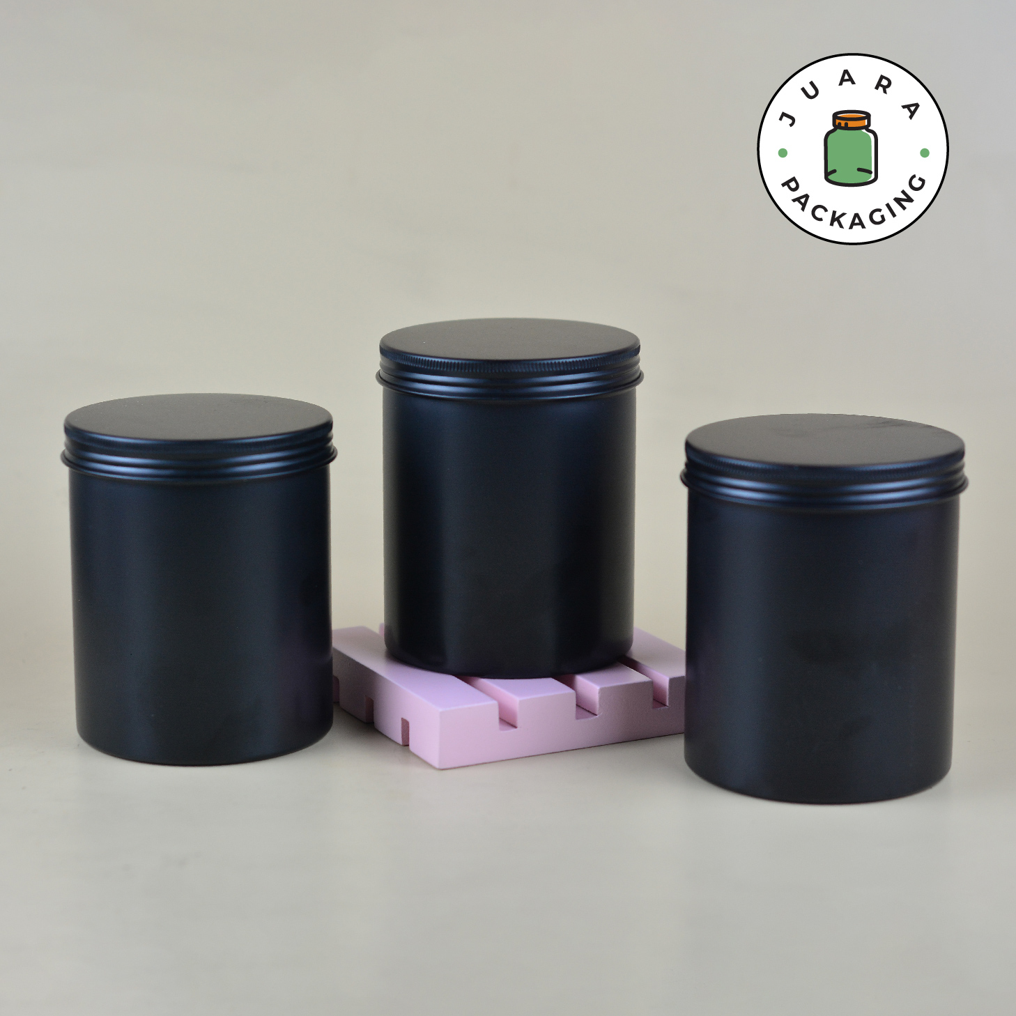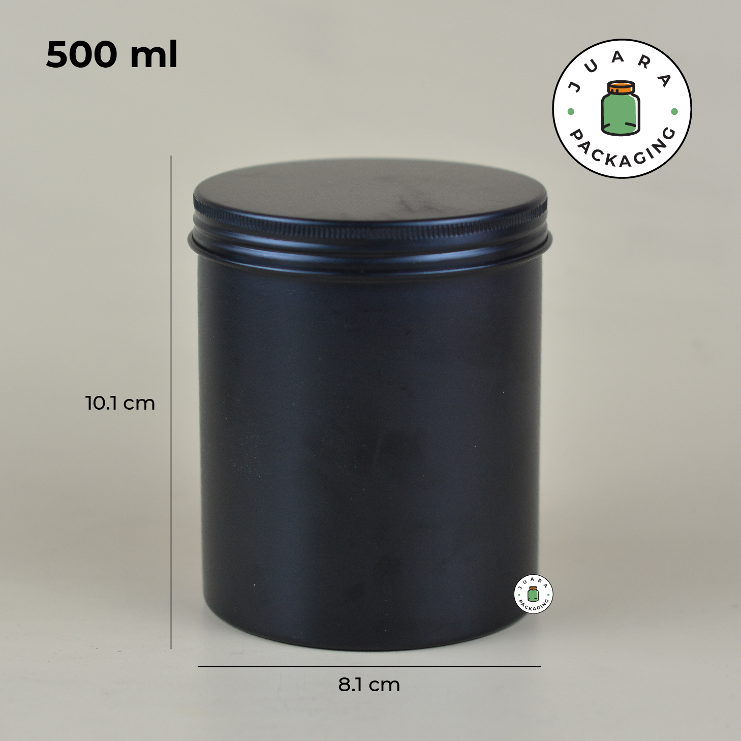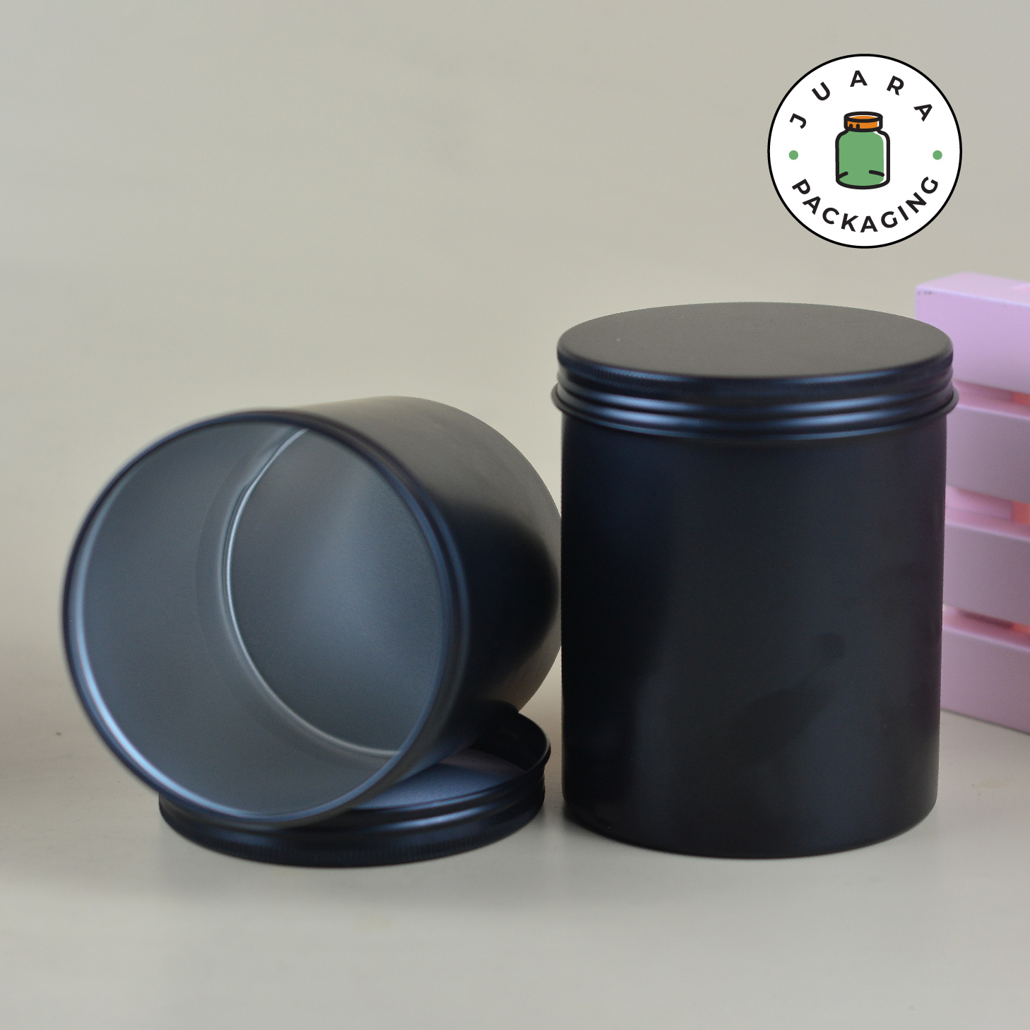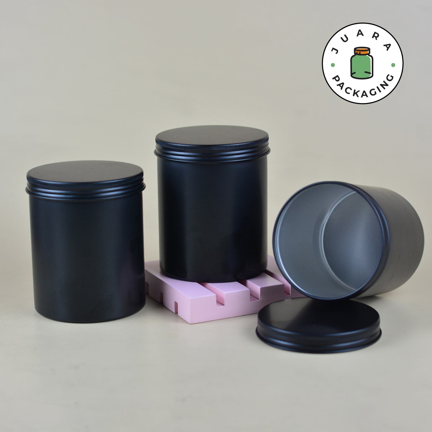 Jar Aluminium Hitam 500ml ini dirancang dengan tampilan tin jar hitam doff yang modern dan elegan, dilengkapi tutup ulir untuk kemudahan penggunaan. Kemasan produk ini serbaguna, cocok untuk menyimpan lilin, bumbu, salep, atau produk lainnya. Terbuat dari material berkualitas, tahan lama, dan anti karat.