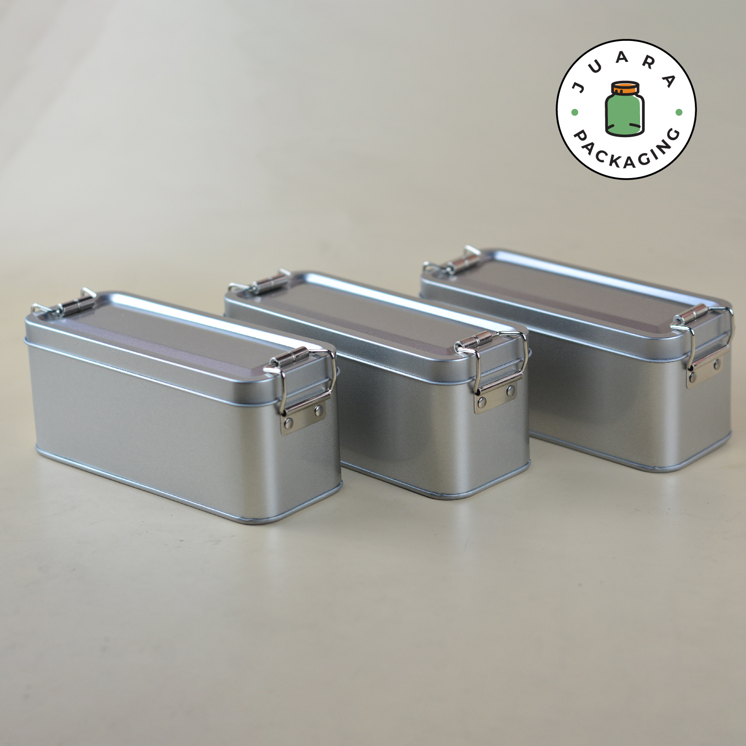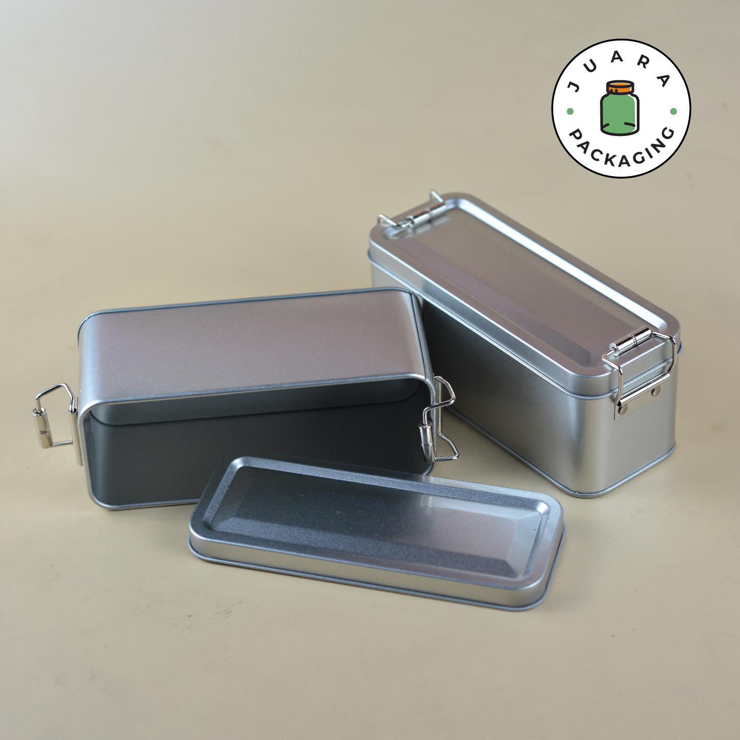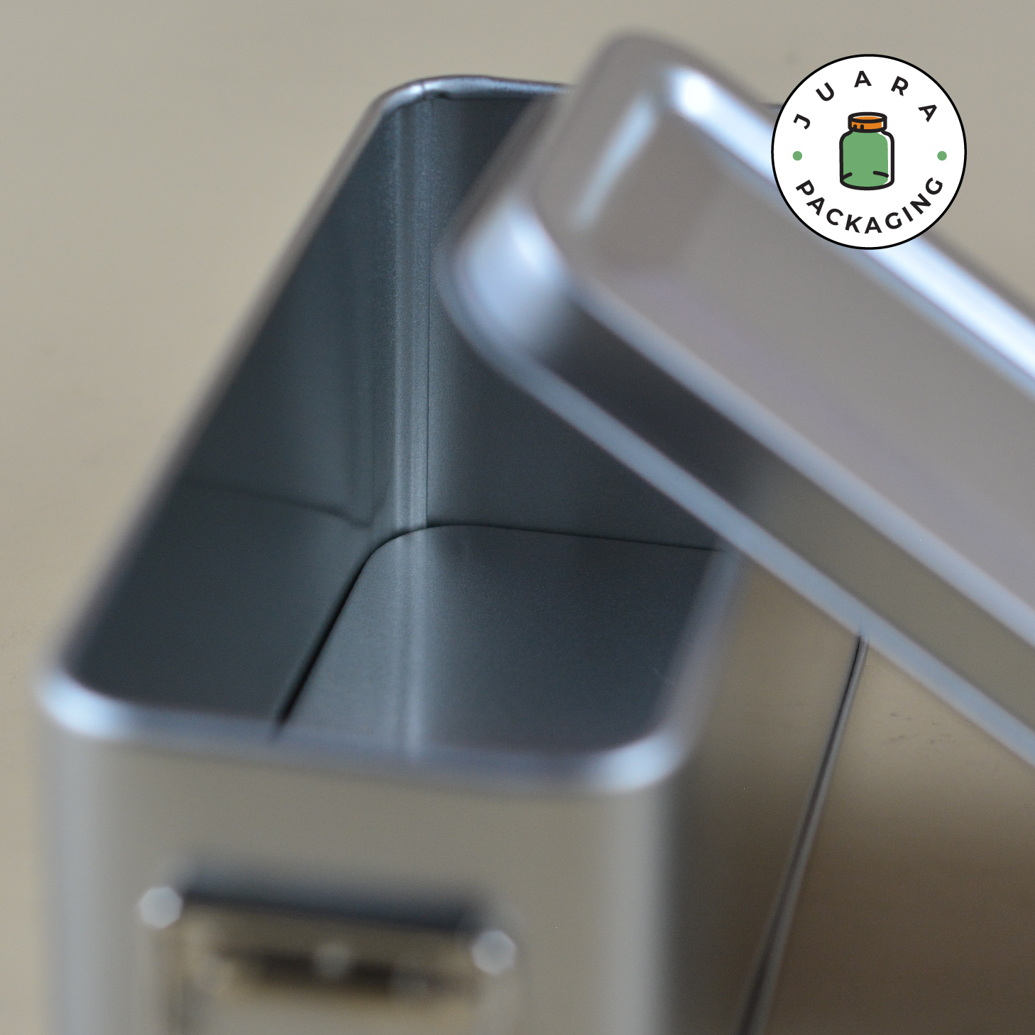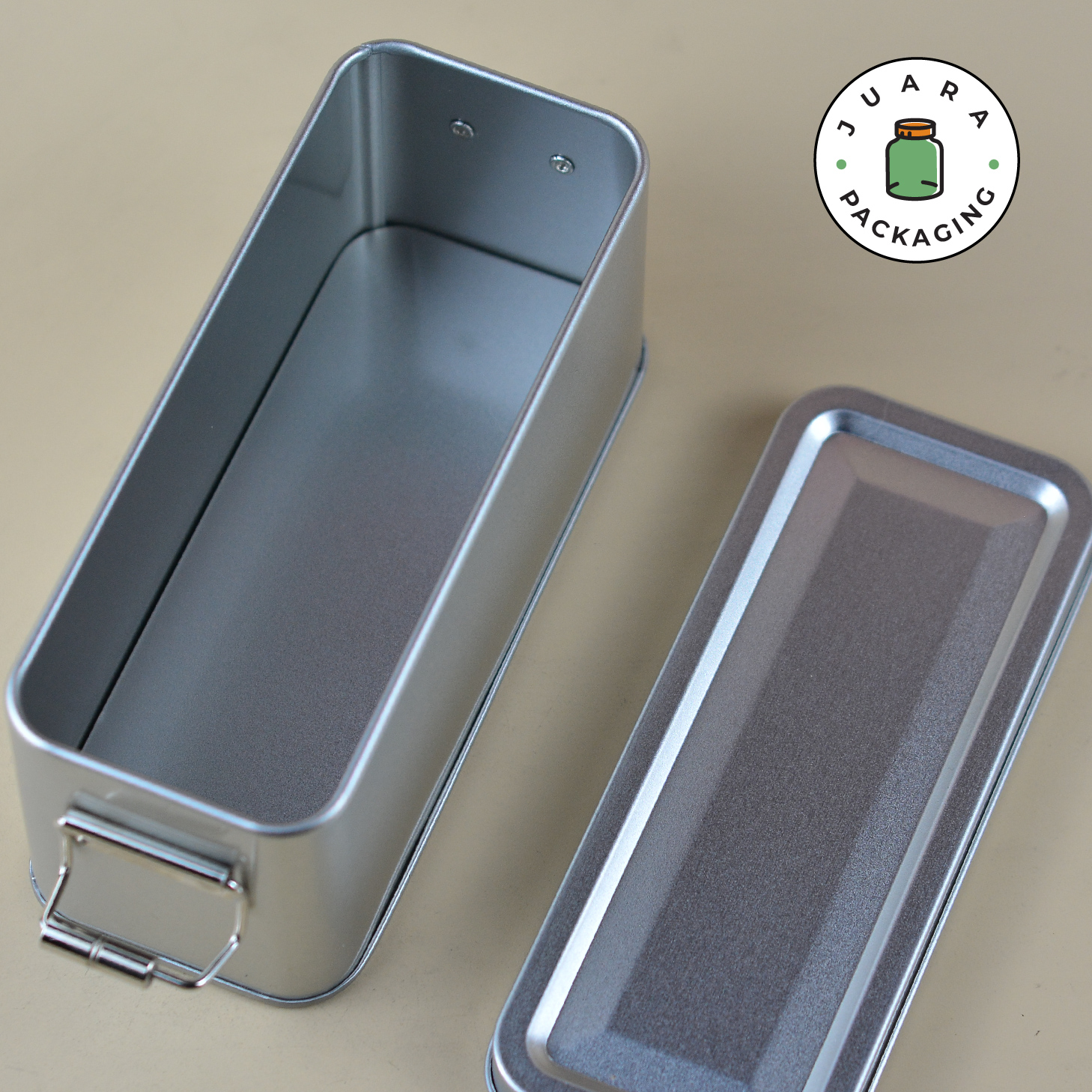 Wadah Aluminium kotak persegi panjang ini dirancang untuk menyimpan teh, kopi, bumbu, bubuk, atau lilin. Dilengkapi dengan seal anti karat, tin jar ini menjaga isi tetap segar dan terlindungi. Kemasan produk yang kokoh dan elegan ini juga cocok untuk hampers, terbuat dari stainless steel berkualitas tinggi.