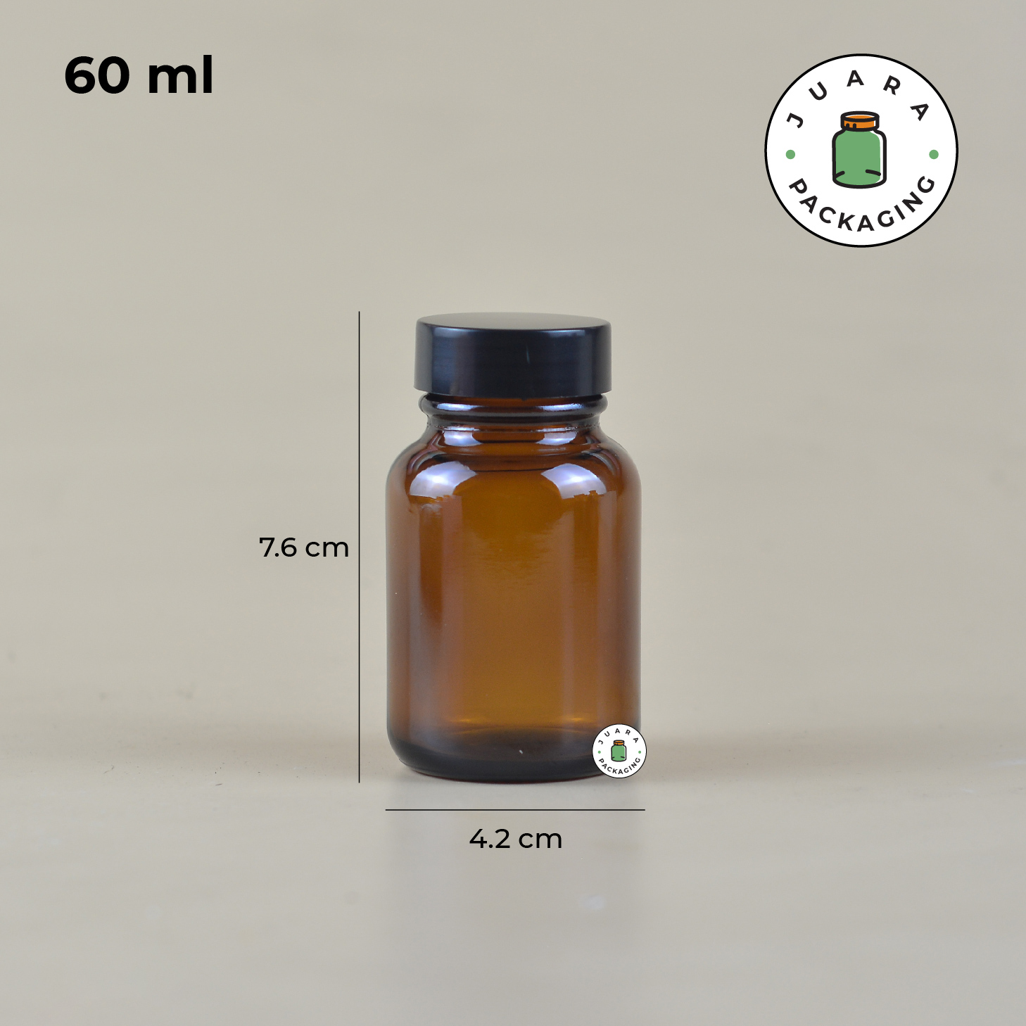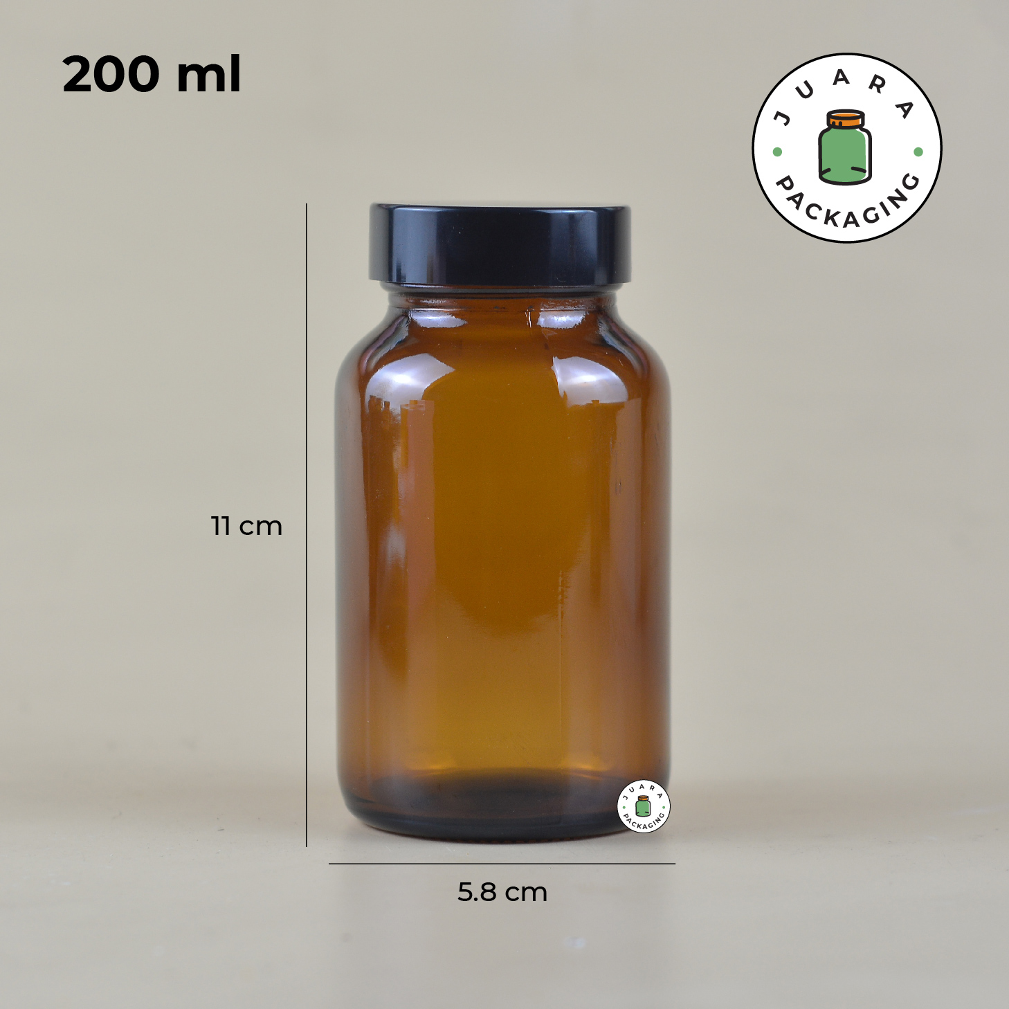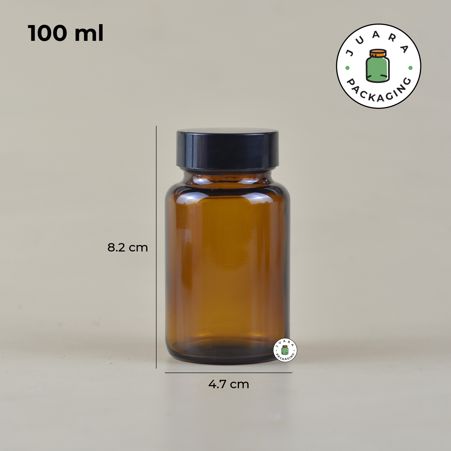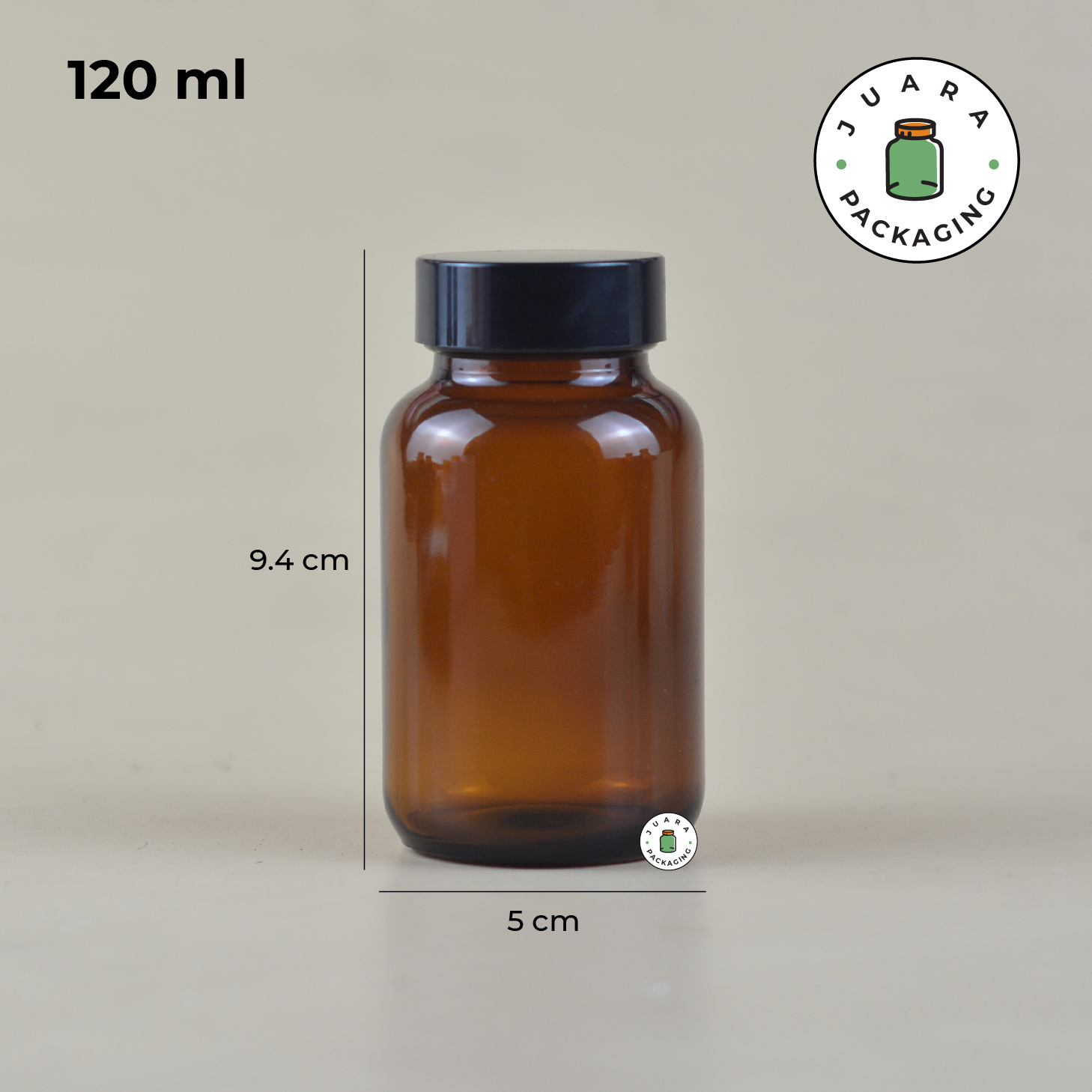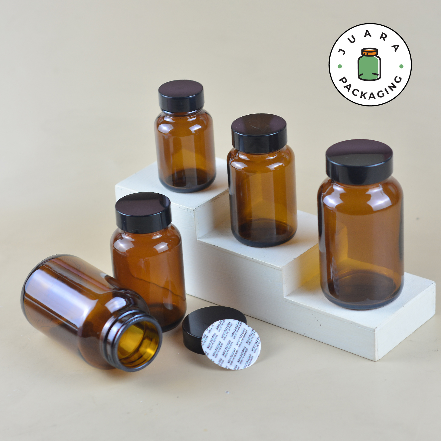 Jar Kaca Amber + Inner Seal – 60ml 100ml 120ml 200ml