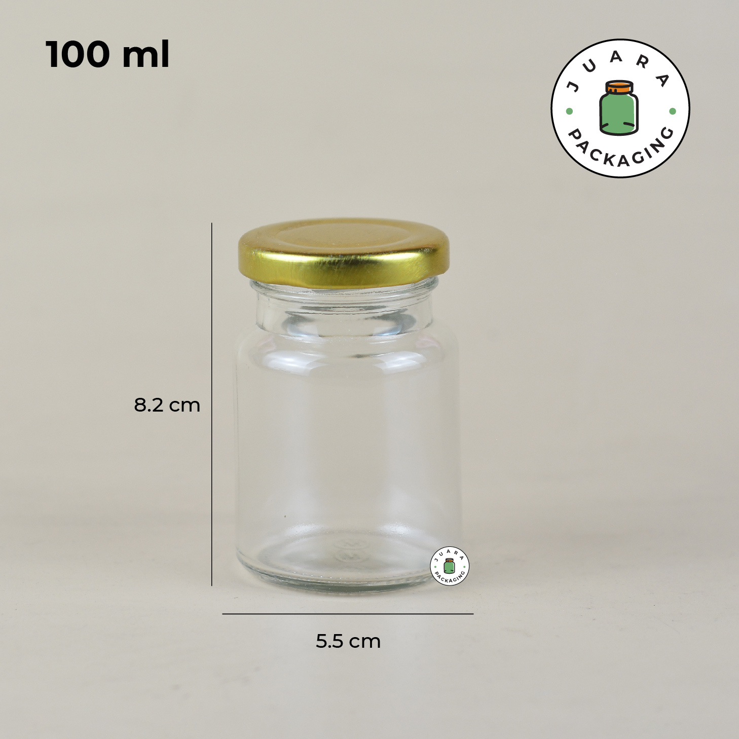 Jar Kaca Bulat Tutup Gold – 100 ml