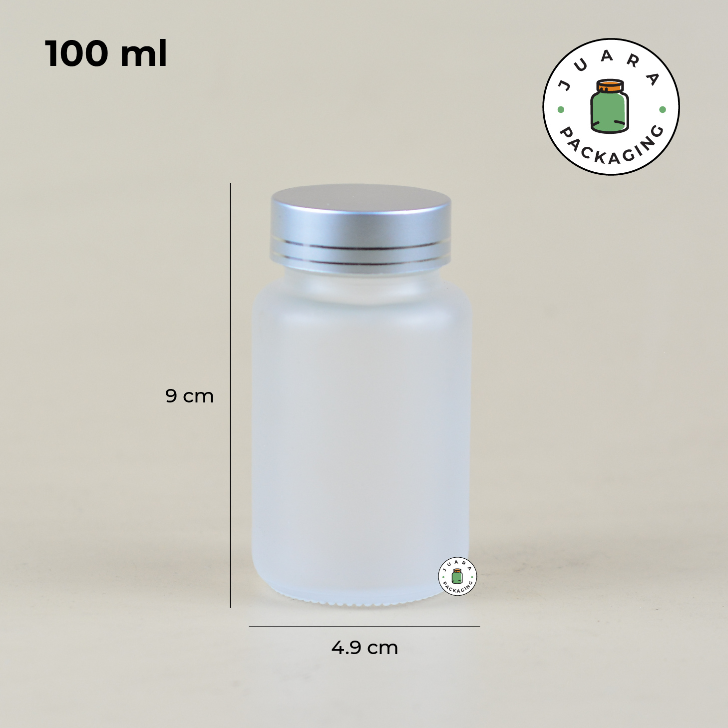 Jar Kaca 100ml dengan desain frosted buram dan tutup aluminium warna gold atau silver ini memberikan tampilan elegan dan mewah. Kemasan produk ini cocok untuk menyimpan berbagai bahan seperti krim, salep, atau kosmetik lainnya. Terbuat dari kaca berkualitas tinggi, jar ini menjaga isi tetap segar dan aman.