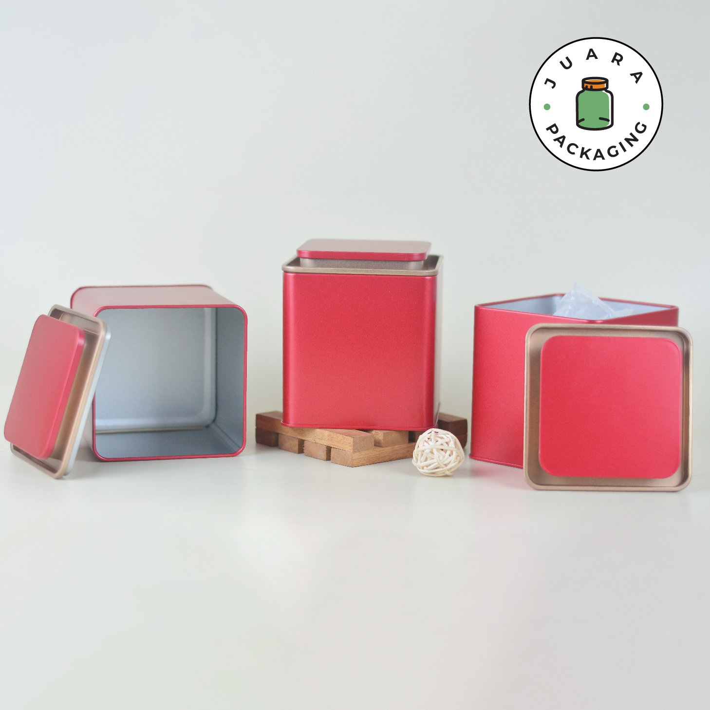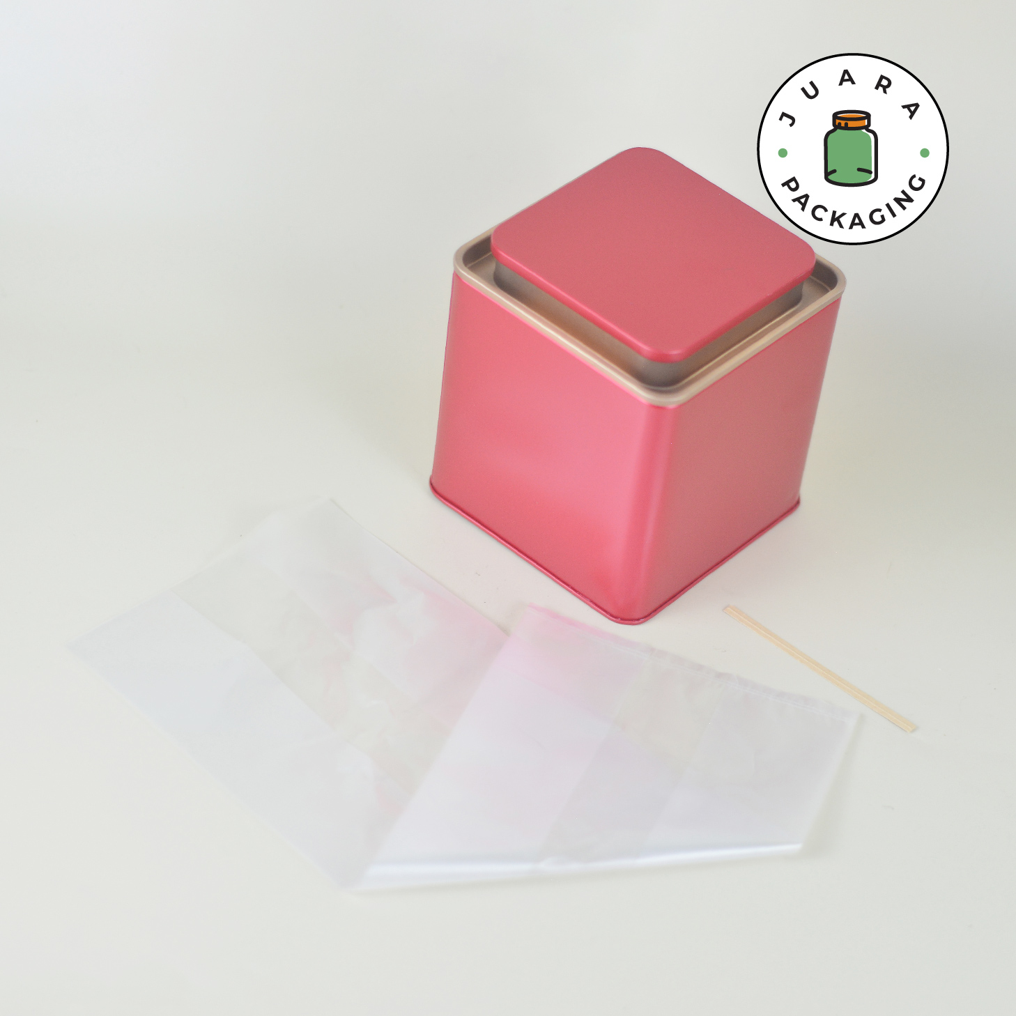 Jar Tin Can Kotak Merah + Plastik