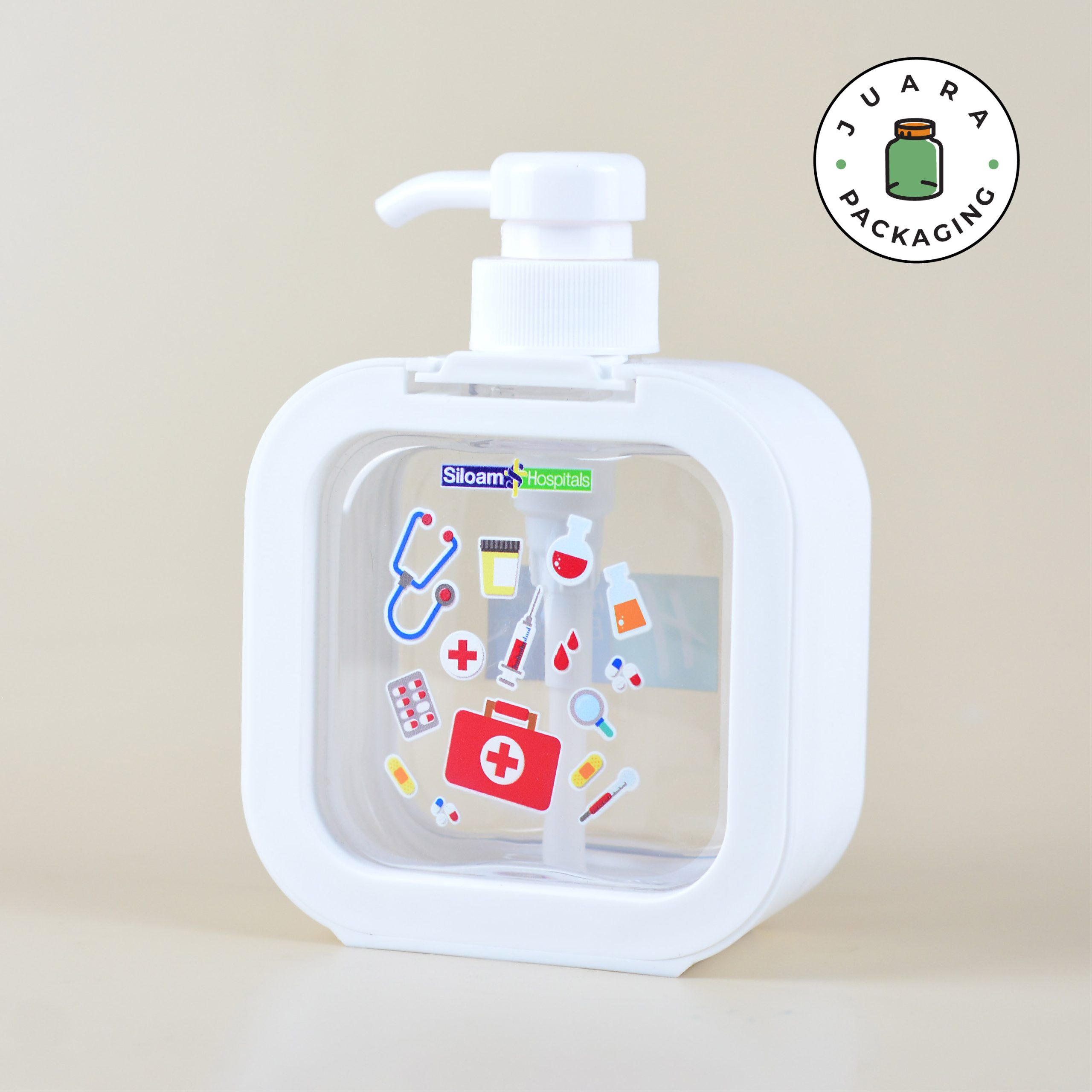 Jasa Print UV Custom Desain Suka-Suka + Botol Pump Korea 300ml – Tinta UV Tahan Air untuk Botol Sabun Shampoo Kotak Persegi Minimalis Soap Dispenser 300 ml