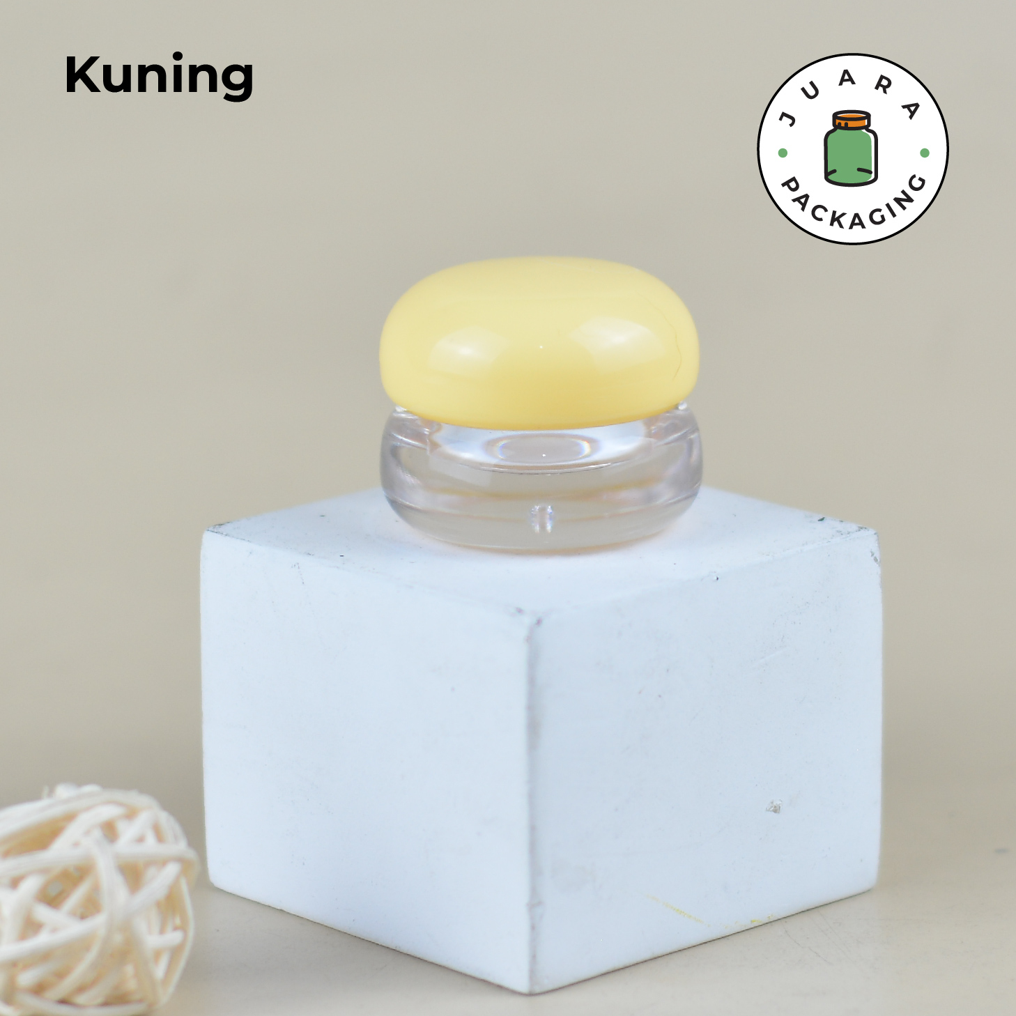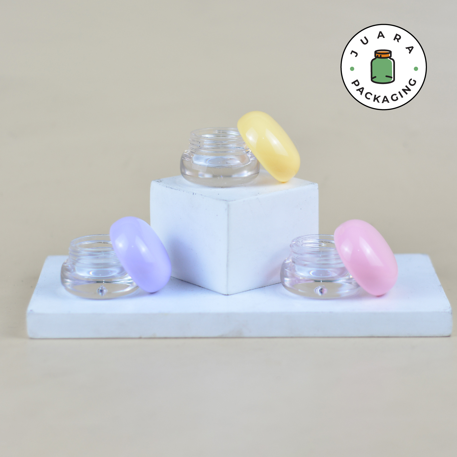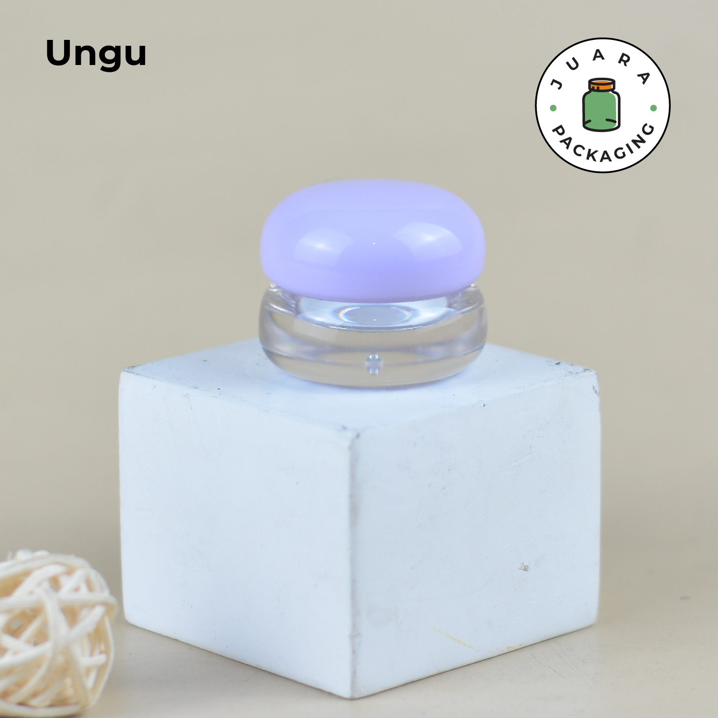 Pot Cream Mini 8gr berbahan acrylic dengan bentuk bulat dan tutup warna pink, ungu, serta kuning ini cocok untuk skincare isi ulang. Kemasan produk ini praktis dan menarik, ideal untuk menyimpan krim, balm, atau produk kecantikan lainnya. Desain mungilnya memudahkan penggunaan sehari-hari atau traveling.