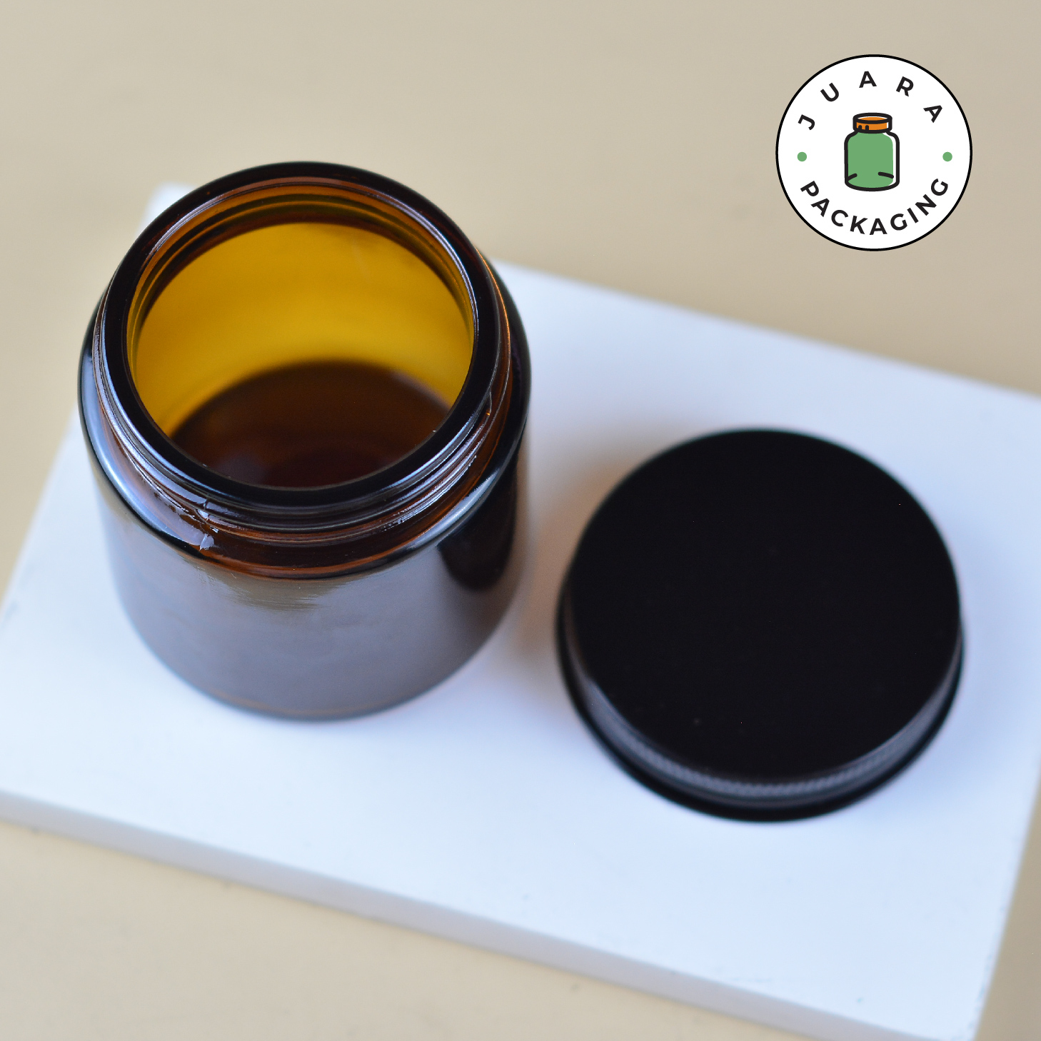 Pot Cream Kaca Amber Tutup Hitam – 100 ml