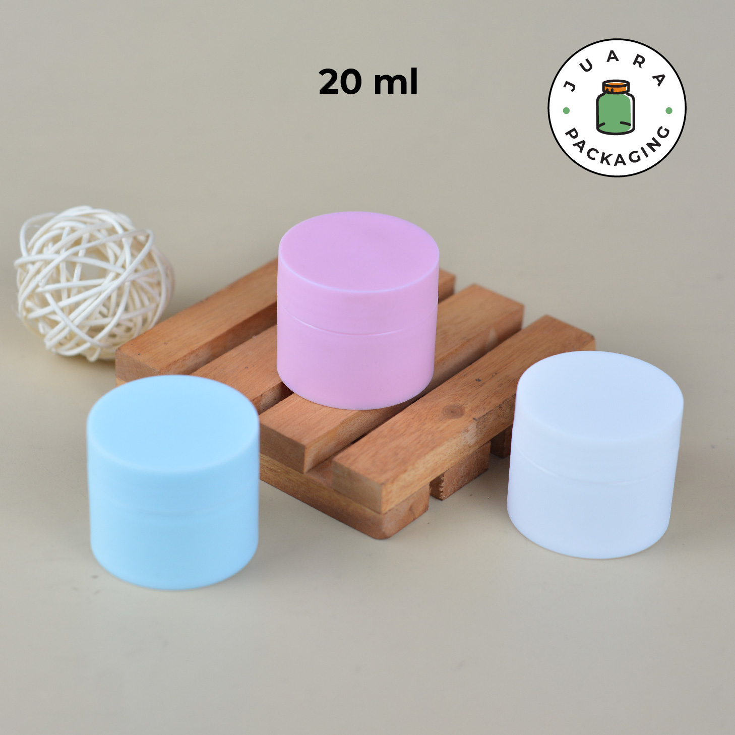 Pot Cream Plastik 20ml Warna Pastel Putih Pink Biru dengan Inner Lid – Wadah Kosmetik Travel Size untuk Skincare, Cream, Lipbalm, Body Butter, Kemasan Isi Ulang 20 ml