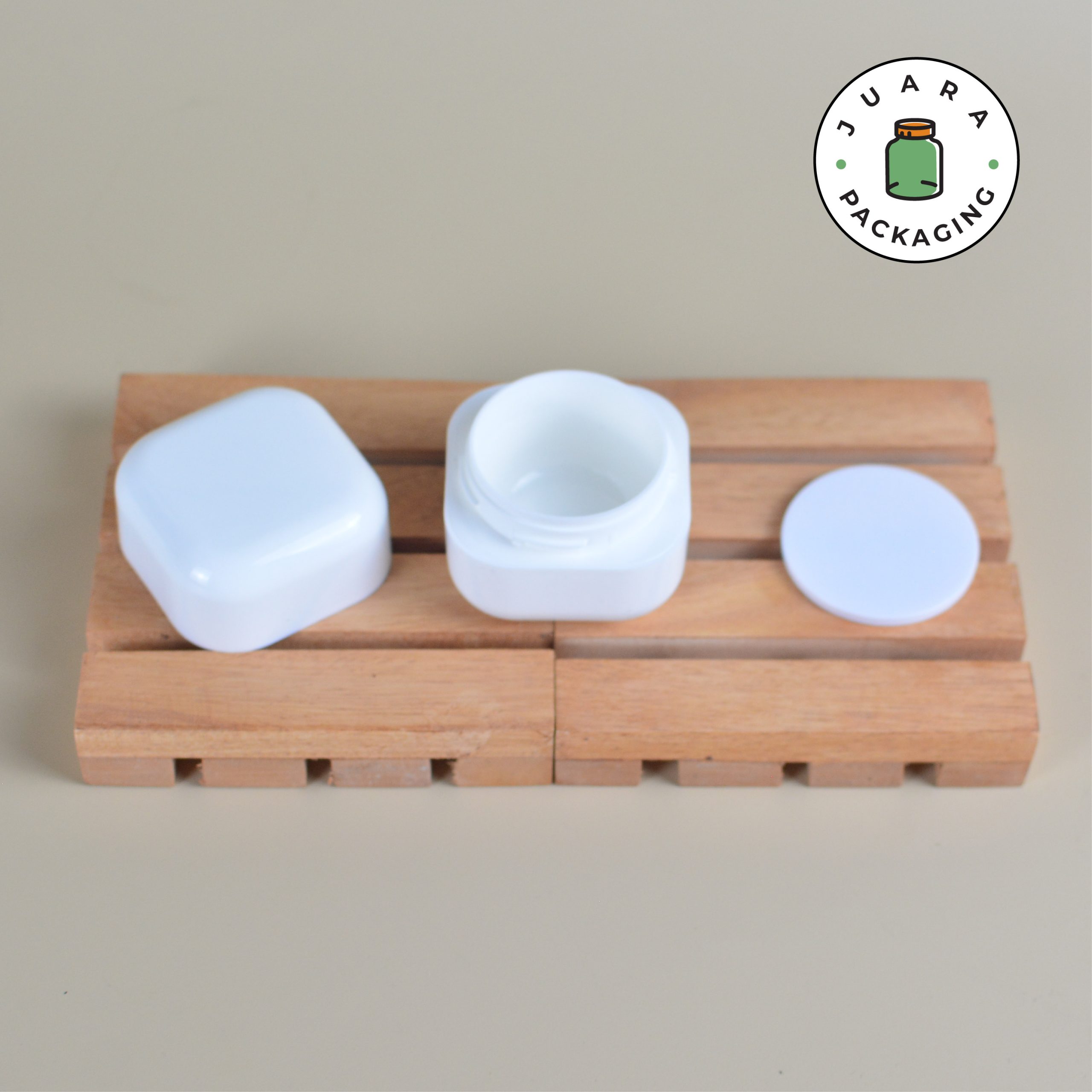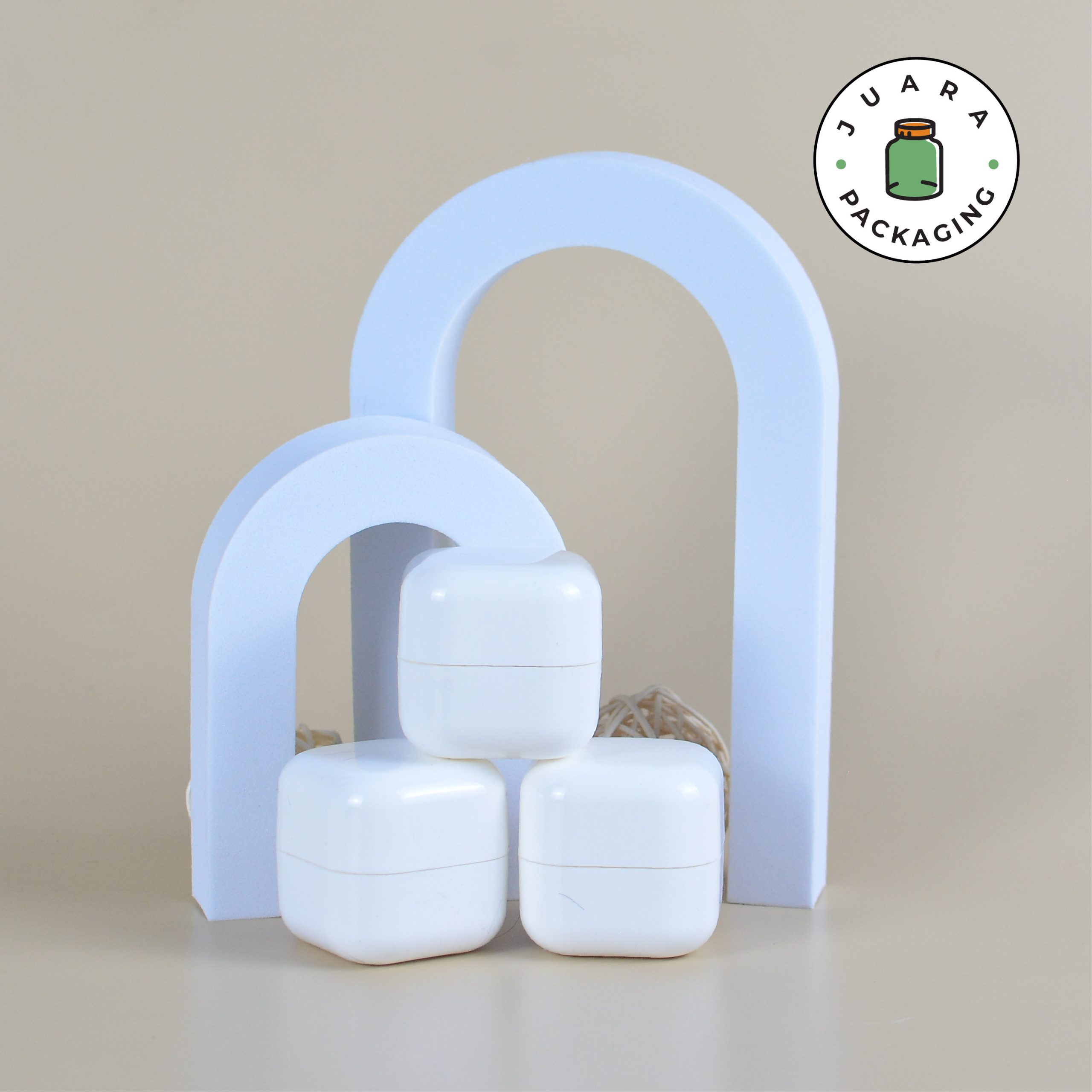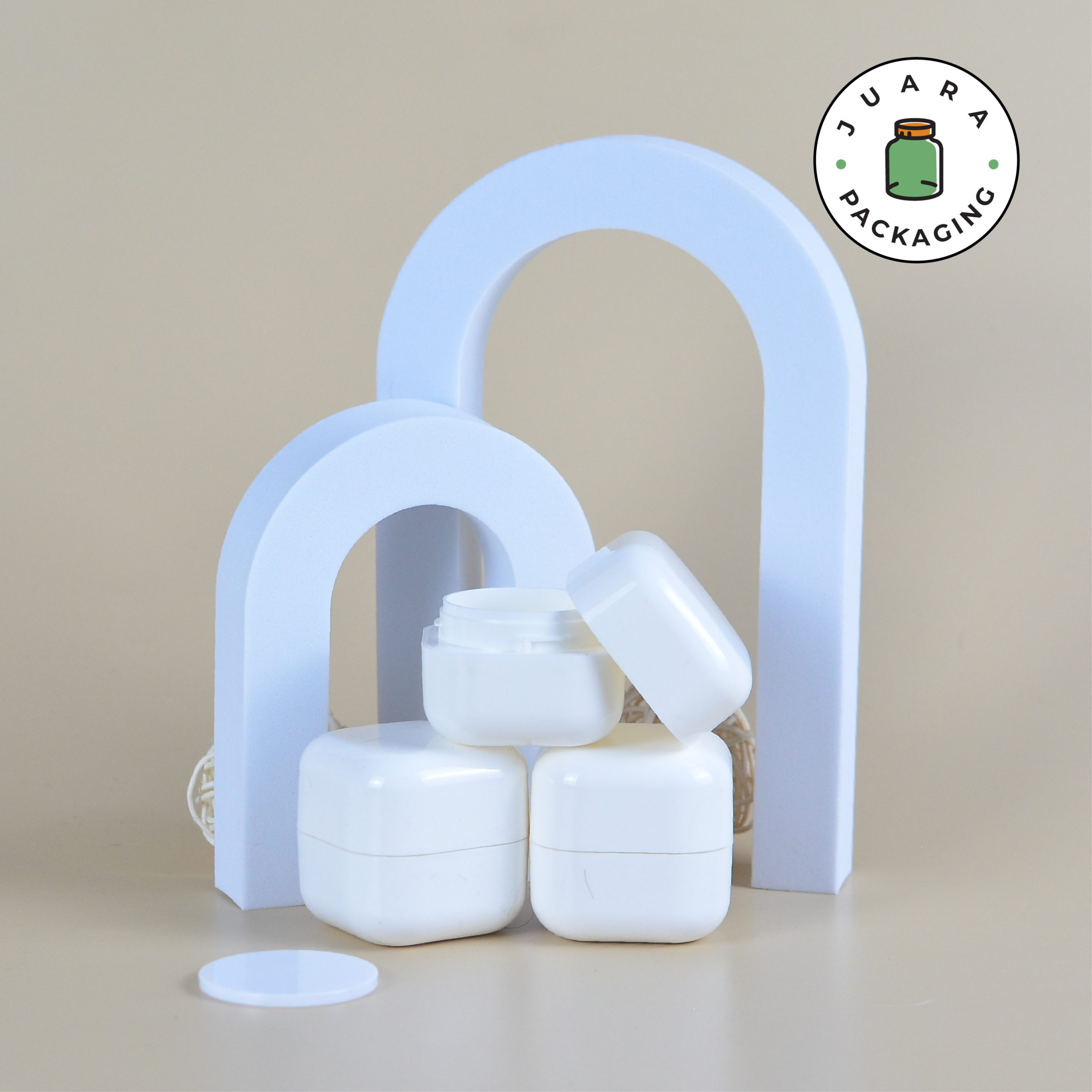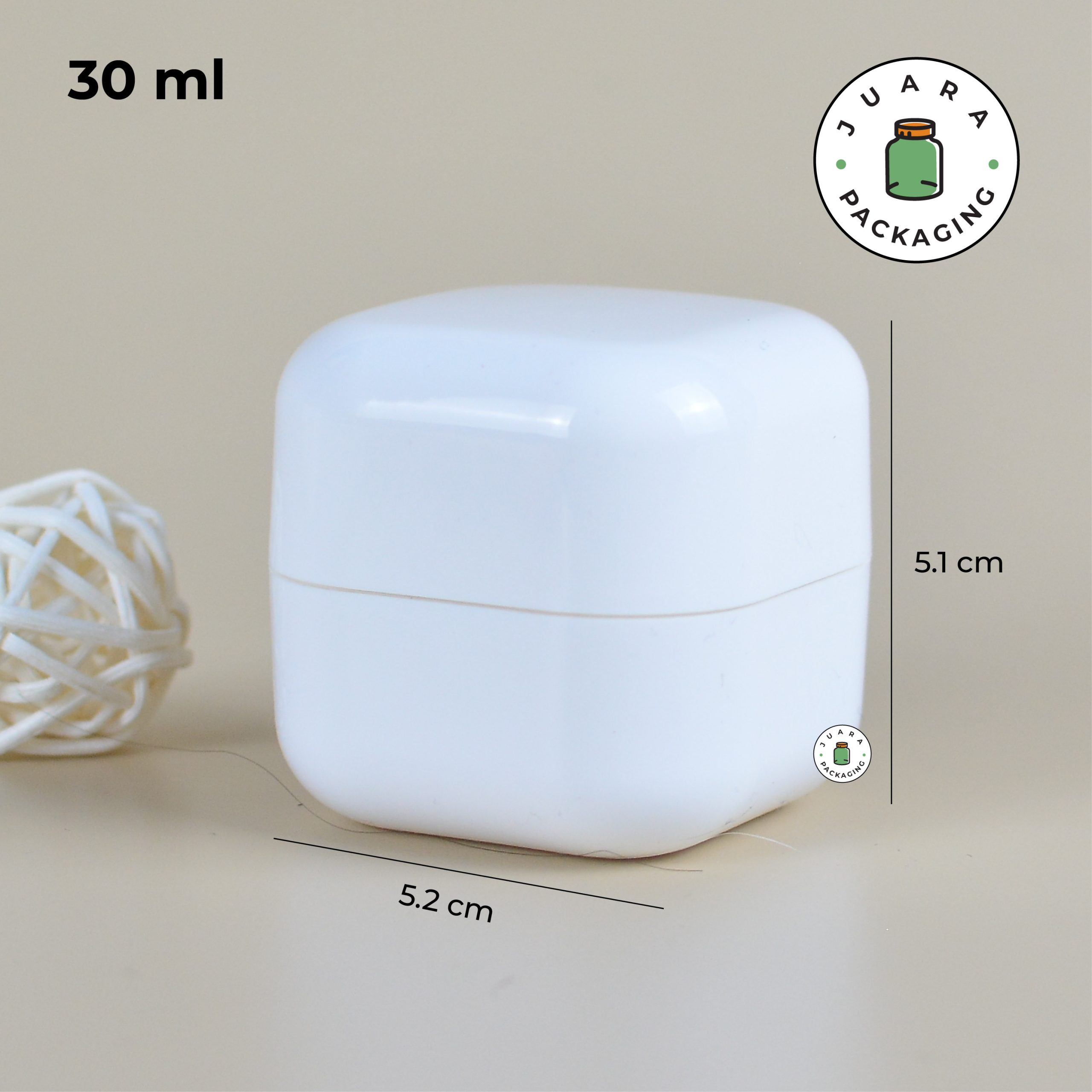 Pot cream plastik berukuran 30ml atau 30gr dengan desain kotak yang kompak dan menarik. Tersedia dalam warna putih yang cerah. Pot cream ini sangat cocok untuk produk perawatan kulit atau kosmetik. Dengan kemasan produk yang praktis dan menarik, memudahkan penggunaan sehari-hari.
