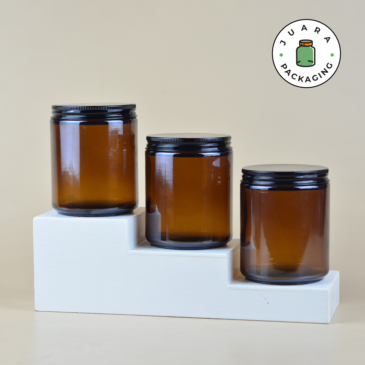 Wadah Kaca Amber 250ml – Jar Kaca Coklat Tebal dengan Tutup Aluminium Silver untuk Skincare, Salep, Masker, Krim, Herbal, Kosmetik Refill, Botol Kaca 250 ml