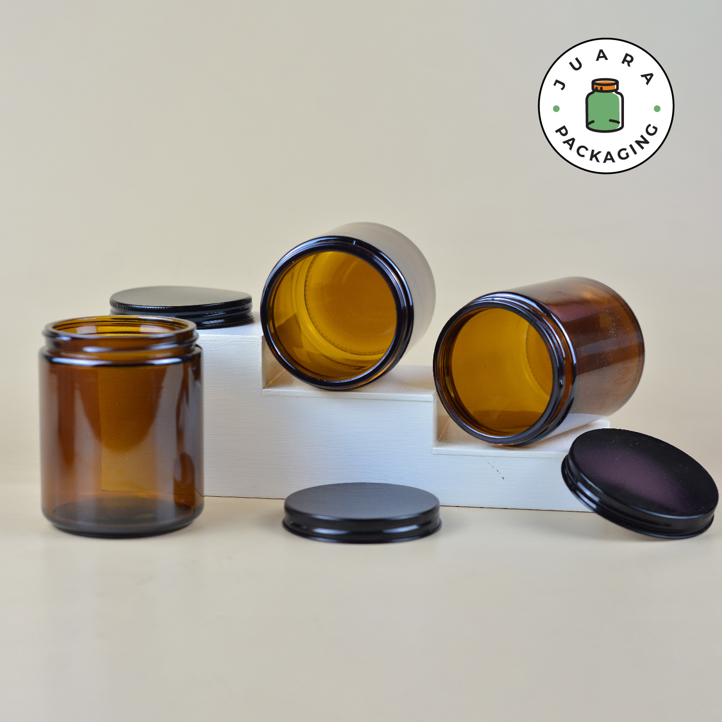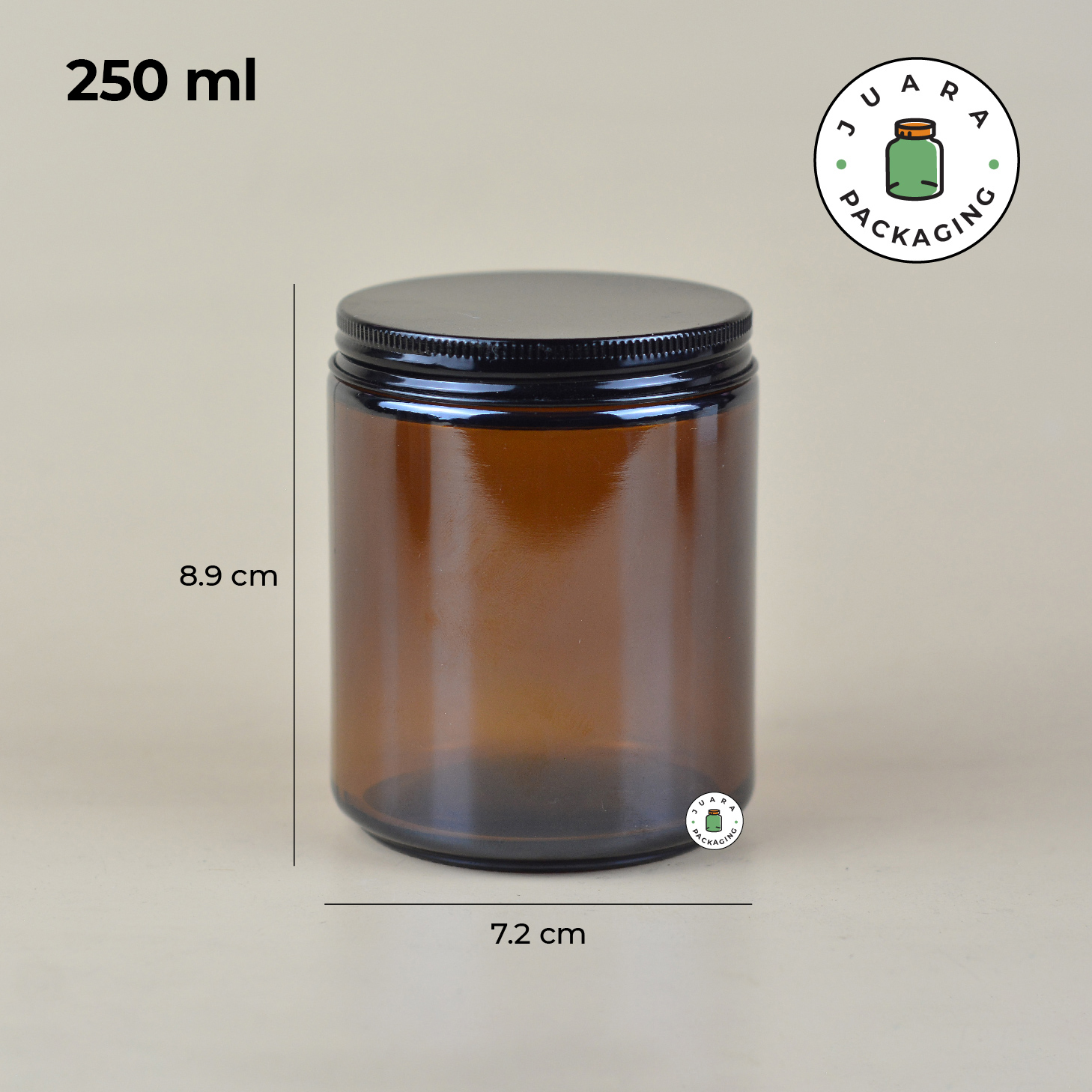 Wadah Kaca Amber 250ml – Jar Kaca Coklat Tebal dengan Tutup Aluminium Silver untuk Skincare, Salep, Masker, Krim, Herbal, Kosmetik Refill, Botol Kaca 250 ml