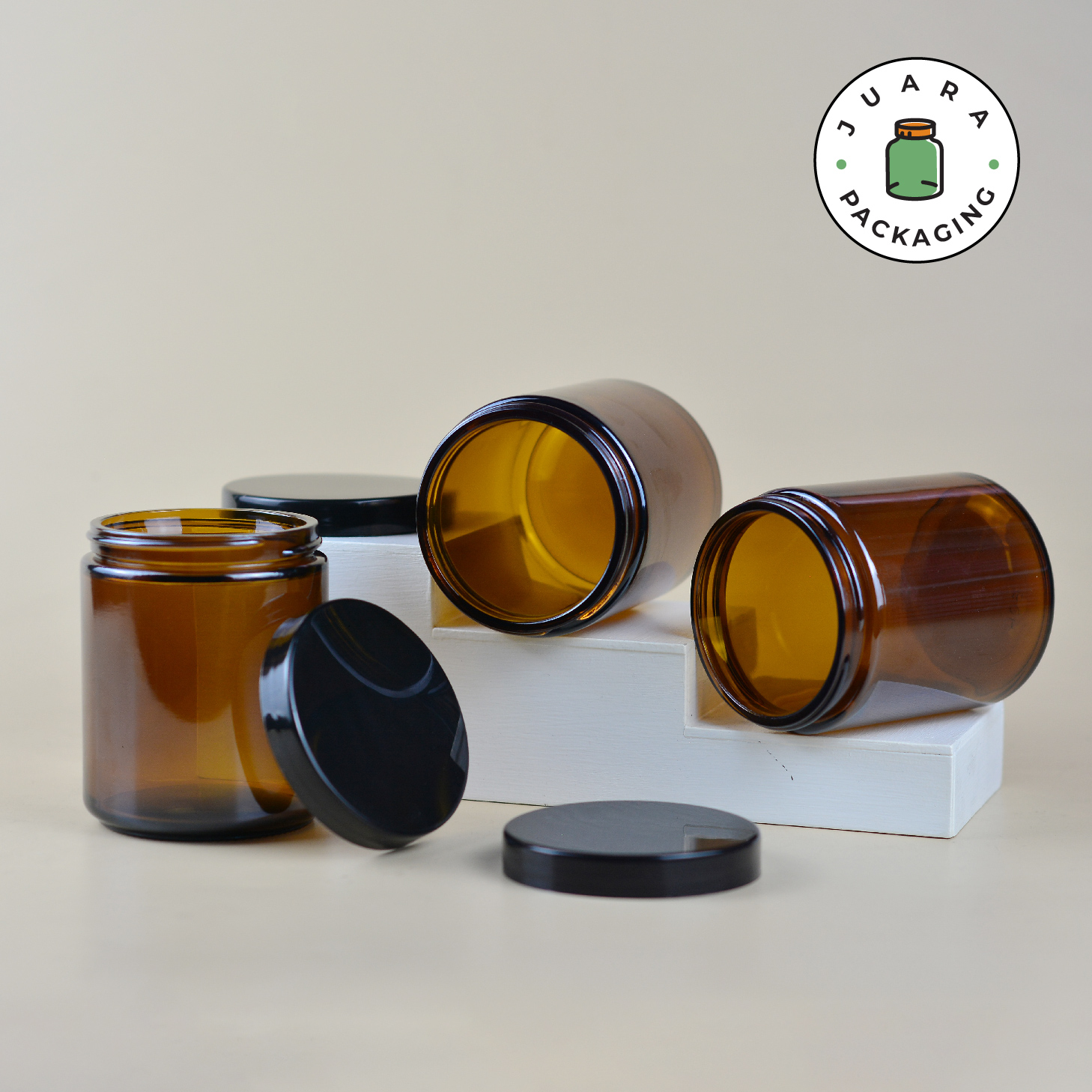 Wadah Kaca Amber 250ml Jar Kaca Tutup Plastik Hitam Amber Coklat Kaca Tebal Botol Kaca 250 ml