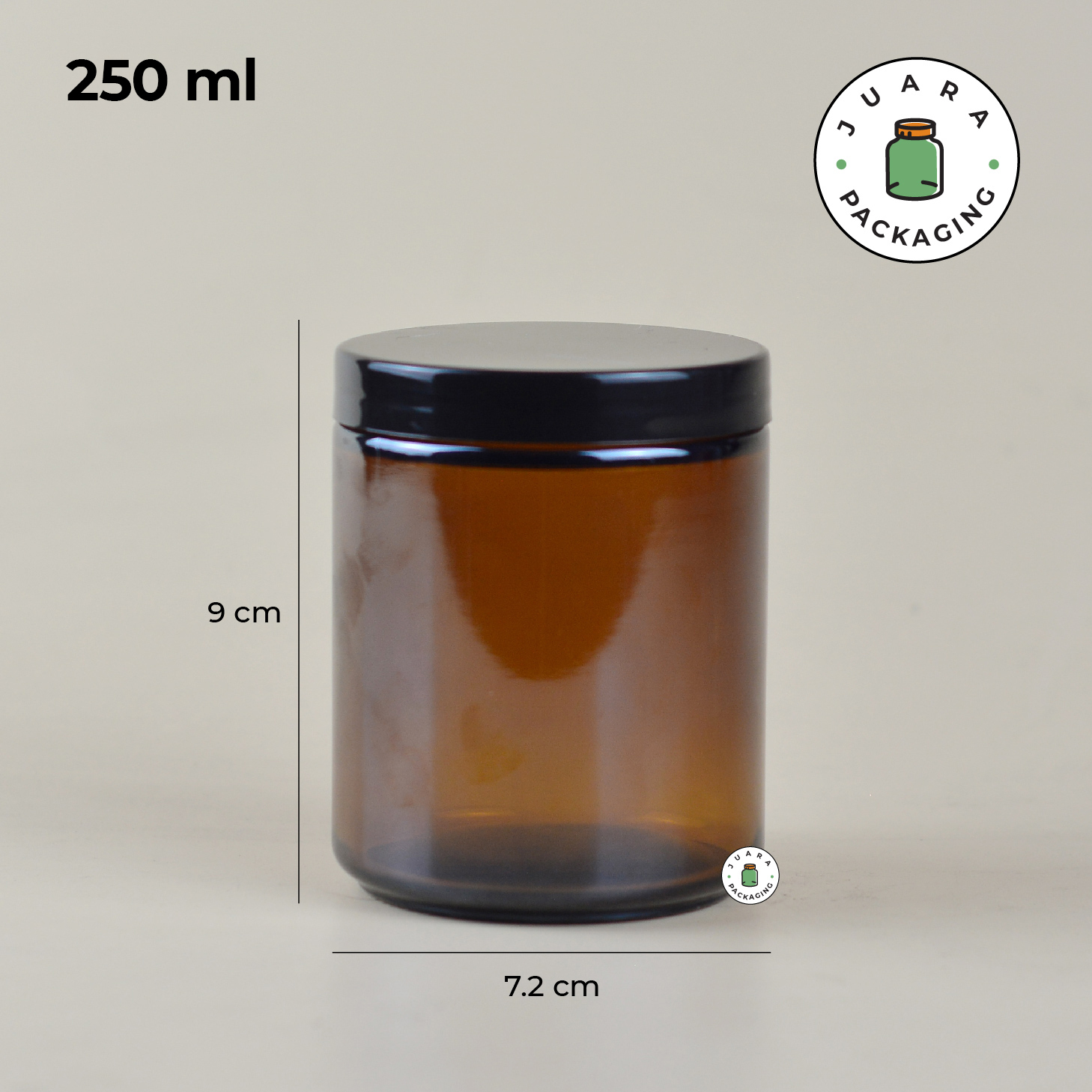 Pot Kaca Amber Tutup Plastik Hitam – 250 ml