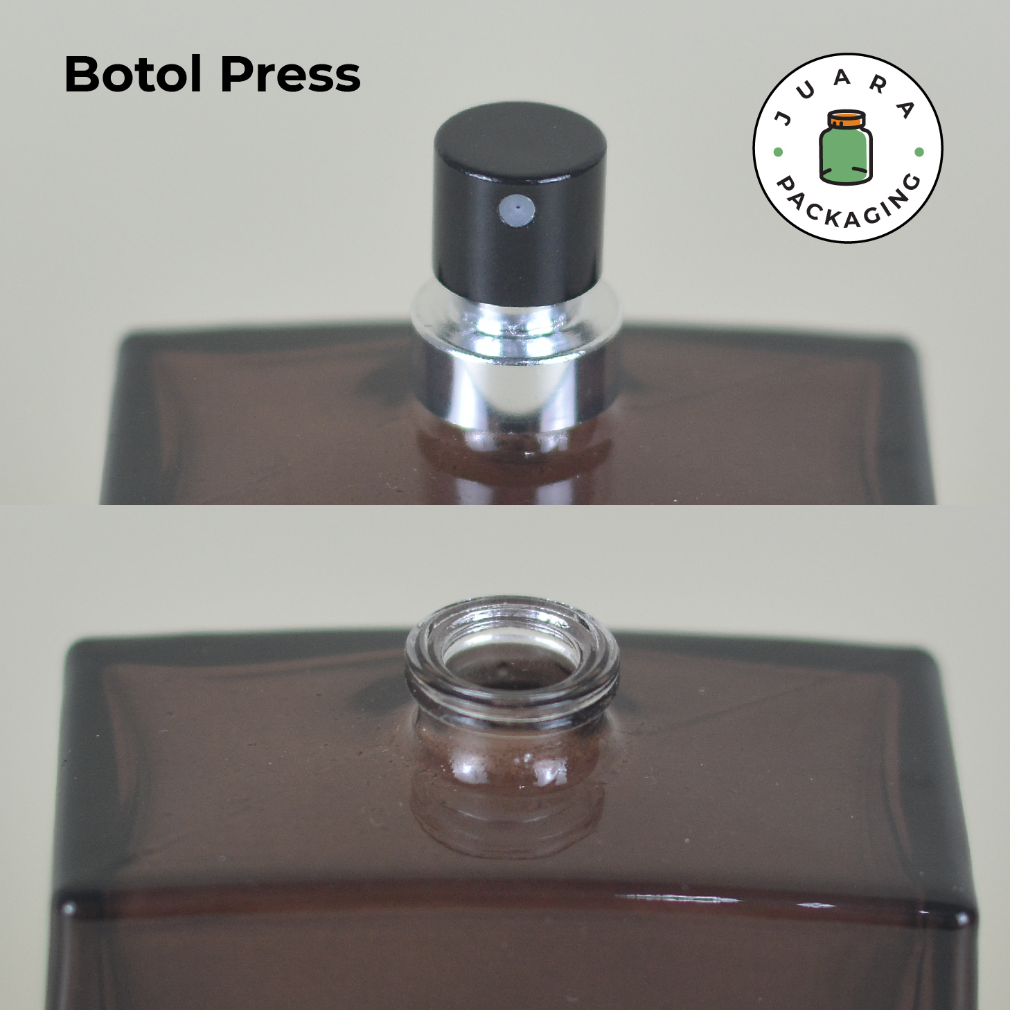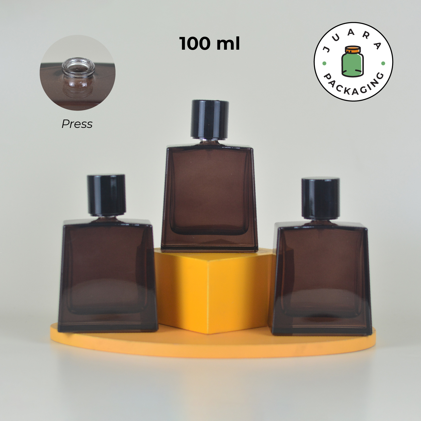 ![[PRESS] Botol Parfum Coklat - 100 ml - Image 2](https://www.juarapackaging.com/wp-content/uploads/2025/12/Botol-Parfum-Press-100-ml-Kaca-Coklat-Model-Kotak-Tutup-Hitam-Spray-Press-–-Wadah-Refill-Parfum-Mist-Minyak-Wangi-Isi-Ulang-Elegan-Tebal-Premium-2.jpg)