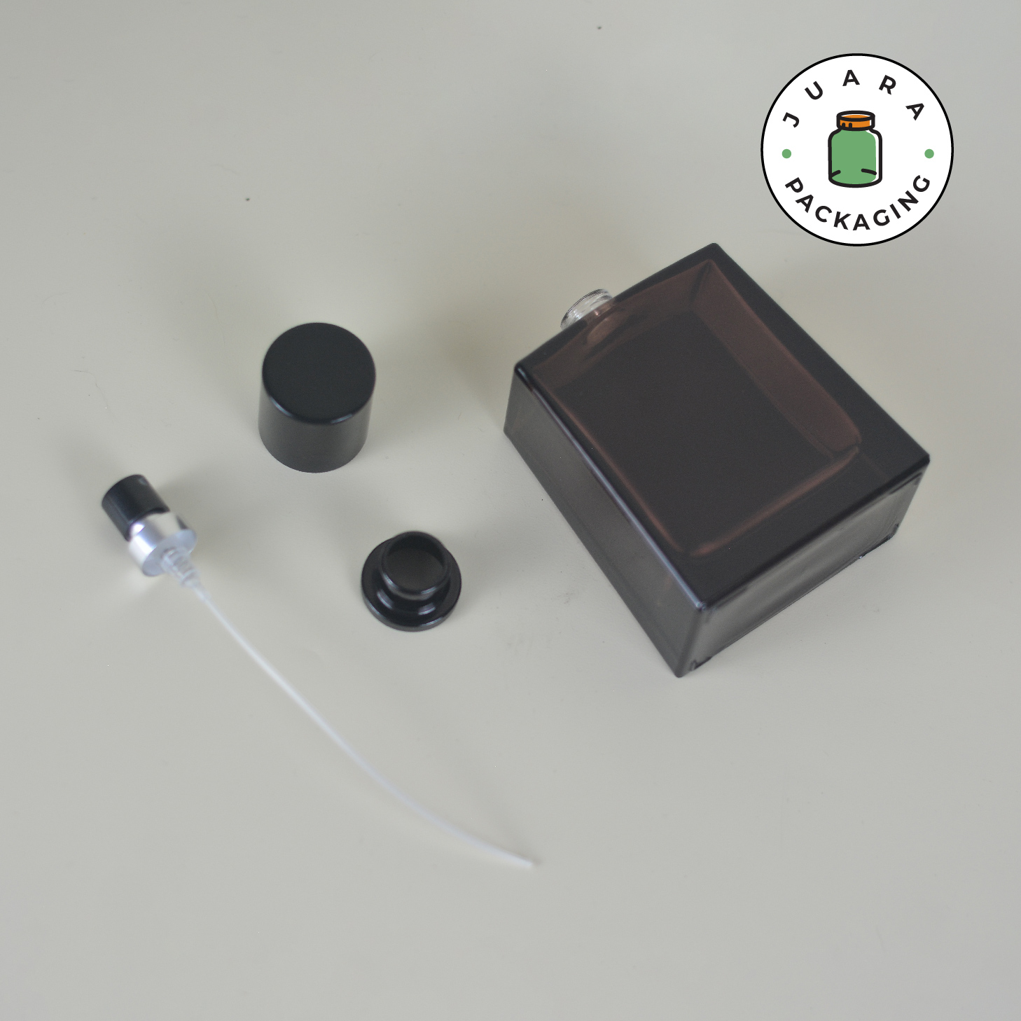 ![[PRESS] Botol Parfum Coklat - 100 ml - Image 4](https://www.juarapackaging.com/wp-content/uploads/2025/12/Botol-Parfum-Press-100-ml-Kaca-Coklat-Model-Kotak-Tutup-Hitam-Spray-Press-–-Wadah-Refill-Parfum-Mist-Minyak-Wangi-Isi-Ulang-Elegan-Tebal-Premium-4.jpg)