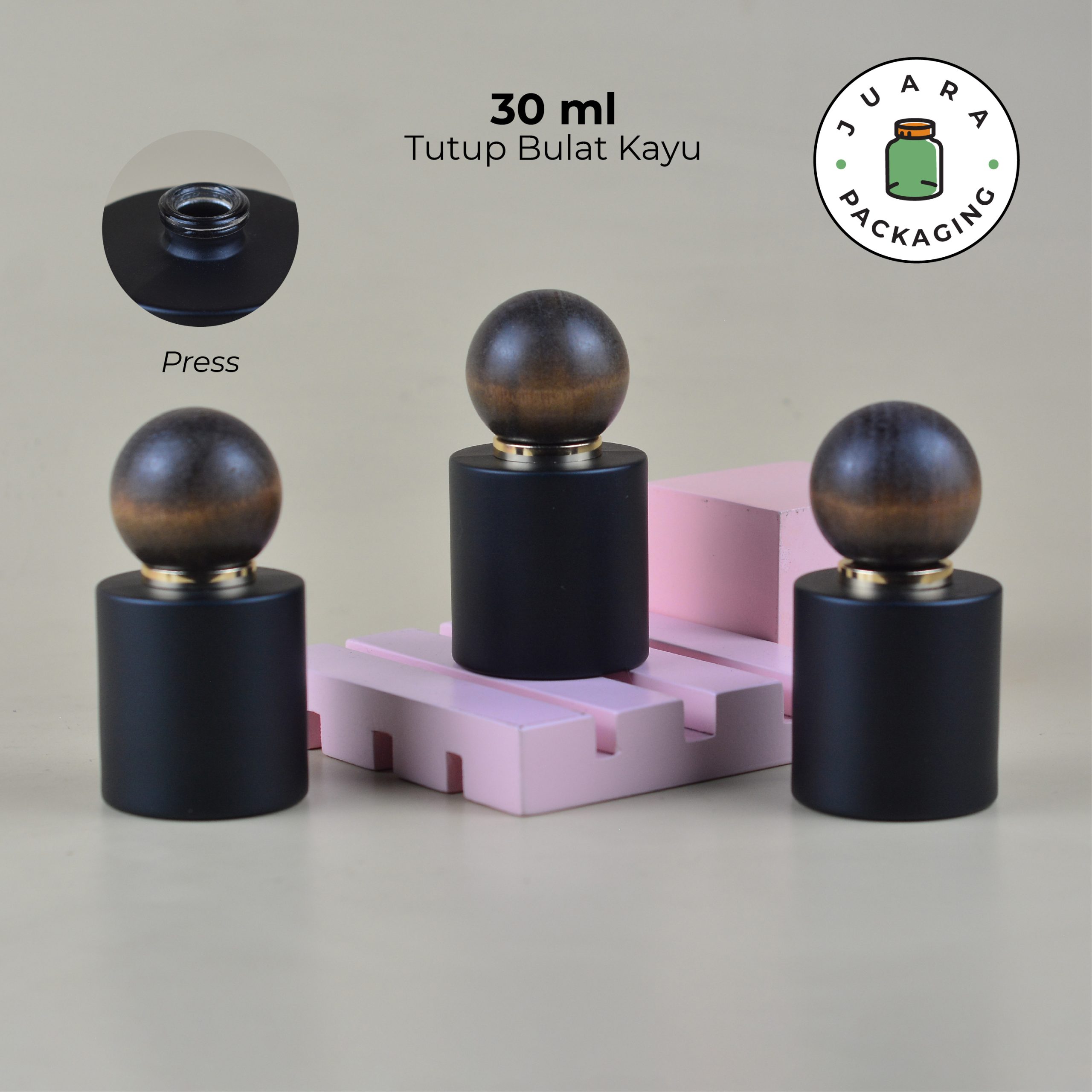 ![[PRESS] Botol Parfum Tutup Bulat Coklat - 30 ml - Image 4](https://www.juarapackaging.com/wp-content/uploads/2025/07/Botol-Parfum-Spray-Kaca-30ml-–-Botol-Kaca-Hitam-Doff-Matte-Bentuk-Bulat-Tebal-dengan-Spray-Press-Tutup-Aksen-Kayu-Hitam-Botol-Kosmetik-Elegan-untuk-Refill-Parfum-30-ml-5-scaled.jpg)