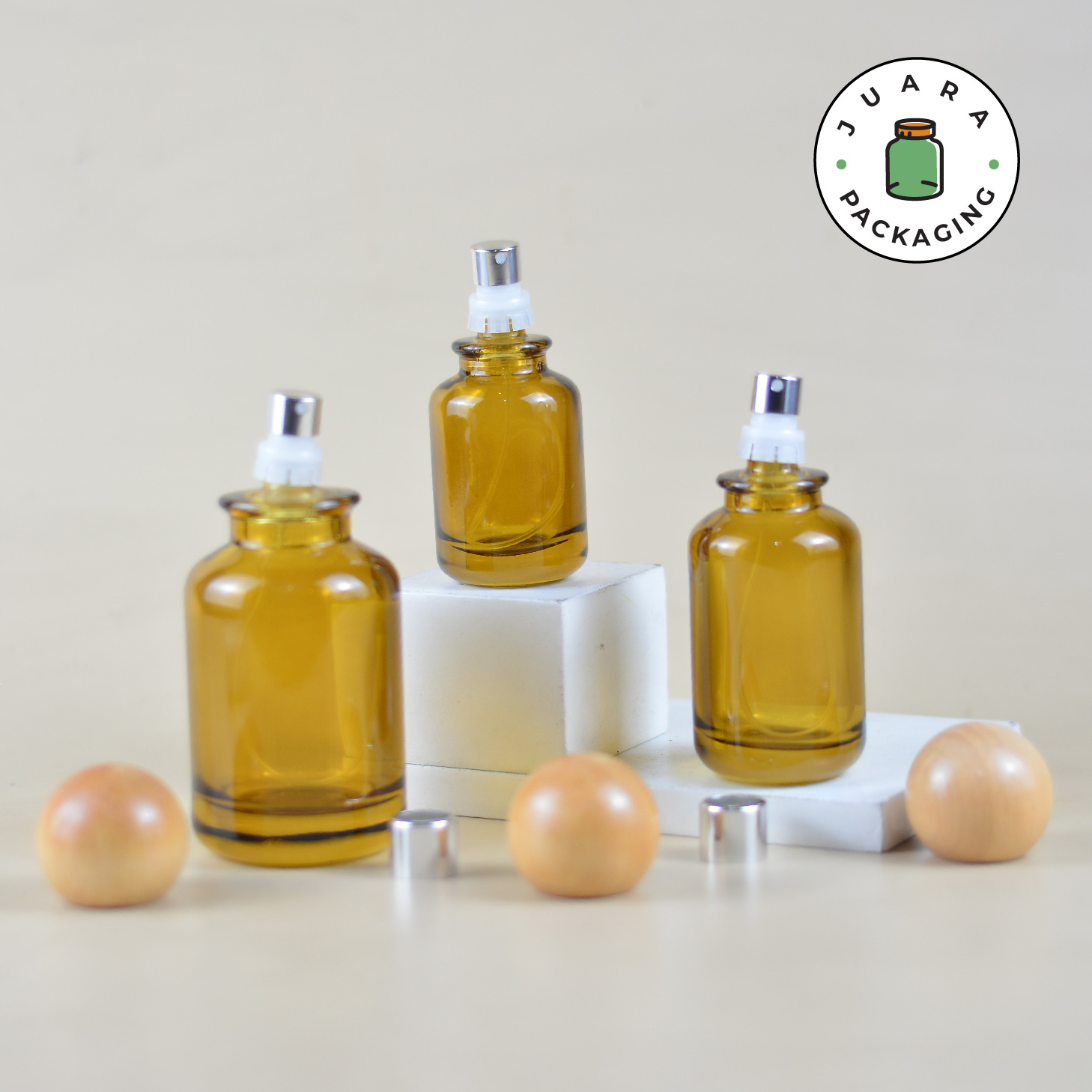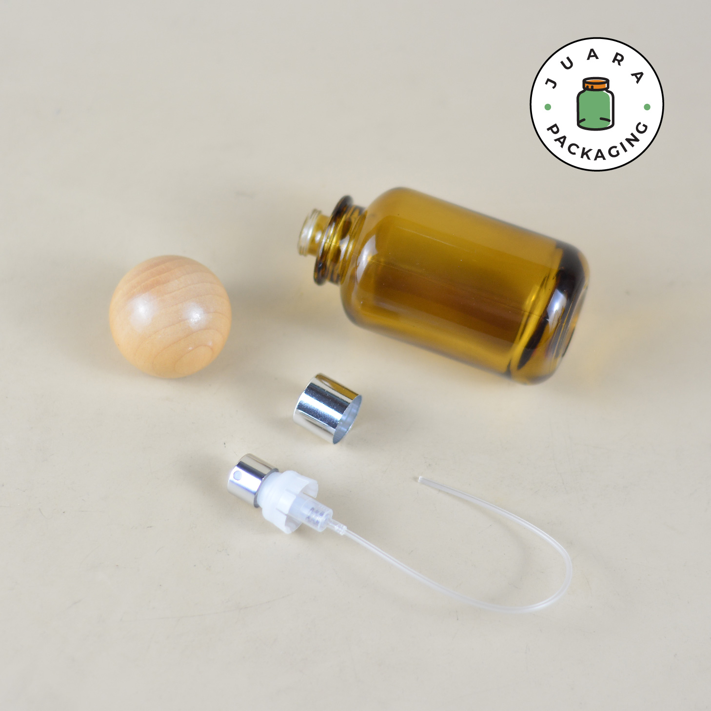 Botol Parfum Spray Kaca 30ml 50ml 100ml ini terbuat dari kaca tebal warna coklat amber yang elegan. Dilengkapi spray semi press dan tutup kayu bulat, kemasan produk ini cocok untuk perfume 30 ml, 50 ml, dan 100 ml. Tampil mewah, menjaga aroma tetap awet dan berkualitas.