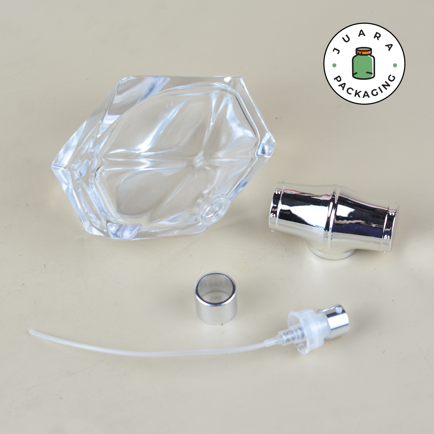 Botol Spray Kaca 80ml dengan desain hexagon tebal dan bening ini menghadirkan kesan unik dan mewah pada kemasan parfum Anda. Dilengkapi spray semi press untuk penyemprotan yang lembut dan tutup bambu beraksen silver yang elegan, botol ini cocok untuk berbagai kebutuhan. Ideal digunakan dengan alat pengisi, pilihan sempurna untuk maklon parfum atau usaha rumahan. Kemasan premium ini siap meningkatkan daya tarik produk parfum Anda