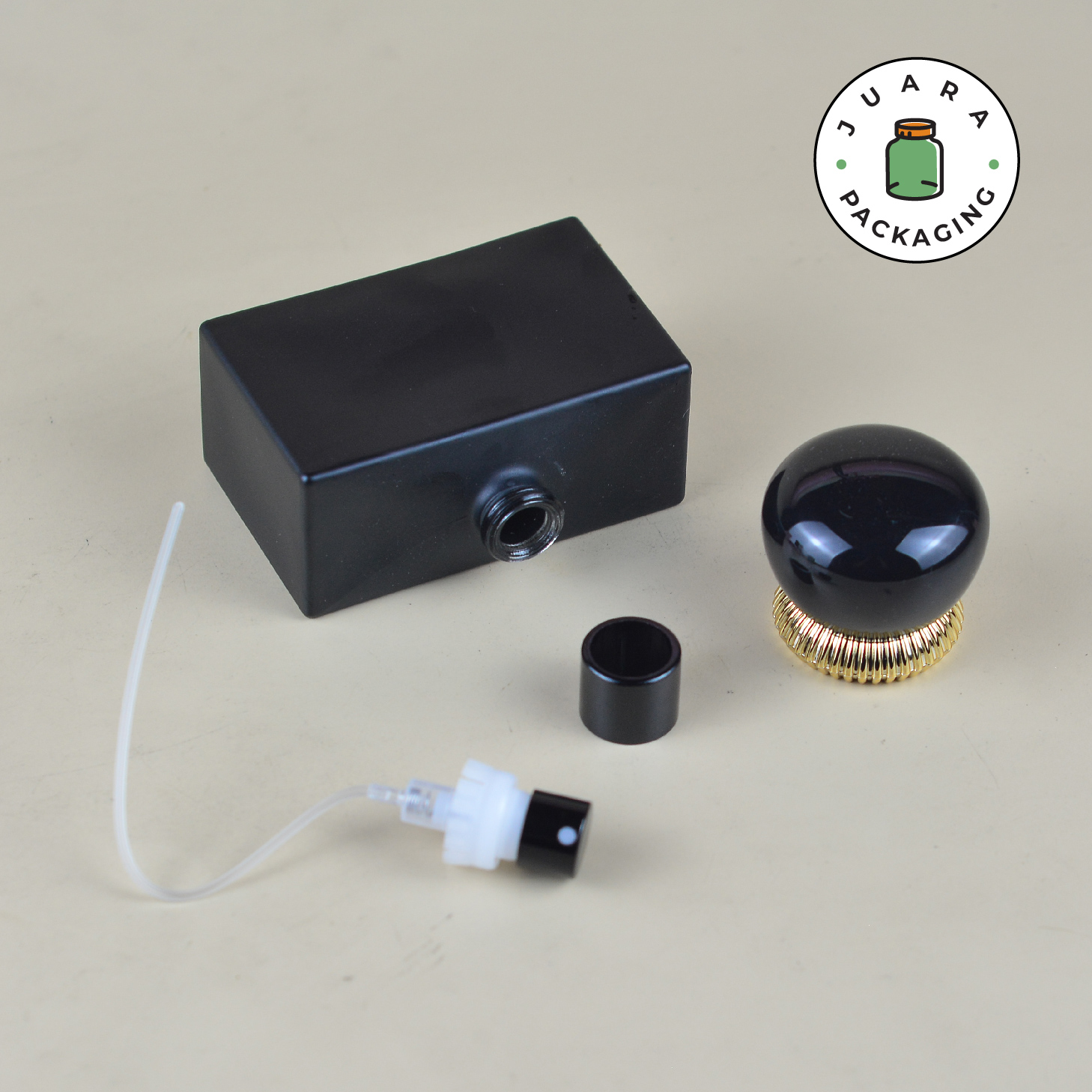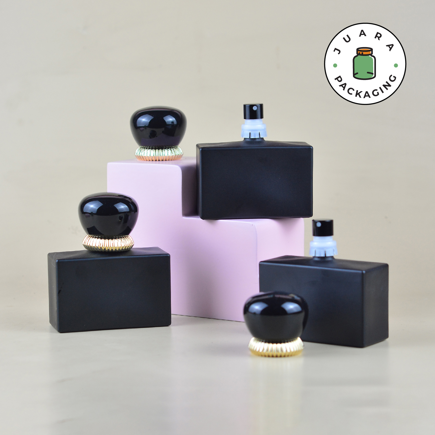 Botol Spray Kaca 50ml dengan desain bulat tebal berwarna hitam doff matte ini memberikan tampilan elegan dan premium untuk kemasan produk parfum Anda. Dilengkapi spray semi press yang praktis untuk penyemprotan halus dan tutup aksen gold hitam yang menambah kesan eksklusif. Cocok digunakan dengan alat pengisi, botol ini sempurna untuk kebutuhan maklon parfum atau usaha rumahan. Pilihan ideal untuk menciptakan kesan mewah yang menarik perhatian pelanggan.
