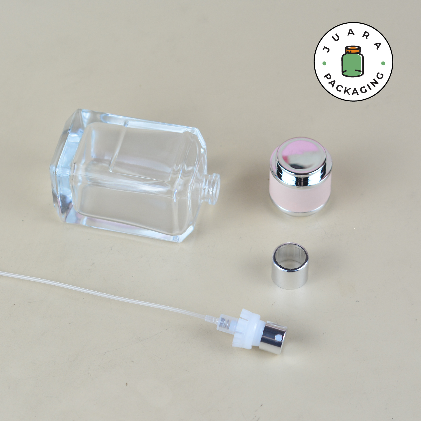 Botol Spray Kaca 50ml ini hadir dengan desain kotak tebal, bening, dan transparan, memberikan kesan elegan untuk kemasan produk Anda. Dilengkapi spray semi press yang praktis, botol ini cocok untuk menyemprotkan parfum dengan sempurna. Tutup pink menambah sentuhan alami dan eksklusif. Ideal digunakan dengan alat pengisi, cocok untuk maklon parfum atau usaha rumahan. Pilihan tepat untuk menghadirkan kemasan premium yang menarik pelanggan.
