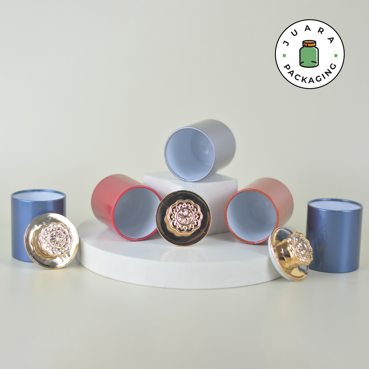Jar Emboss Motif Premium adalah kemasan produk elegan dengan desain mewah warna silver, biru, dan gold. Cocok digunakan sebagai wadah matcha powder ceremonial grade pure 100%, teh, kopi bubuk, rempah, dan herbal. Dilengkapi tutup ulir kedap udara sehingga isi tetap segar, serta praktis untuk isi ulang.