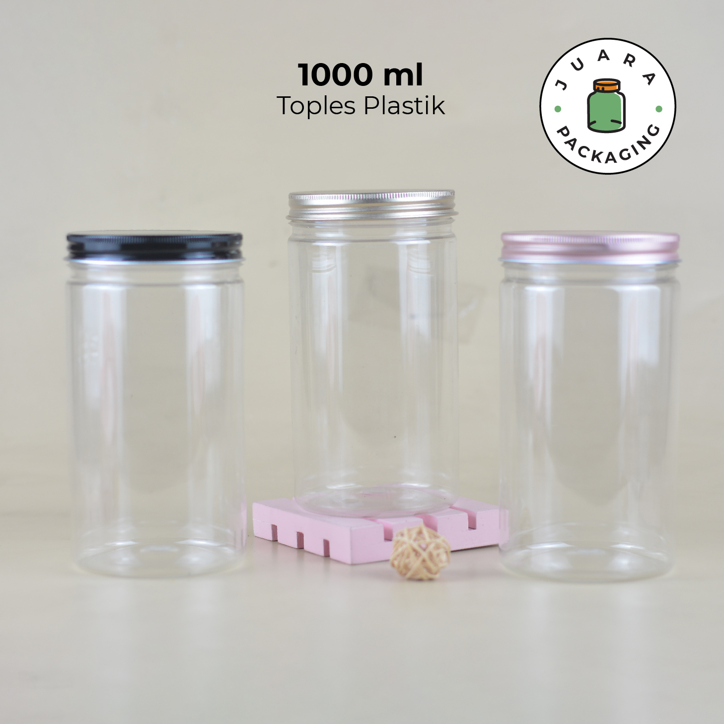 Toples Plastik Bening 1000ml – Jar Serbaguna dengan Tutup Warna Silver Gold Pink Hitam untuk Wadah Makanan Ringan Kue Kering Snack Refill Kosmetik Tempat Penyimpanan Toples Plastik Tebal Premium